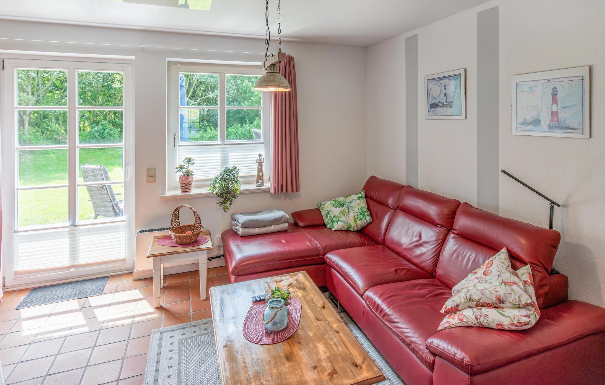 Besonders hervorzuheben ist die großzügige Südterrasse mit eigenem Strandkorb und Gartenmöbeln, perfekt für sonnige Frühstücke oder entspannte Nachmittage. Der Blick auf die grüne Oase des Naturschutzgebiets sorgt für eine friedliche Stimmung.