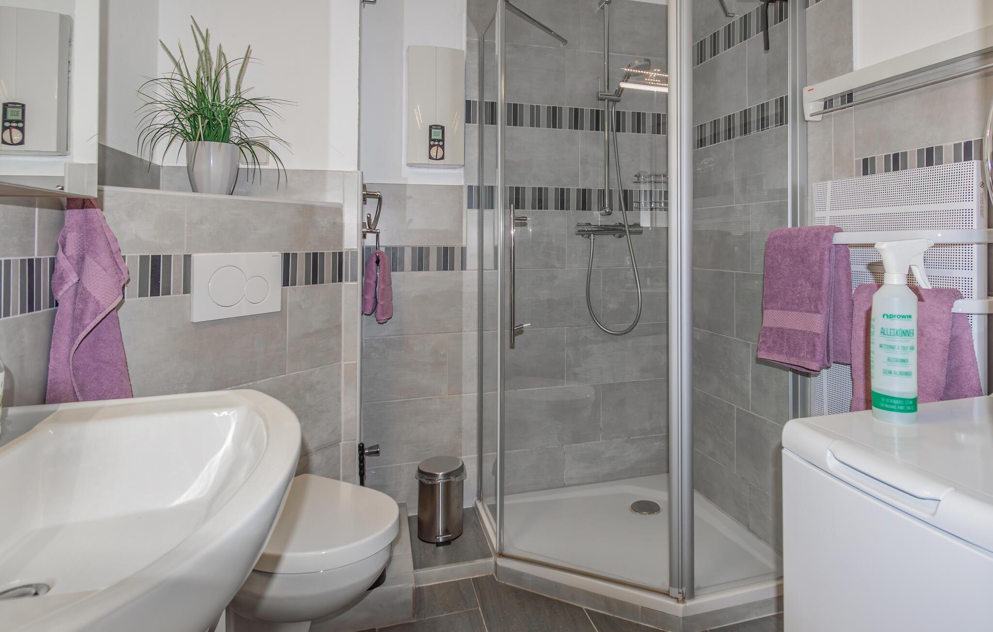 Badezimmer 4m2 (nr. 1) - WC. Warmes und kaltes Wasser. Dusche