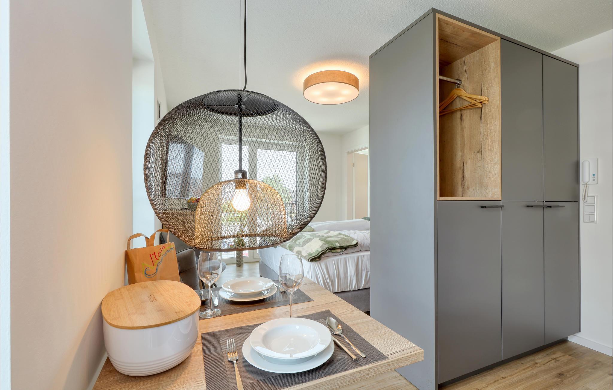 Herzlich willkommen auf Nordstrand, einer traumhaften Halbinsel an der schleswig-holsteinischen Nordseeküste im UNESCO Weltnaturerbe Wattenmeer. Das moderne Haus mit mehreren Ferienwohnungen ist ein wahres Juwel inmitten der Natur, die Lage direkt hinter dem Deich lässt das Herz eines jeden Nordseefans höherschlagen. Der moderne maritime Ausdruck der exklusiven Ferienwohnung versetzt Sie sofort in Urlaubsstimmung. Großzügige Fensterfronten lassen viel Tageslicht herein und bieten einen atemberaubenden Blick auf die umliegende Landschaft. Mit seinem Fokus auf Nachhaltigkeit ist das Ferienhaus der ideale Ort für Urlauber, die Wert auf Erholung in Einklang mit der Natur legen. Beginnen Sie Ihren Tag mit einem leckeren Frühstück im gemütlichen Wohnzimmer mit offener Küche.