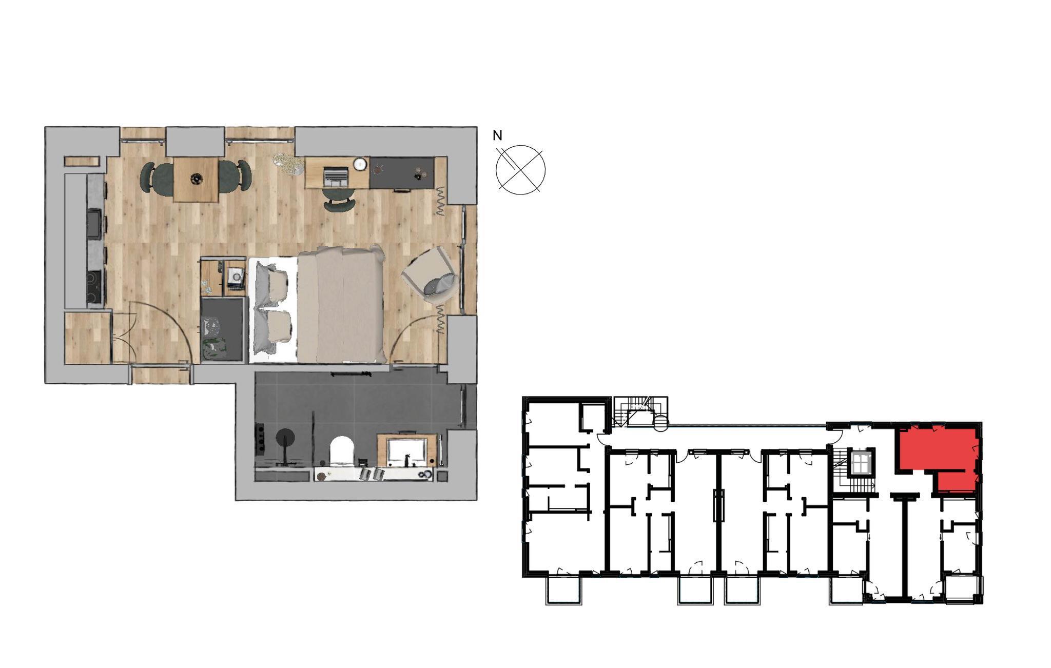 Wohnraum/Küche 22m2 - 2 Schlafmöglichkeiten. (Doppelbett(en)).