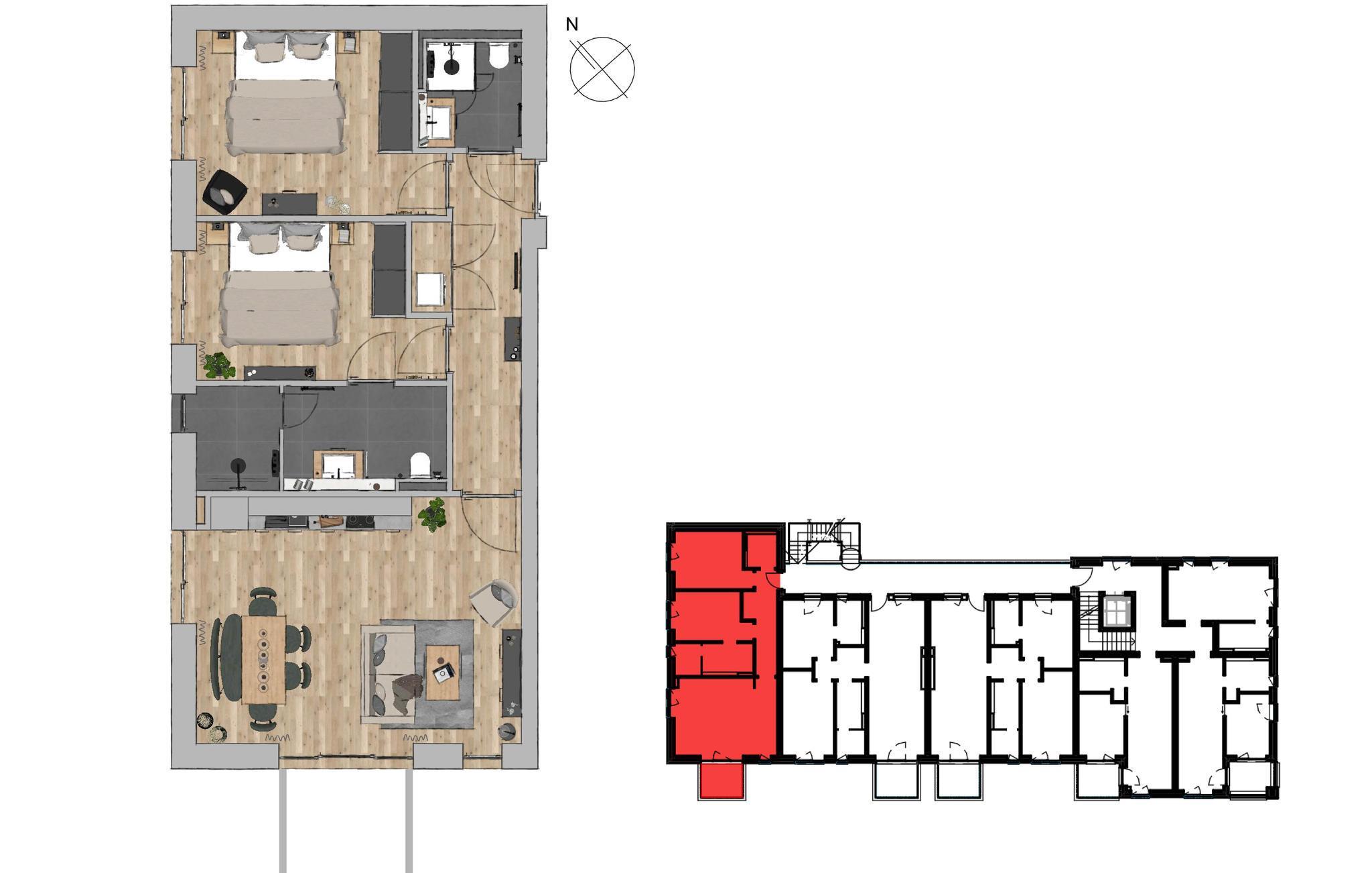 Schlafzimmer (nr. 2) - 2 Schlafmöglichkeiten. (Doppelbett(en)).