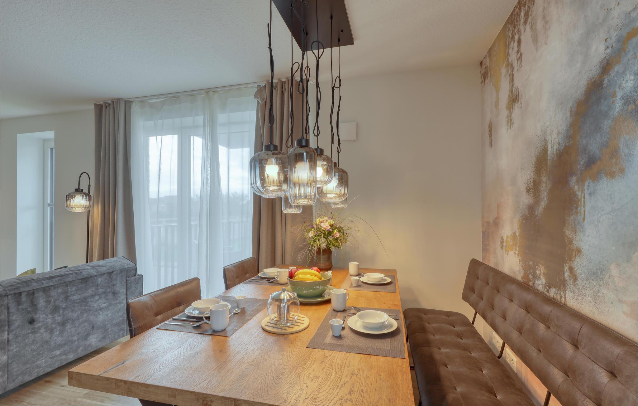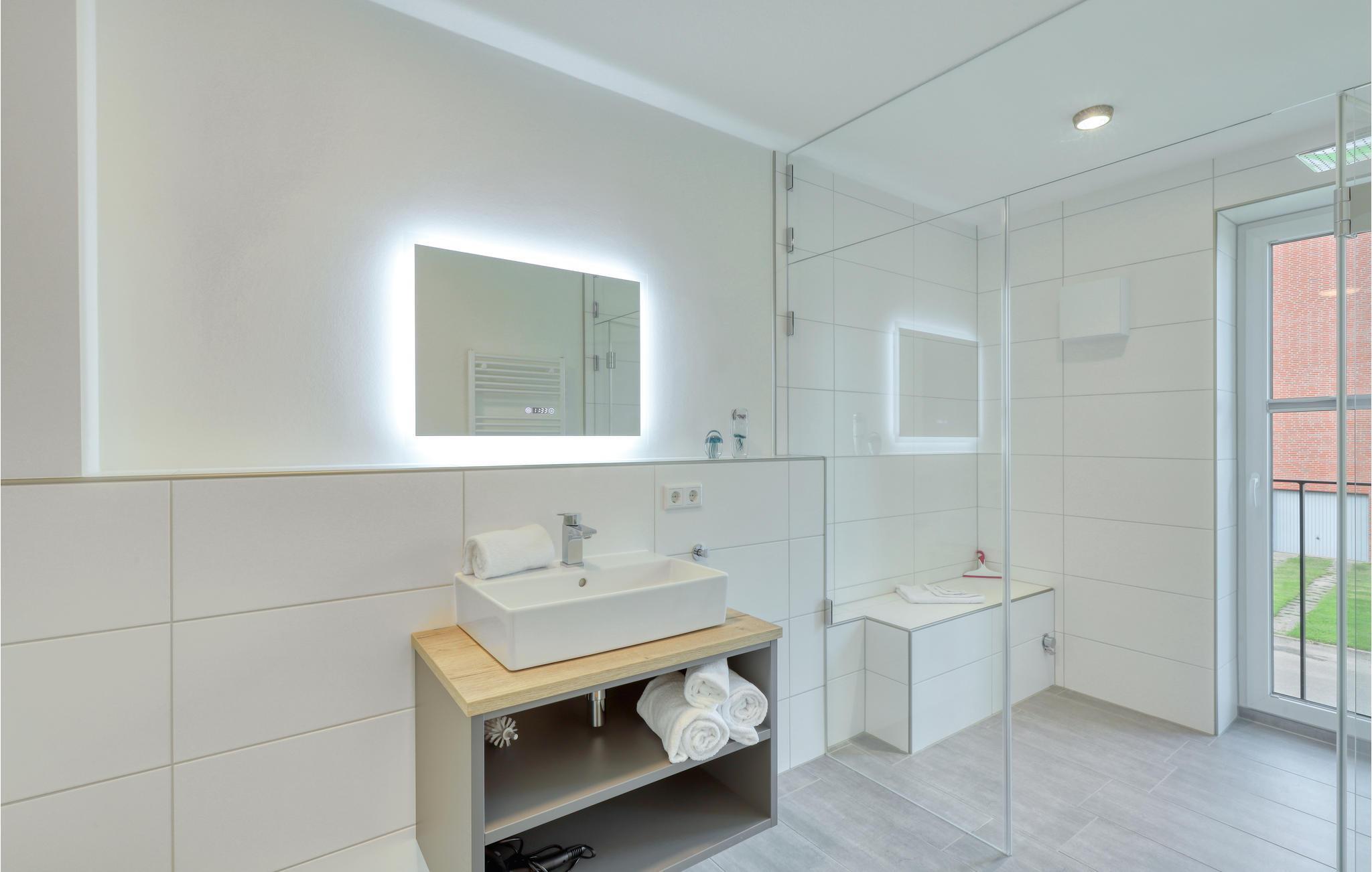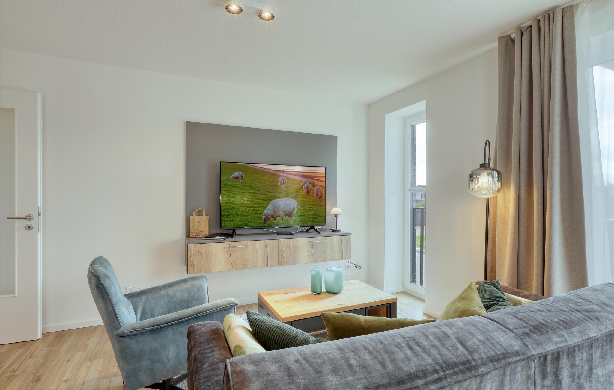 Herzlich willkommen auf Nordstrand, einer traumhaften Halbinsel an der schleswig-holsteinischen Nordseeküste im UNESCO Weltnaturerbe Wattenmeer. Das moderne Haus mit mehreren Ferienwohnungen ist ein wahres Juwel inmitten der Natur, die Lage direkt hinter dem Deich lässt das Herz eines jeden Nordseefans höherschlagen. Der moderne maritime Ausdruck der exklusiven Ferienwohnung versetzt Sie sofort in Urlaubsstimmung. Großzügige Fensterfronten lassen viel Tageslicht herein und bieten einen atemberaubenden Blick auf die umliegende Landschaft. Mit seinem Fokus auf Nachhaltigkeit ist das Ferienhaus der ideale Ort für Urlauber, die Wert auf Erholung in Einklang mit der Natur legen. Beginnen Sie Ihren Tag mit einem leckeren Frühstück im gemütlichen Wohnzimmer mit offener Küche oder genießen Sie den ersten Kaffee auf dem Balkon mit wunderbarer Aussicht.