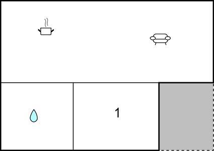 Wohnraum/Küche - 2 Schlafmöglichkeiten. (Doppelbett(en)).