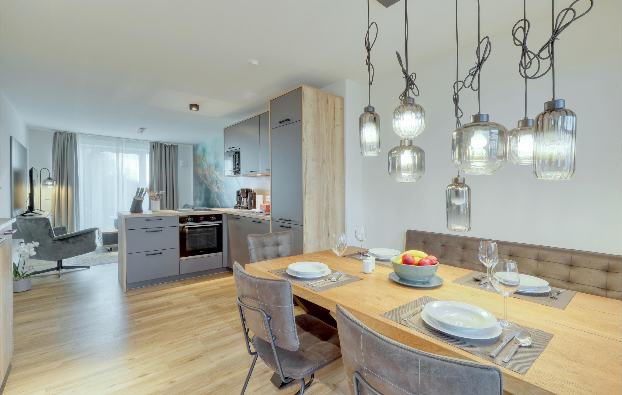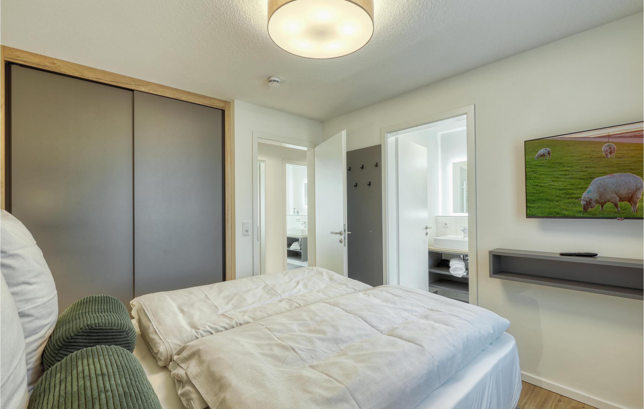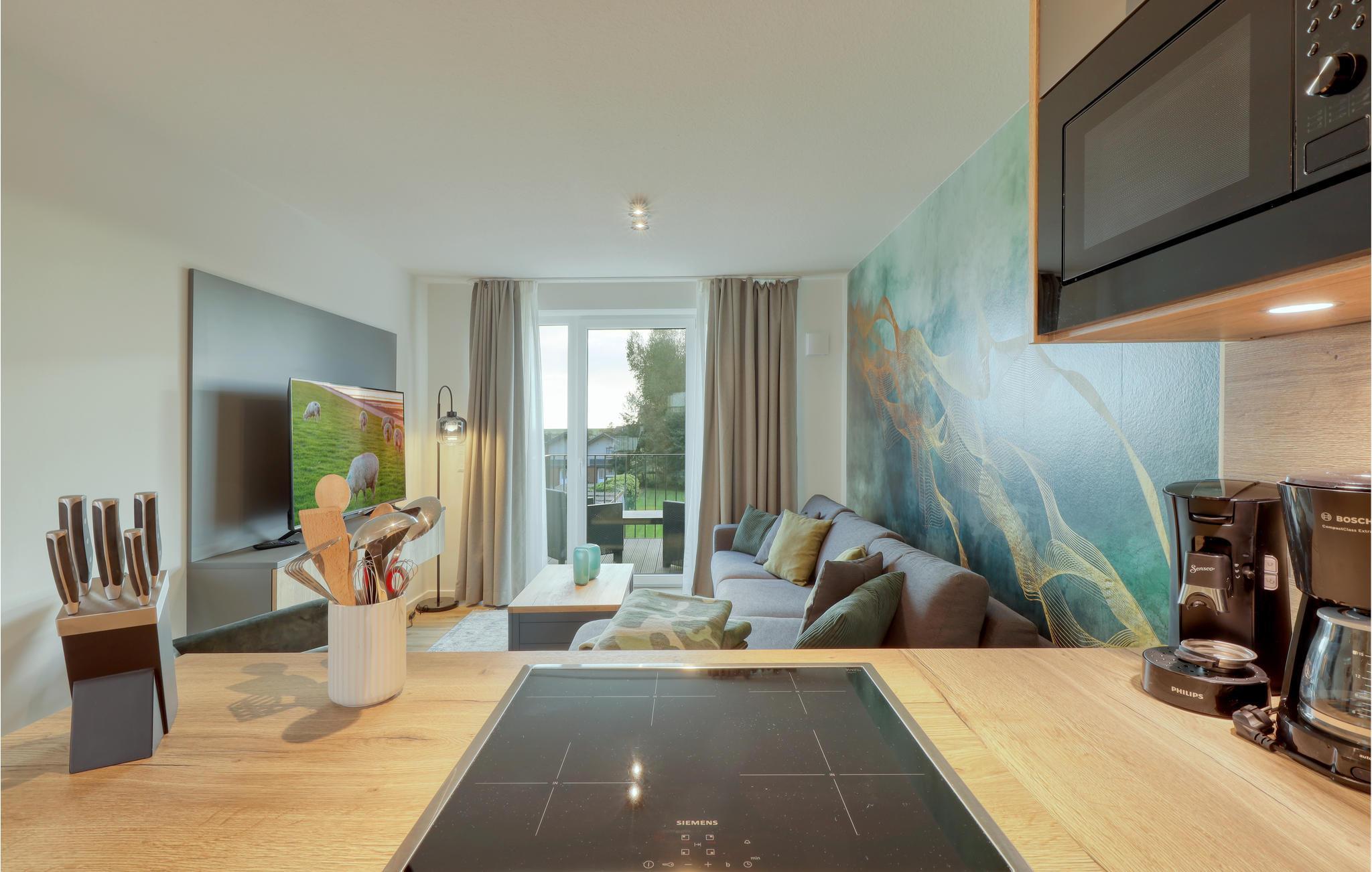 Herzlich willkommen auf Nordstrand, einer traumhaften Halbinsel an der schleswig-holsteinischen Nordseeküste im UNESCO Weltnaturerbe Wattenmeer. Das moderne Haus mit mehreren Ferienwohnungen ist ein wahres Juwel inmitten der Natur, die Lage direkt hinter dem Deich lässt das Herz eines jeden Nordseefans höherschlagen. Der moderne maritime Ausdruck der exklusiven Ferienwohnung versetzt Sie sofort in Urlaubsstimmung. Bodentiefe Fenster lassen viel Tageslicht herein und bieten einen schönen Blick ins Freie. Mit seinem Fokus auf Nachhaltigkeit ist das Ferienhaus der ideale Ort für Urlauber, die Wert auf Erholung in Einklang mit der Natur legen. Beginnen Sie Ihren Tag mit einem leckeren Frühstück im gemütlichen Wohnzimmer mit offener Küche oder genießen Sie den ersten Kaffee auf dem Balkon.