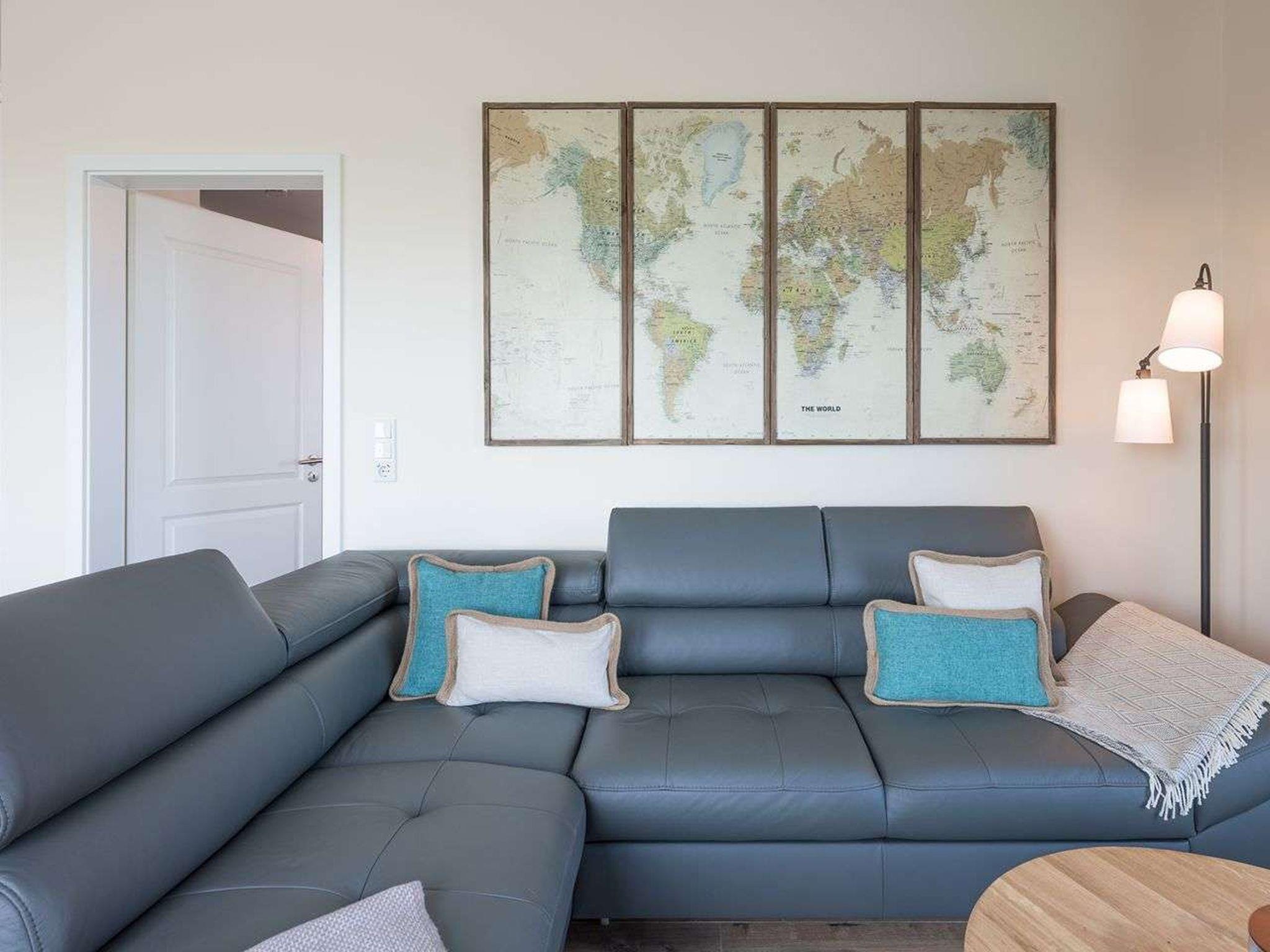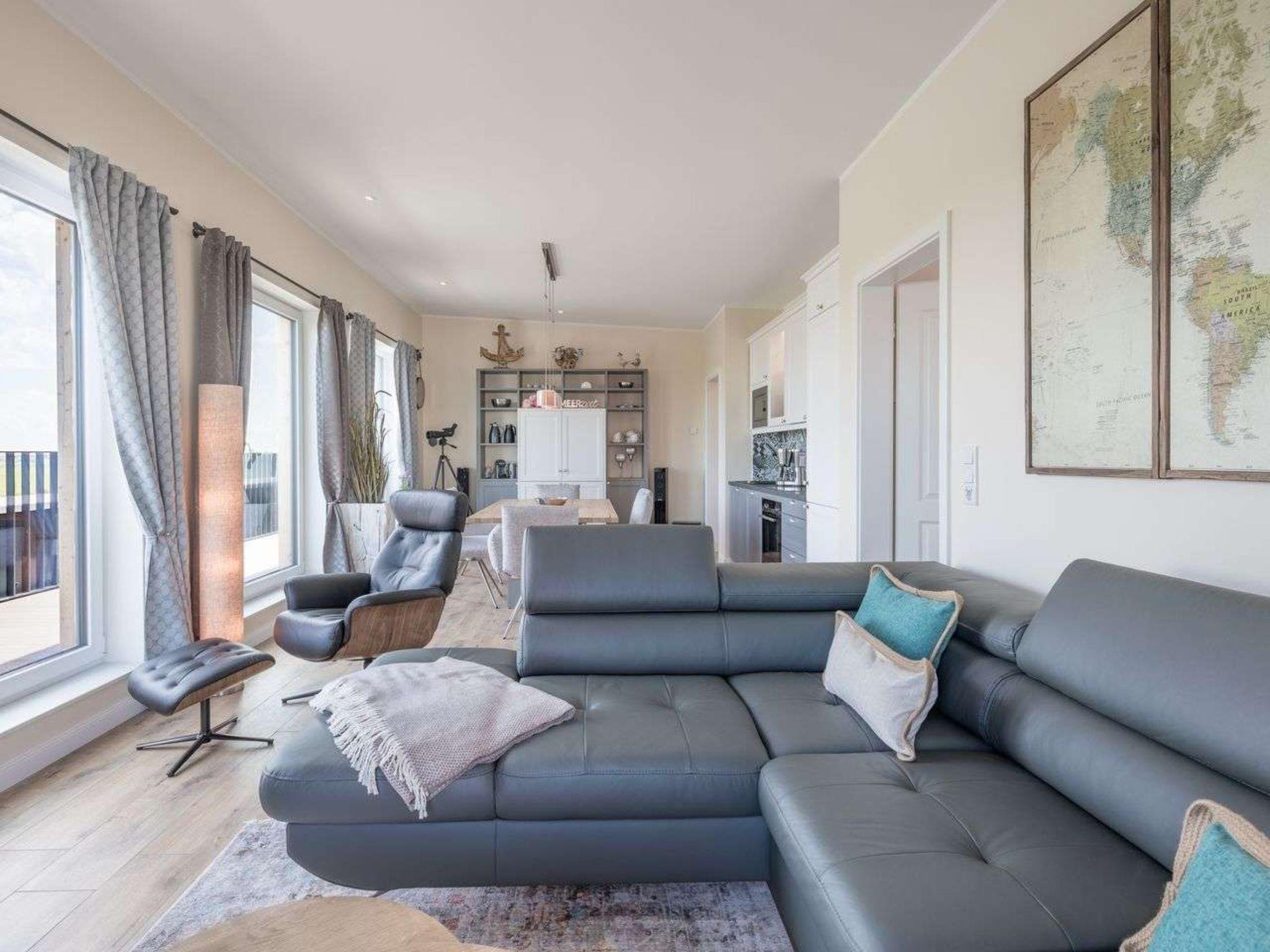 "SeeZeichen Nordstrand", 3-room penthouse 112 m2. Very luxurious and stylish furnishings: large living/dining room with satellite TV (flat screen), hi-fi system and DVD. Exit to the terrace. 2 large rooms, each room with 1 double bed (1 x 180 cm, length 200 cm), shower/WC and Hammam-Shower. Exit to the terrace. Open kitchen (4 hot plates, oven, dishwasher, toaster, kettle, microwave, freezer, electric coffee machine) with dining table. Balcony furniture. Very beautiful distant view of the sea and the lake. Facilities: dryer, hair dryer. Internet (WiFi). Parking. Please note: non-smokers only. Maximum 1 pet/ dog allowed.