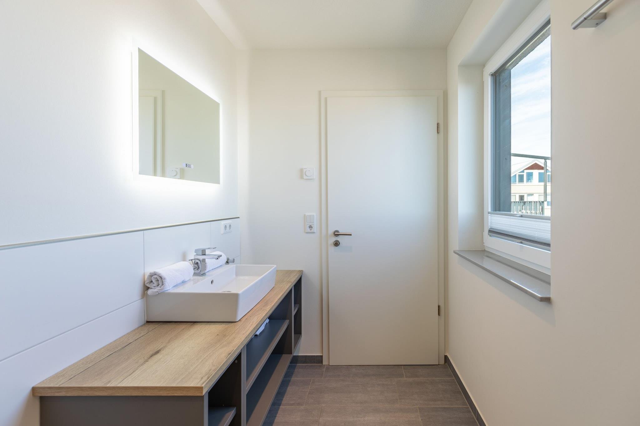 Welcome to your personal holiday paradise! This stylishly furnished holiday flat on the 3rd floor of a modern apartment building offers everything you need for a relaxing stay by the sea. Enjoy the fantastic panoramic view of the sea directly from the balcony – perfect for relaxing mornings or romantic sunsets. The flat has two comfortable bedrooms, a spacious living and dining room, and a fully equipped kitchen with high-quality appliances. A special highlight is the private steam sauna, which allows you to enjoy wellness and relaxation right in your accommodation. The modern furnishings, fine materials and loving details create an atmosphere of well-being. Whether as a retreat for couples, stylish accommodation for families or an exclusive base for your beach holiday – this holiday apartment leaves nothing to be desired. Highlights included: all consumption-based energy costs, WLAN, final cleaning, laundry package (mandatory bookable), parking space, tourist tax