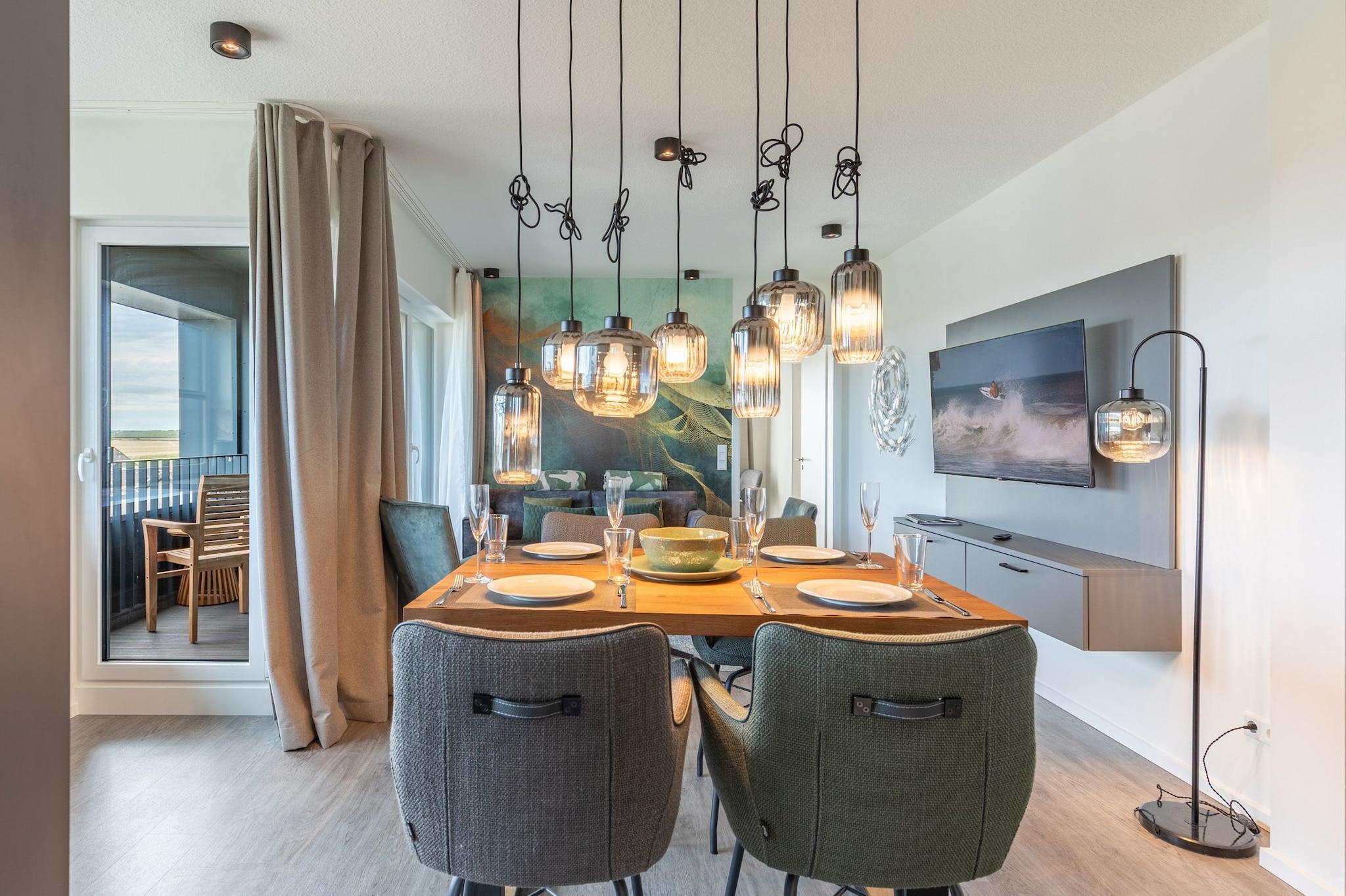 Welcome to your personal holiday paradise! This stylishly furnished holiday flat on the 3rd floor of a modern apartment building offers everything you need for a relaxing stay by the sea. Enjoy the fantastic panoramic view of the sea directly from the balcony – perfect for relaxing mornings or romantic sunsets. The flat has two comfortable bedrooms, a spacious living and dining room, and a fully equipped kitchen with high-quality appliances. A special highlight is the private steam sauna, which allows you to enjoy wellness and relaxation right in your accommodation. The modern furnishings, fine materials and loving details create an atmosphere of well-being. Whether as a retreat for couples, stylish accommodation for families or an exclusive base for your beach holiday – this holiday apartment leaves nothing to be desired. Highlights included: all consumption-based energy costs, WLAN, final cleaning, laundry package (mandatory bookable), parking space, tourist tax