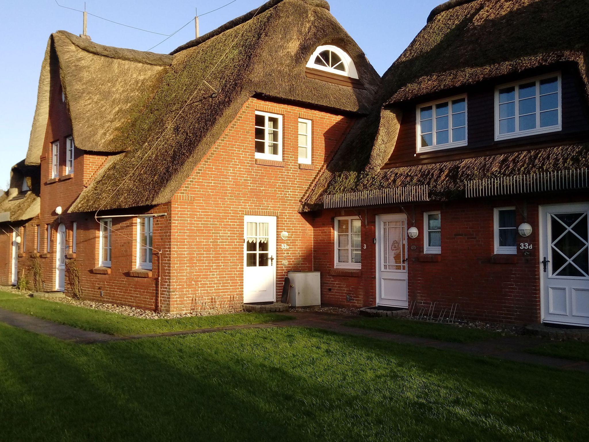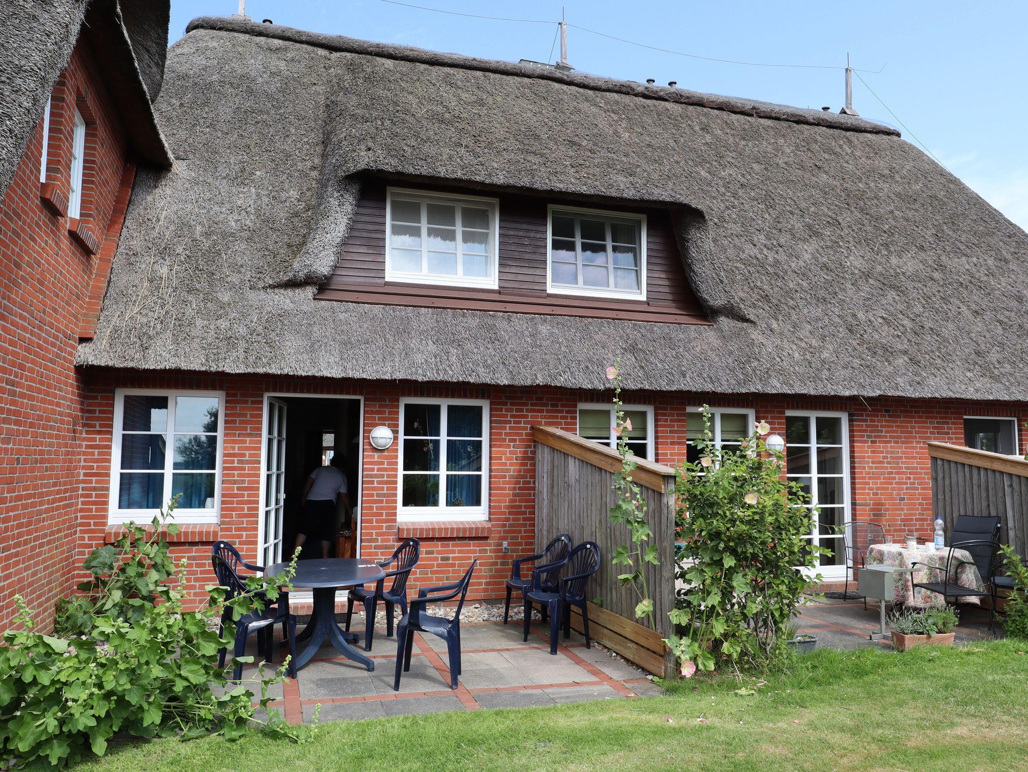 Der Friesenhof ist ein im typisch friesischen Stil erbautes Reetdachgebäude mit eigenständigen Hausteilen, gelegen im Kurzentrum Nordstrand. Der im Sommer 2022 frisch renovierte Hausteil ist ca. 90qm groß und ist für bis zu 6 Personen geeignet. Im Erdgeschoss befinden sich das geräumige Wohnzimmer mit Wohn- und Essbereich, die seperate komplett ausgestattet Einbauküche mit Spülmaschine, Mikrowelle usw. Vom Flur aus ist ein zusätzliches Gäste-WC zu erreichen, und vom Wohnzimmer aus geht es auf die möblierte zum Süden liegende Außenterrasse mit eigenem Strandkorb. Zwei Schlafzimmer, eines mit einem Doppelbett und ein weiteres mit zwei Einzelbetten, sowie Dusche/WC befinden sich im 1. Stock, ein drittes Schlafzimmer mit ebenfalls zwei Einzelbetten im oberen als Galerie ausgebauten Giebelzimmer. Das Haus verfügt über einen Glasfaseranschluss.