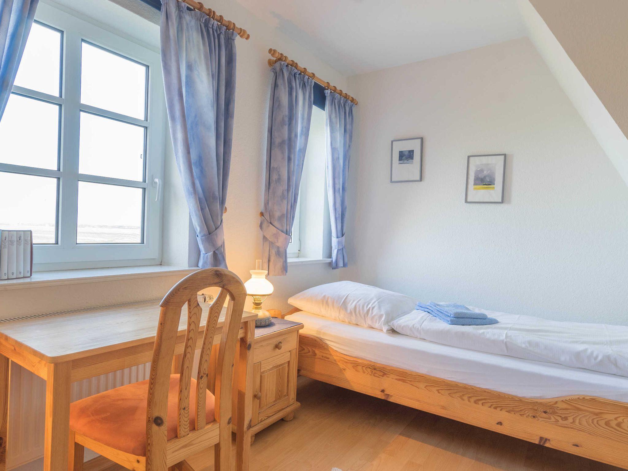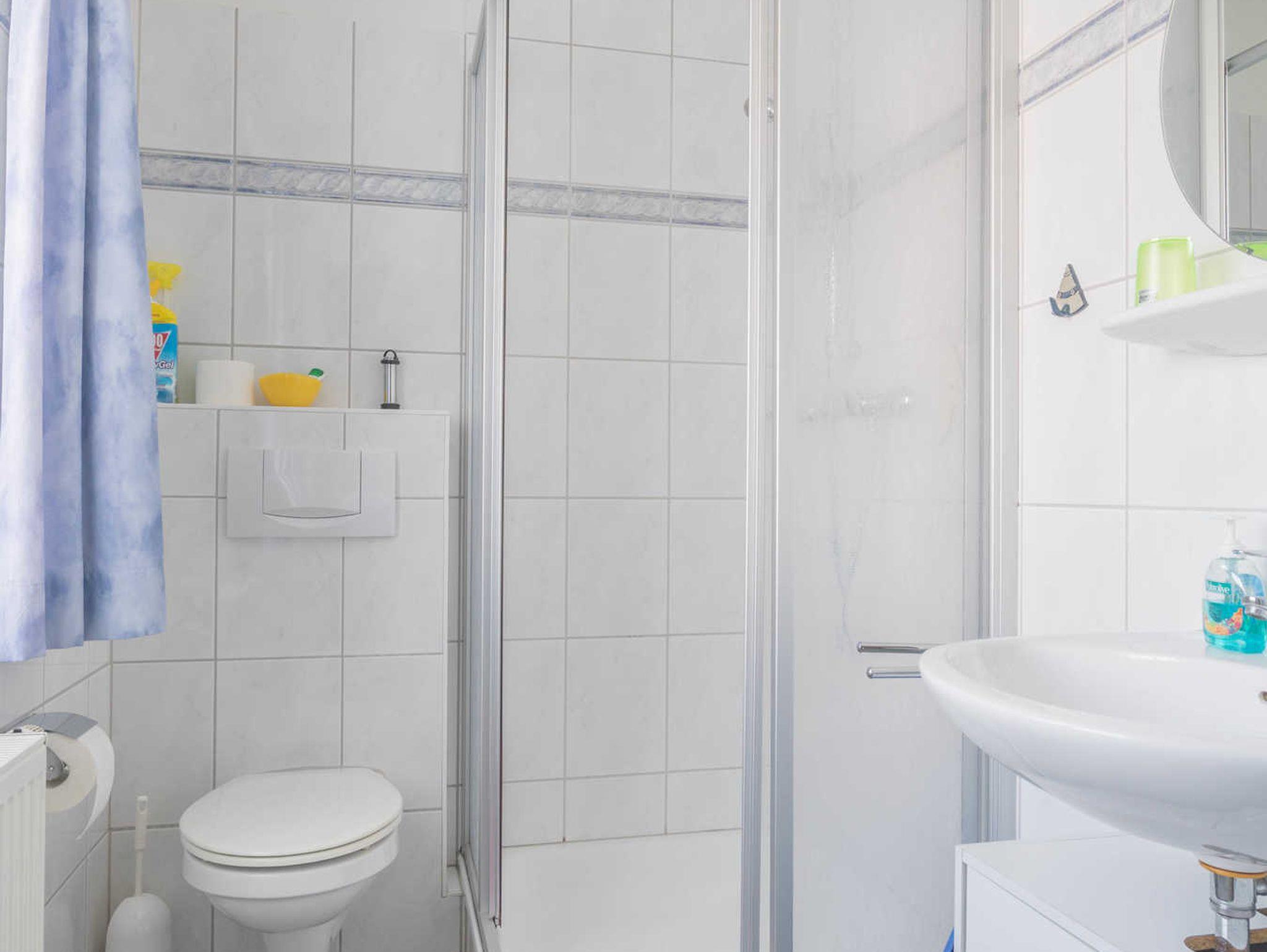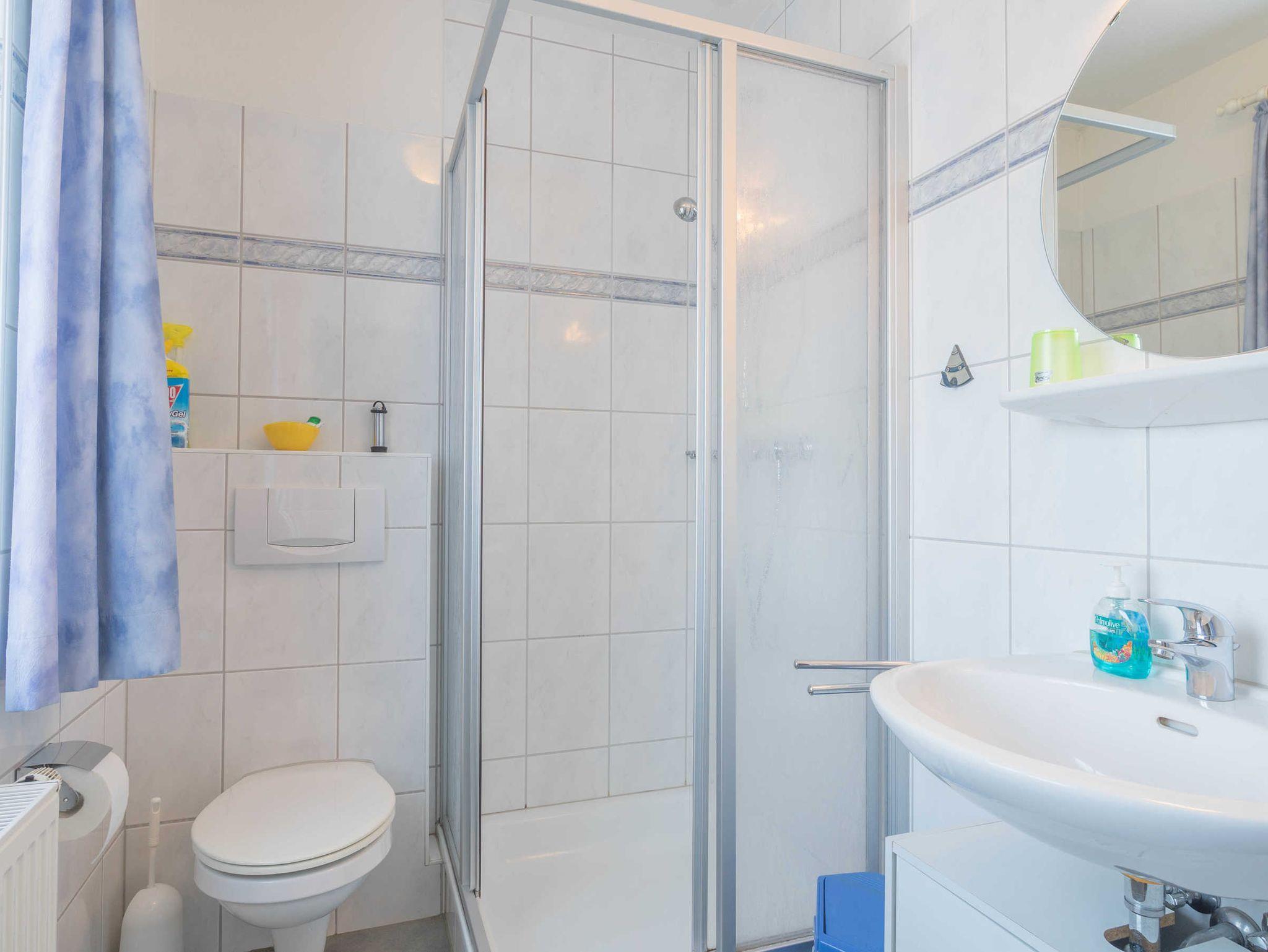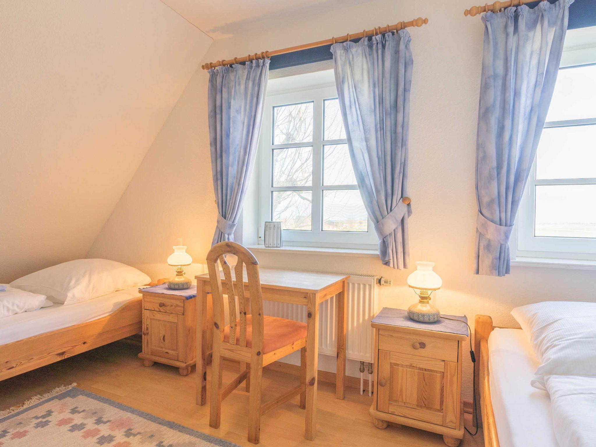 Das OG bietet zwei Schlafzimmer, eine Dusche mit WC, eine Waschmaschine und einen Trockner. Ein weiterer Schlafraum befindet sich im Dachgeschoß und ist über eine Raumspartreppe zu erreichen. Ganz in der Nähe finden Sie einen Bäcker, verschiedene Speiselokale und Fischrestaurants. Das Kurmittelhaus für Anwendungen, Packungen, Bäder und Massagen ist ca. 1300 m entfernt. Ein Hallenbad mit Sauna befindet sich neben dem Kurmittelhaus im Norderhafen.