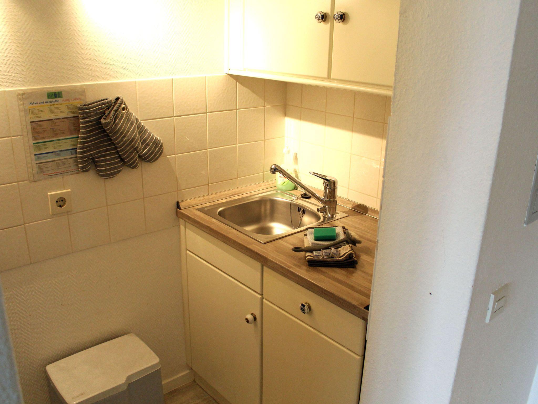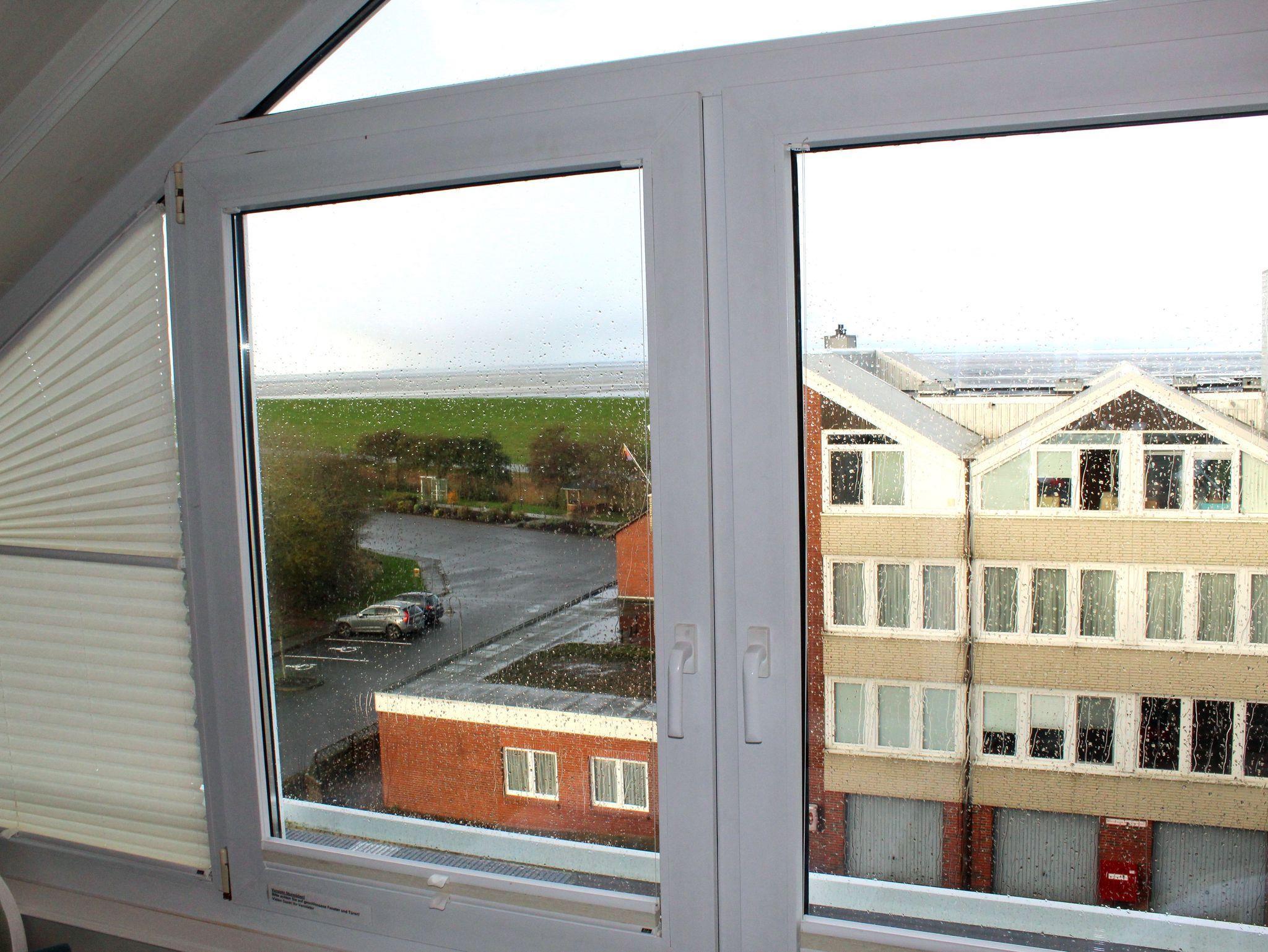 Die Wohnung liegt im 4. Stock und ist mit einem Aufzug zu erreichen. Vor dem Haus gibt es freie Wahl an kostenlosen PKW-Stellplätzen, sowie eine Garage für Ihre Fahrräder und Zubehör, die Sie sich mit dem Schwesterappartement Meerblick 60 teilen.