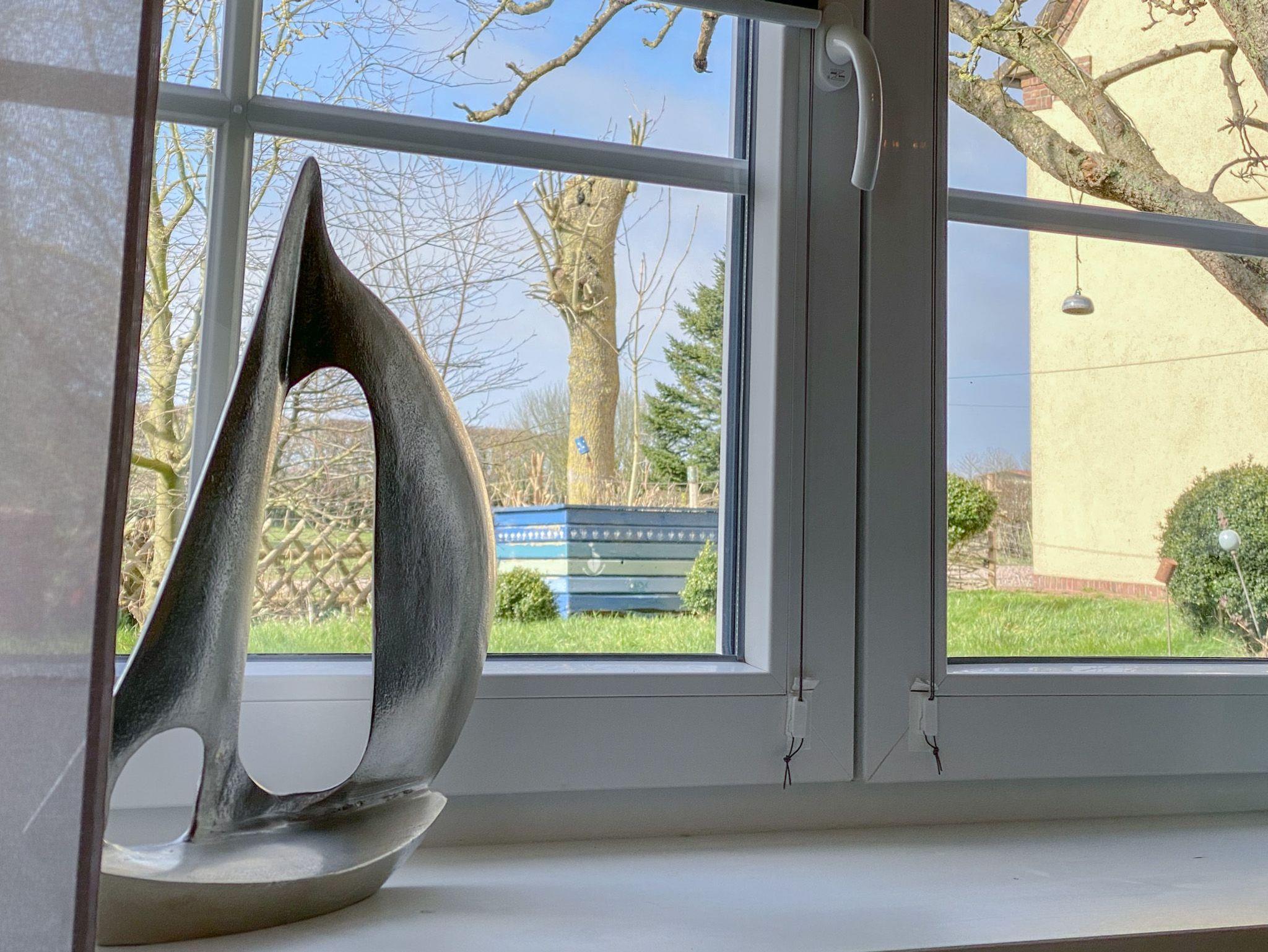 Durch die separate, wohnungseigene Auffahrt, sowie dem vom Haupthauses abgewandten, überdachten Eingang könnt ihr das Rad regensicher abstellen und findet Ruhe und Privatsphäre. Hier findet ihr auch eine sonnige Sitzgelegenheit, die zu einem ausgedehnten Brunch, abendlichen Grillen, oder einfach zum Verweilen mit Blick auf unsere Koppeln und den Außendeich Nordstrands einlädt. Hier ist Entschleunigung garantiert.