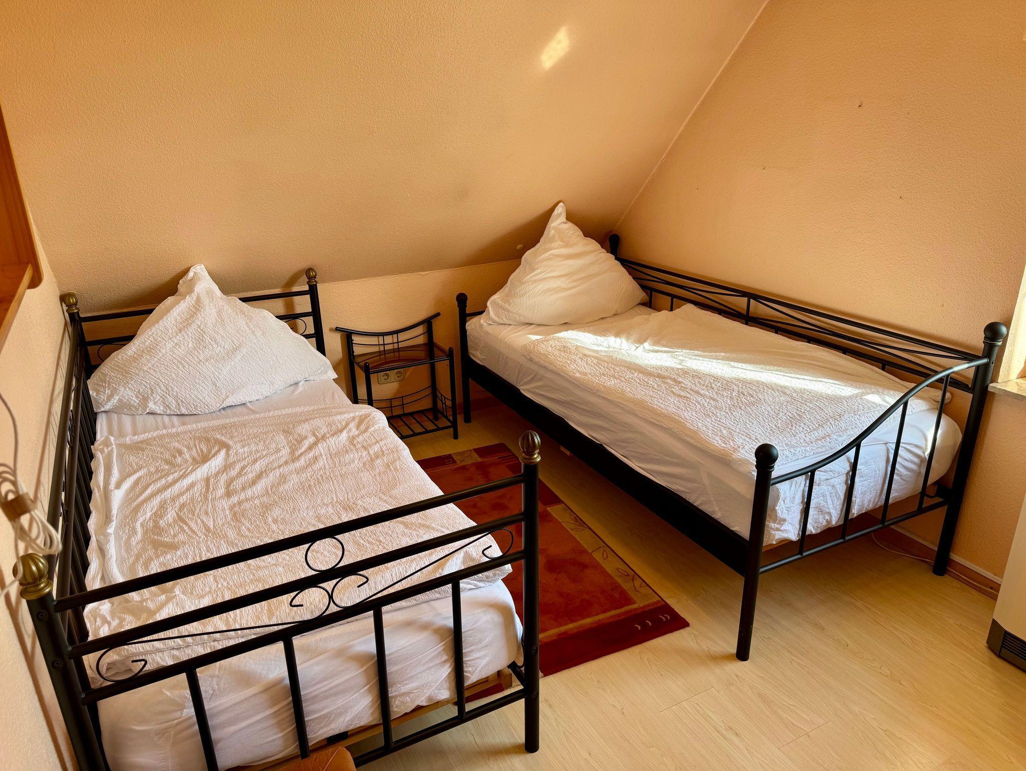 Im ersten Stock befindet sich eine weitere Wohnung, die zur Gesamtmiete des Hauses gehört. Dort gibt es zwei Schlafzimmer, eines mit Doppelbett (180x200cm) und eines mit zwei Einzelbetten (90x200cm). Ein gemütliches Wohnzimmer, eine Küche und ein Duschbad runden das Obergeschoss ab.