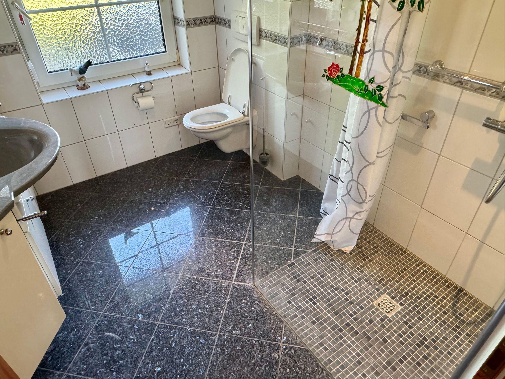 Die vollausgestattete Küche schließt direkt an das schöne sonnendurchflutete Eckerzimmer an, in dem Sie bei tollem Blick ihr Essen genießen können. Weiterhin sind im Erdgeschoß ein Duschbad mit ebenerdiger Dusche und ein Wirtschaftsraum mit Waschmaschine.