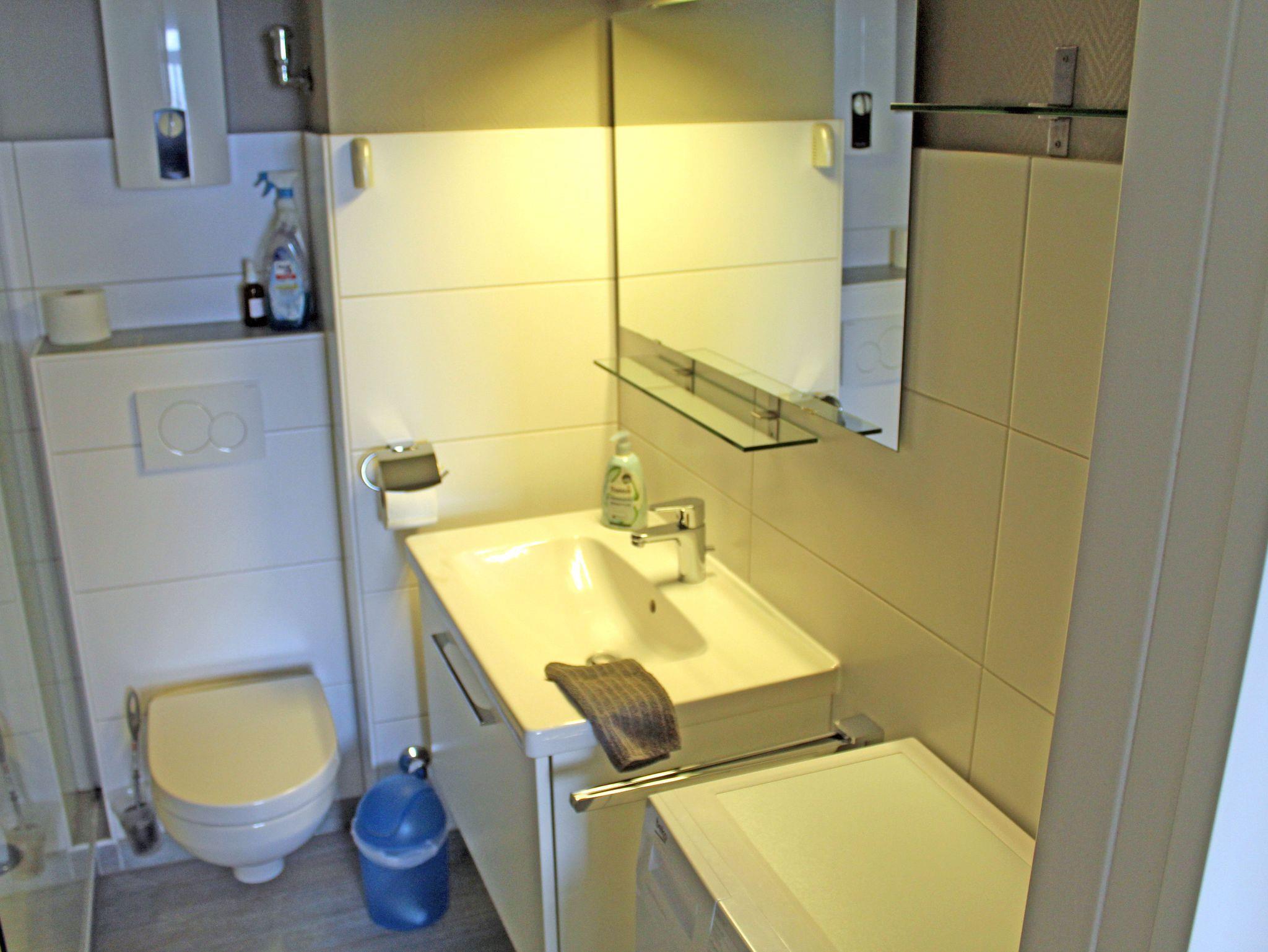 Die Wohnung liegt im 4. Stock und ist mit einem Aufzug zu erreichen. Vor dem Haus gibt es freie Wahl an kostenlosen PKW-Stellplätzen, sowie eine Garage für Ihre Fahrräder und Zubehör, die Sie sich mit dem Schwesterappartement Meerblick 57 teilen.
