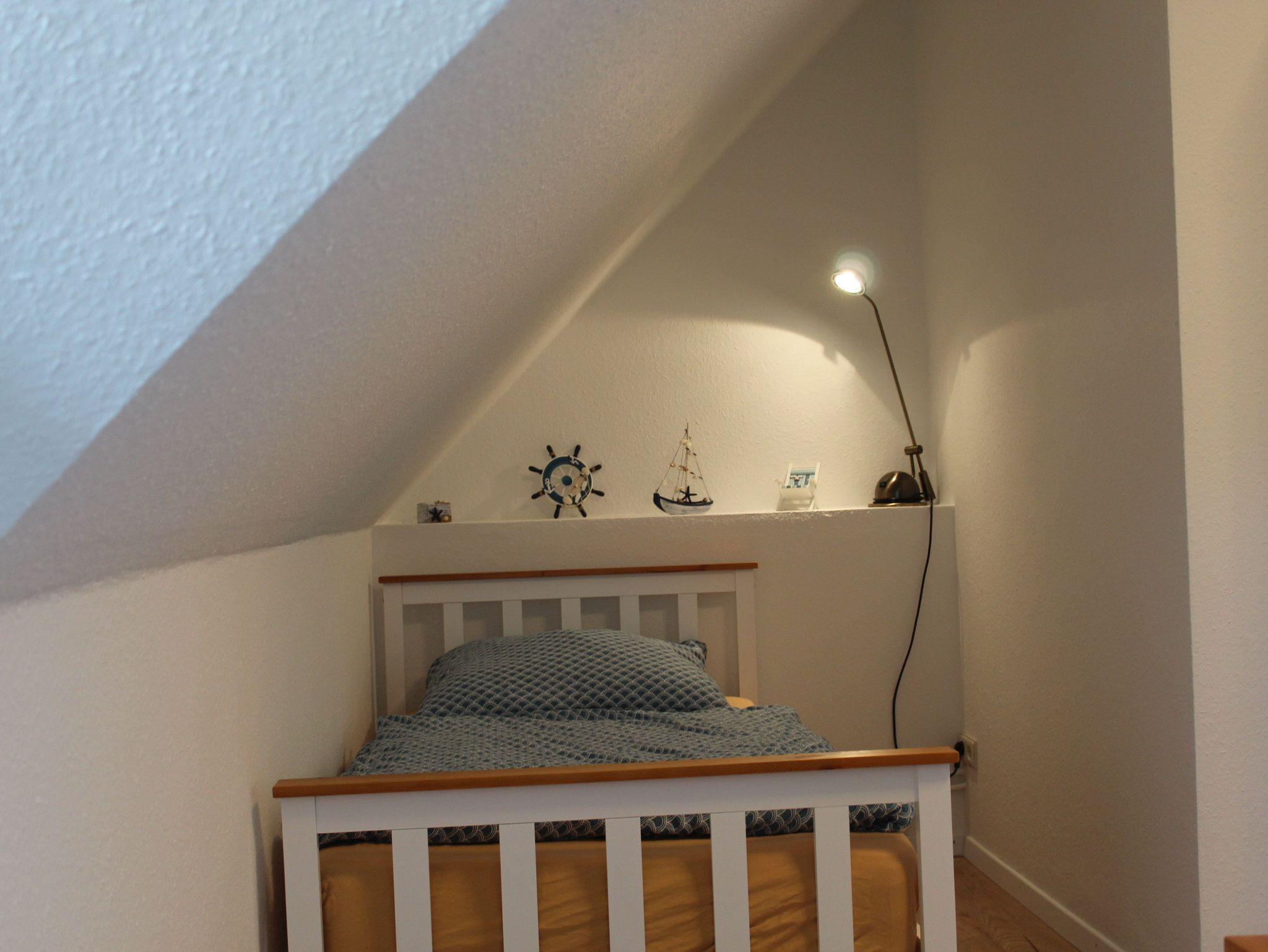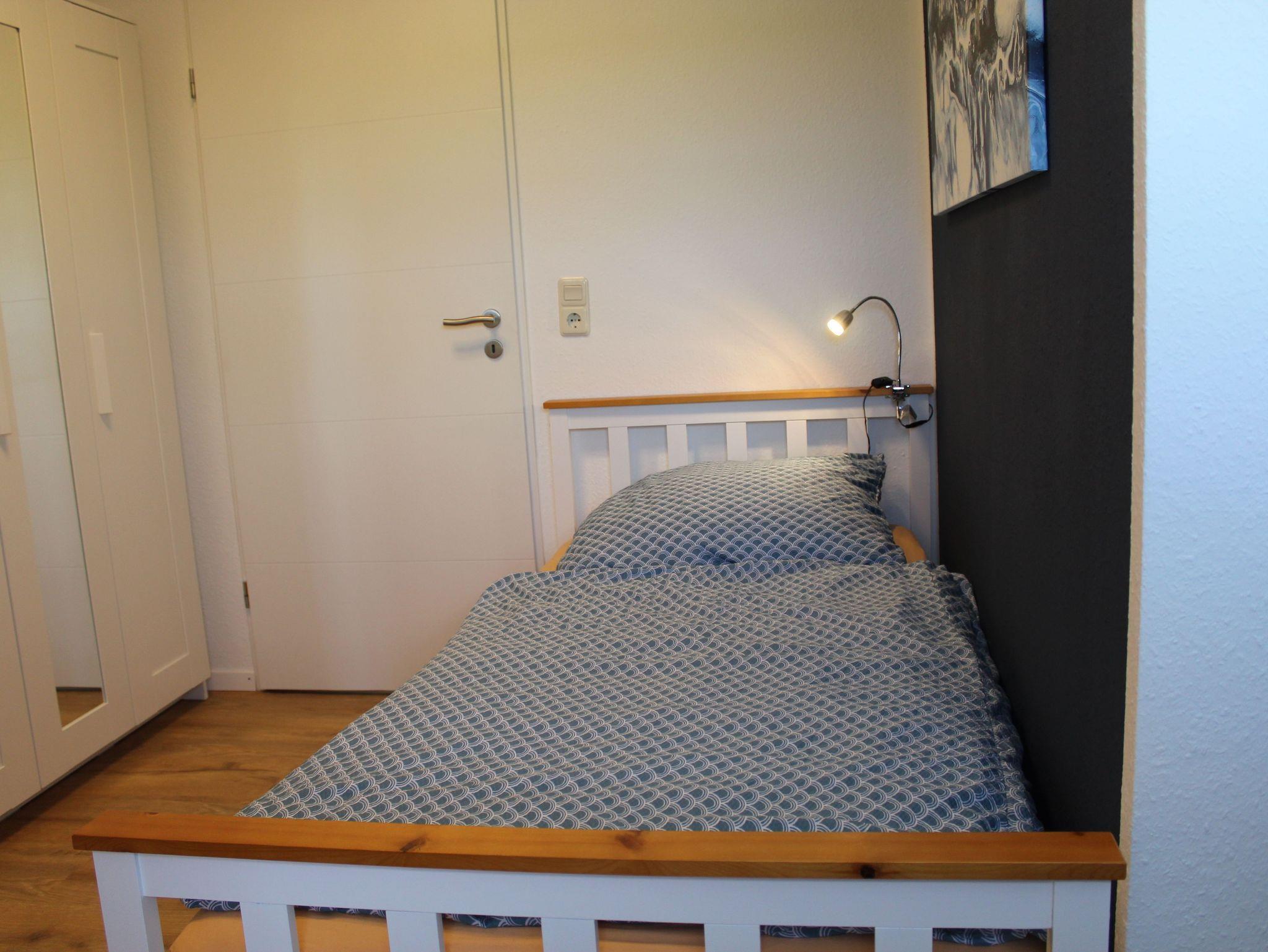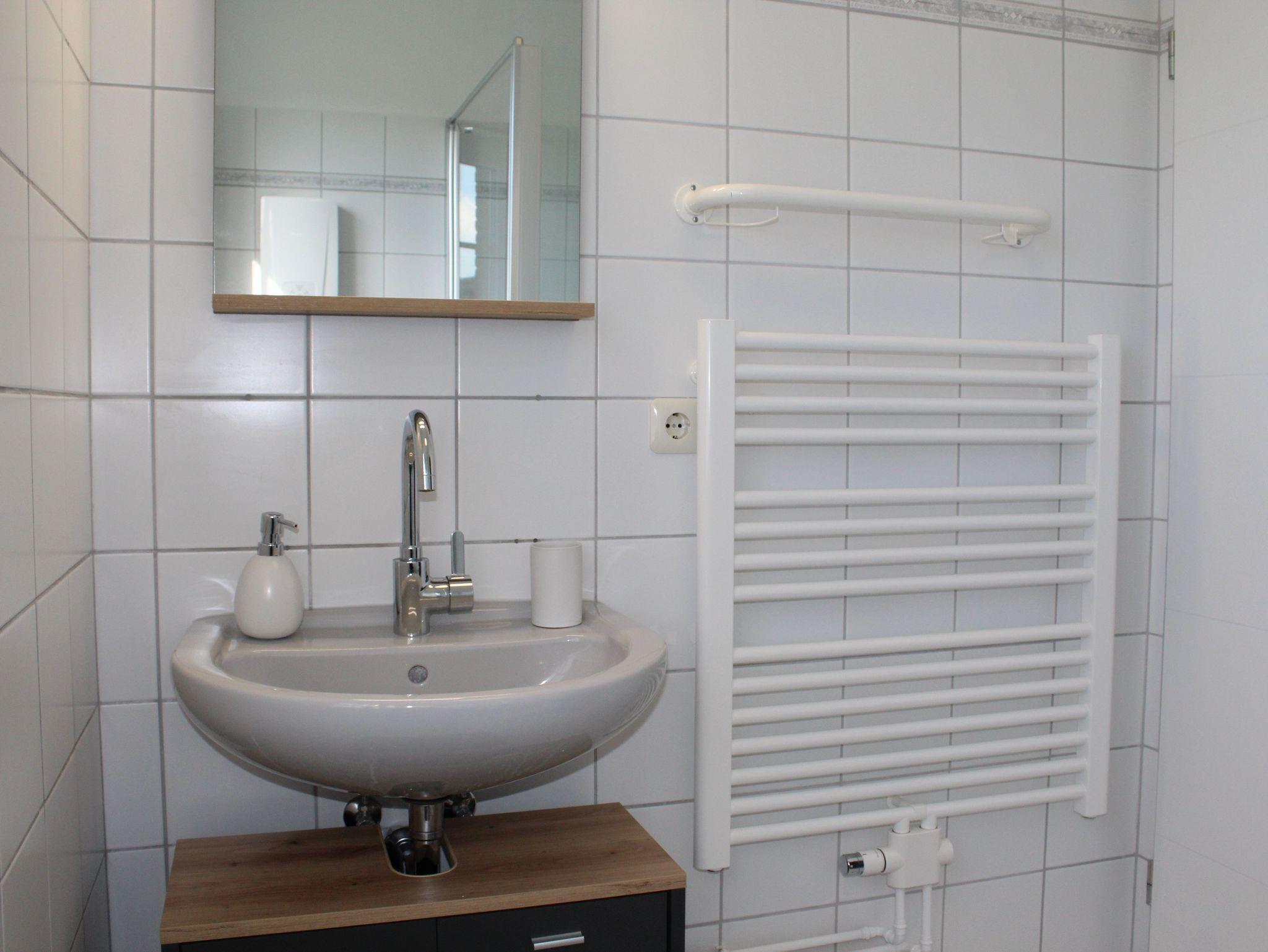 Im Obergeschoß befinden sich die beiden Schlafzimmer, eines mit Doppelbett (180x200cm) und eines mit zwei Einzelbetten (90x200cm) und das Duschbad mit Walk-In-Dusche.