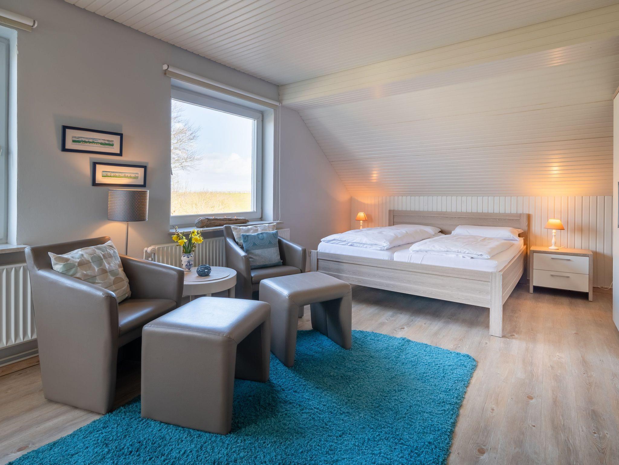 Bei uns erleben Sie das Weltnaturerbe Wattenmeer hautnah. Sie hören die Seevögel von Ihrem Fenster. Von hier gehen Sie zwei Minuten und Sie schauen von der Deichkrone auf?s Meer und grüne Vorlandwiesen. Unsere Anpflanzungen laden Schmetterlinge, Bienen und Hummeln ein. Hier können Sie Stille genießen und Ihre Seele baumeln lassen.