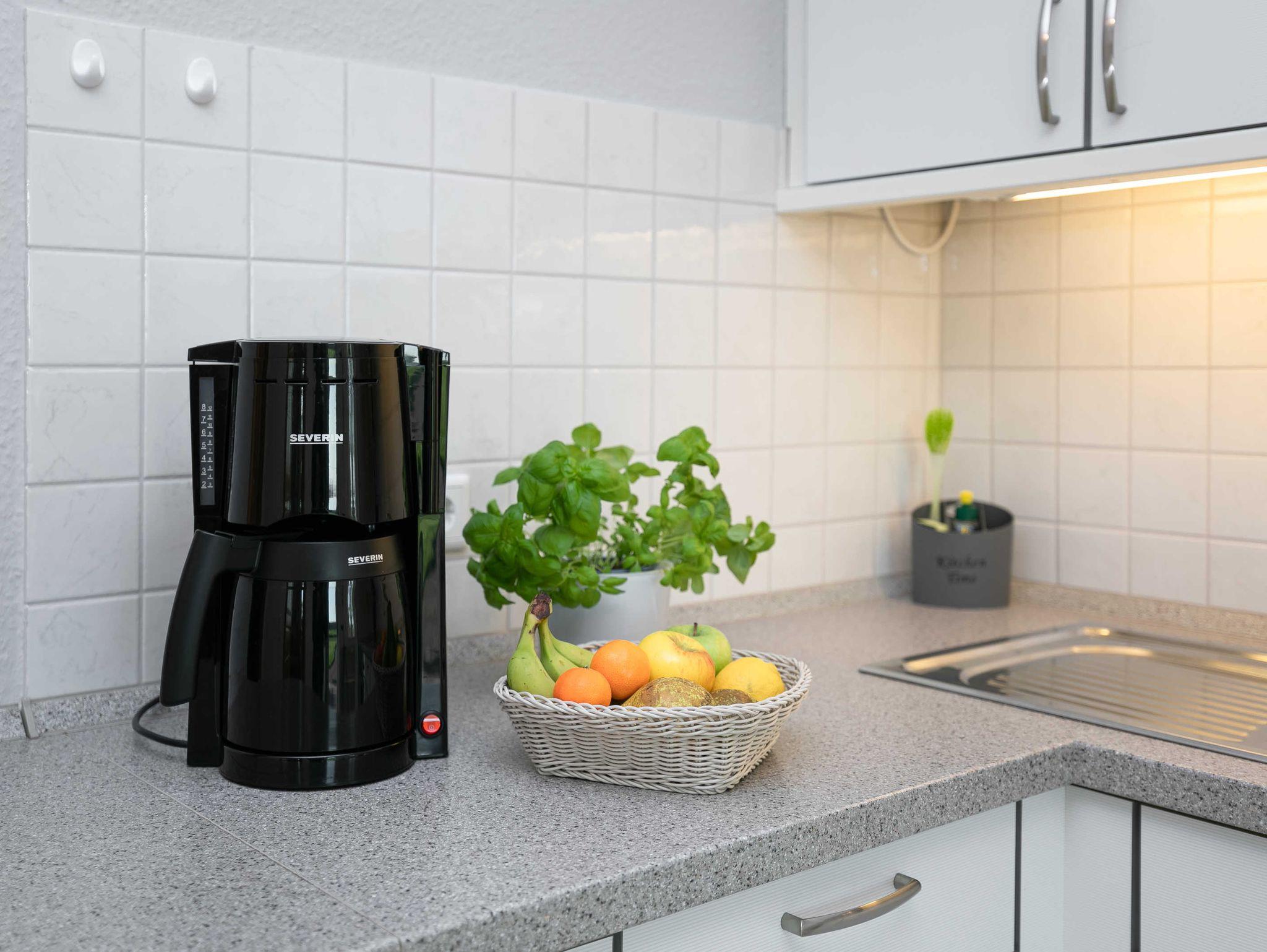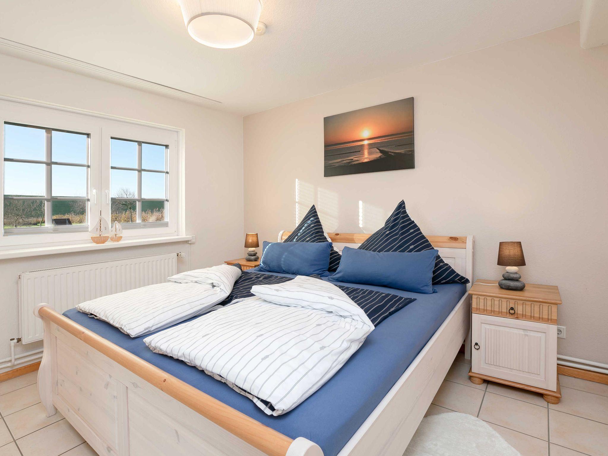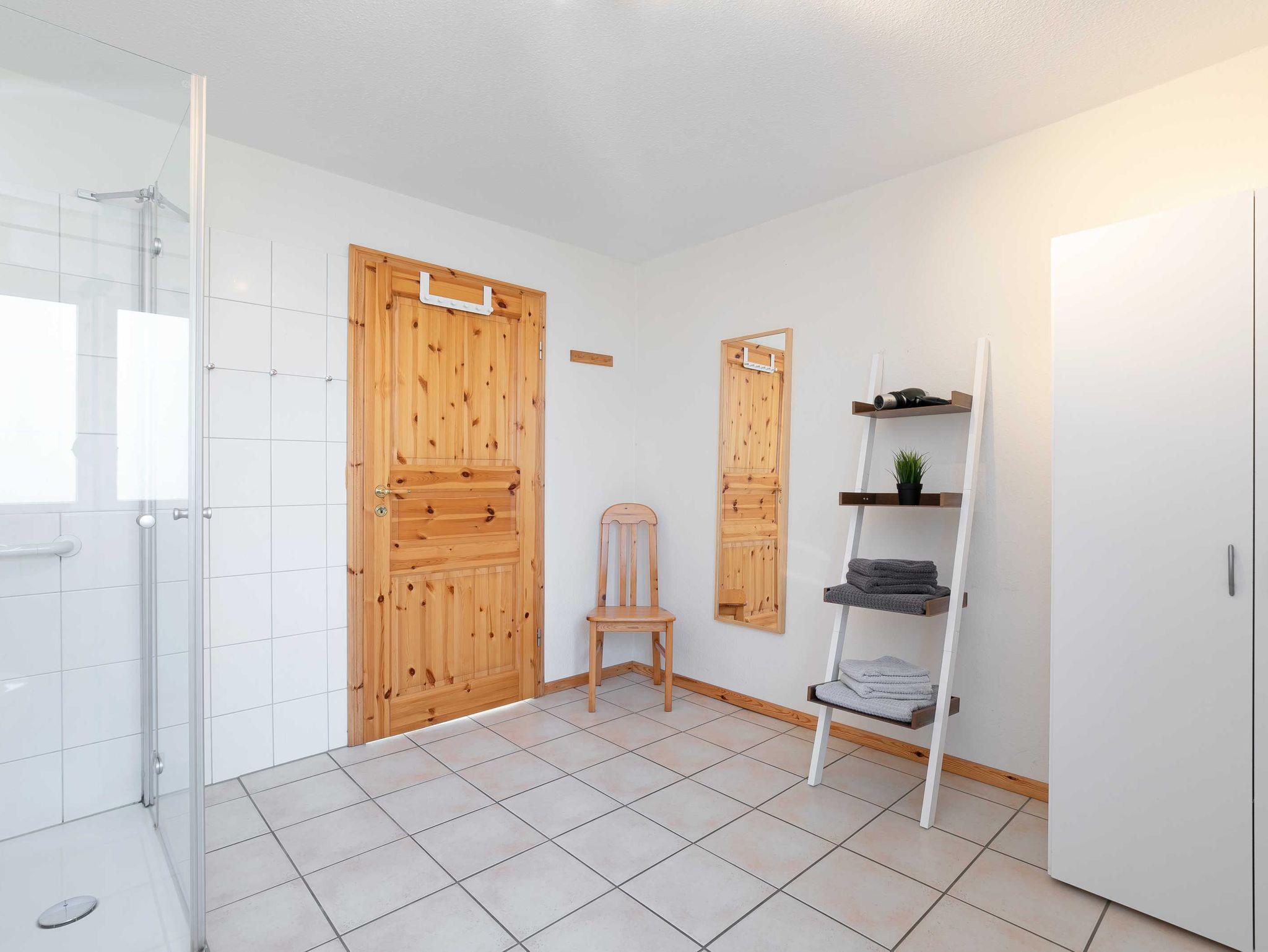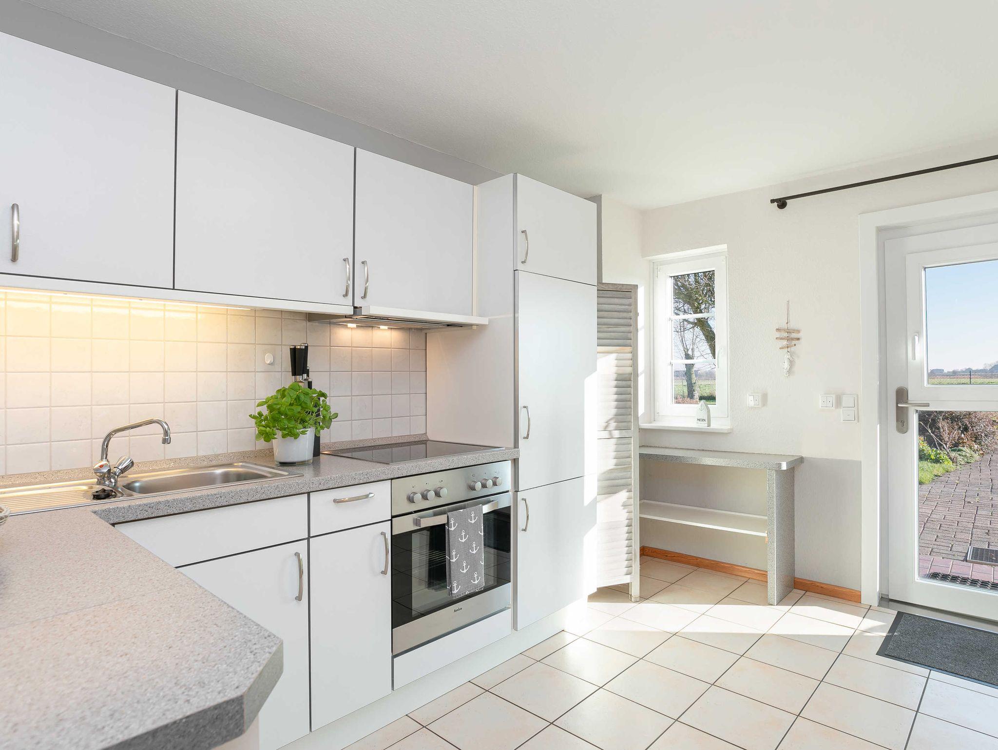 Die Wohnung betrittst Du von Osten her über einen abgetrennten Eingangsbereich in die komplett ausgestattete Küche. Deine Terrasse mit eigenen Sitzmöbeln und Strandkorb befindet sich direkt vor dem Eingang. Der Küche angeschlossen ist das großzügige moderne Duschbad mit ebenerdiger Dusche und der kombinierte Wohn- und Essbereich. Hier findest Du ein Schlafsofa, TV-Board mit Flachbild TV und einen gemütlichen Essbereich. Das Schlafzimmer schließt sich dann dem Wohn- und Essbereich an. Alles ist im modernen Landhausstil in den Farbtönen weiß/sandfarben eingerichtet und mit maritimen Details gestaltet.