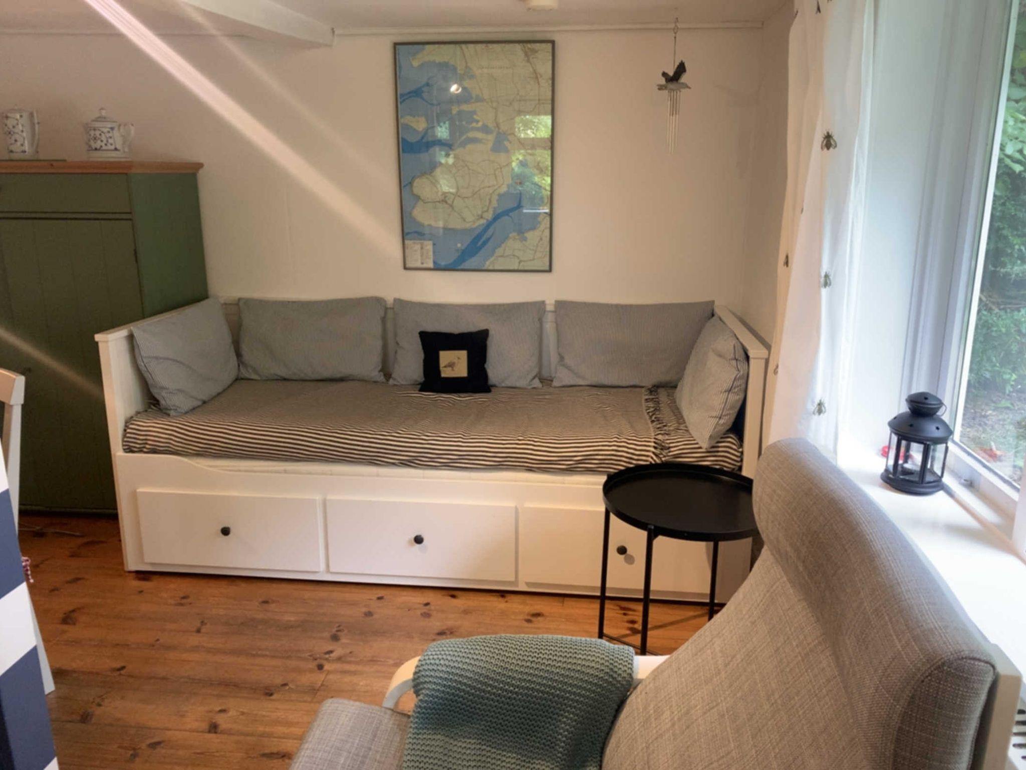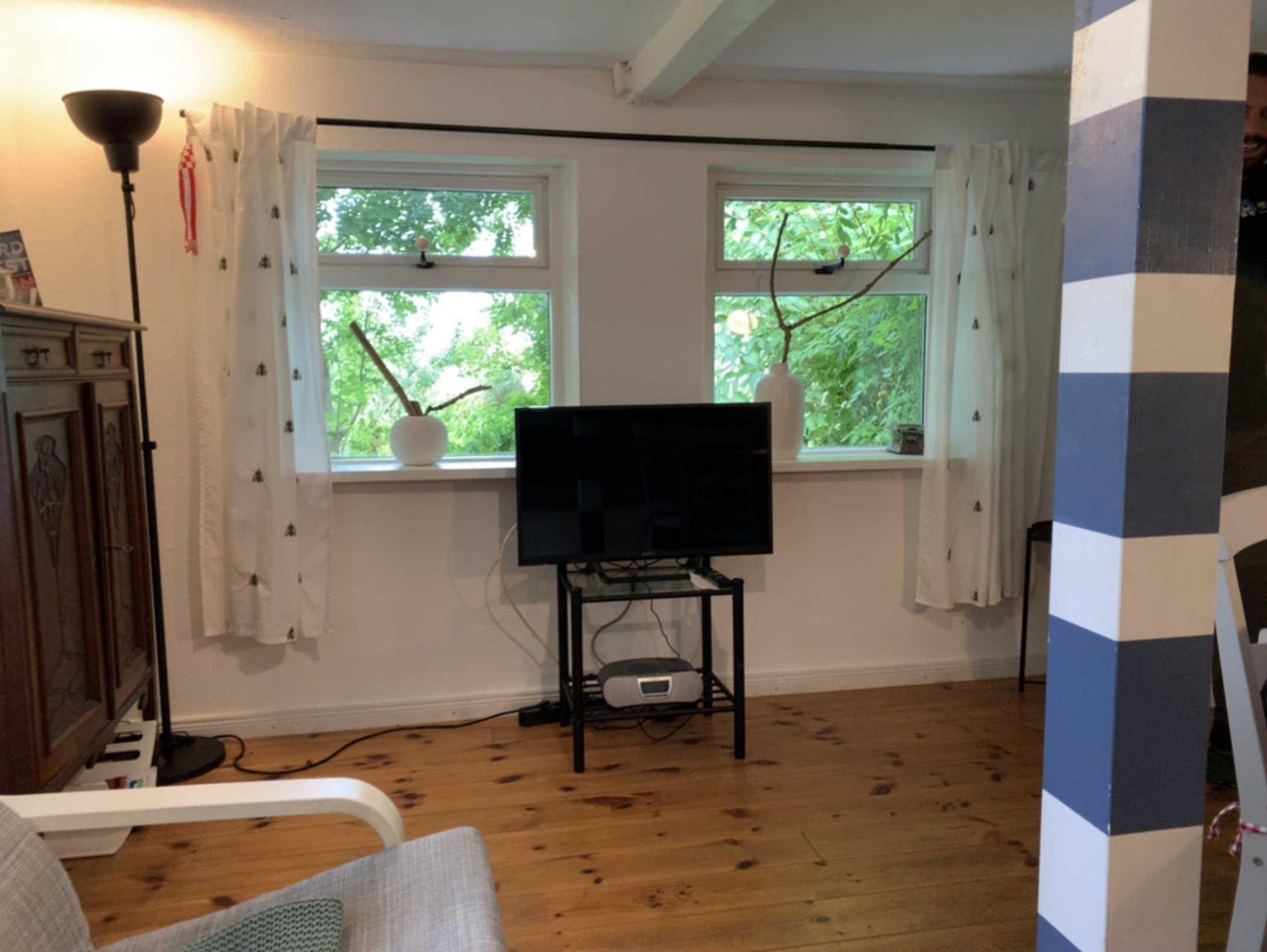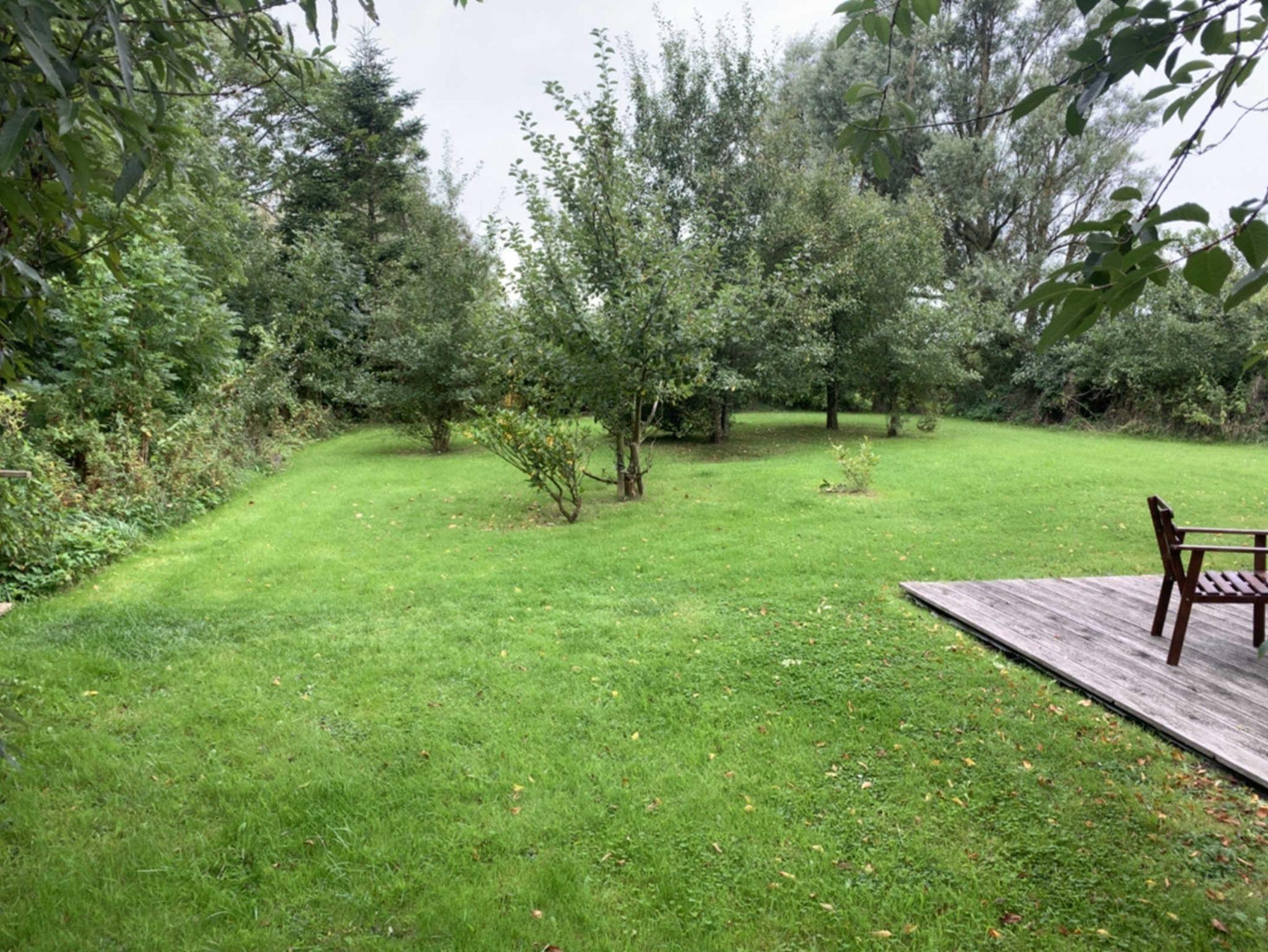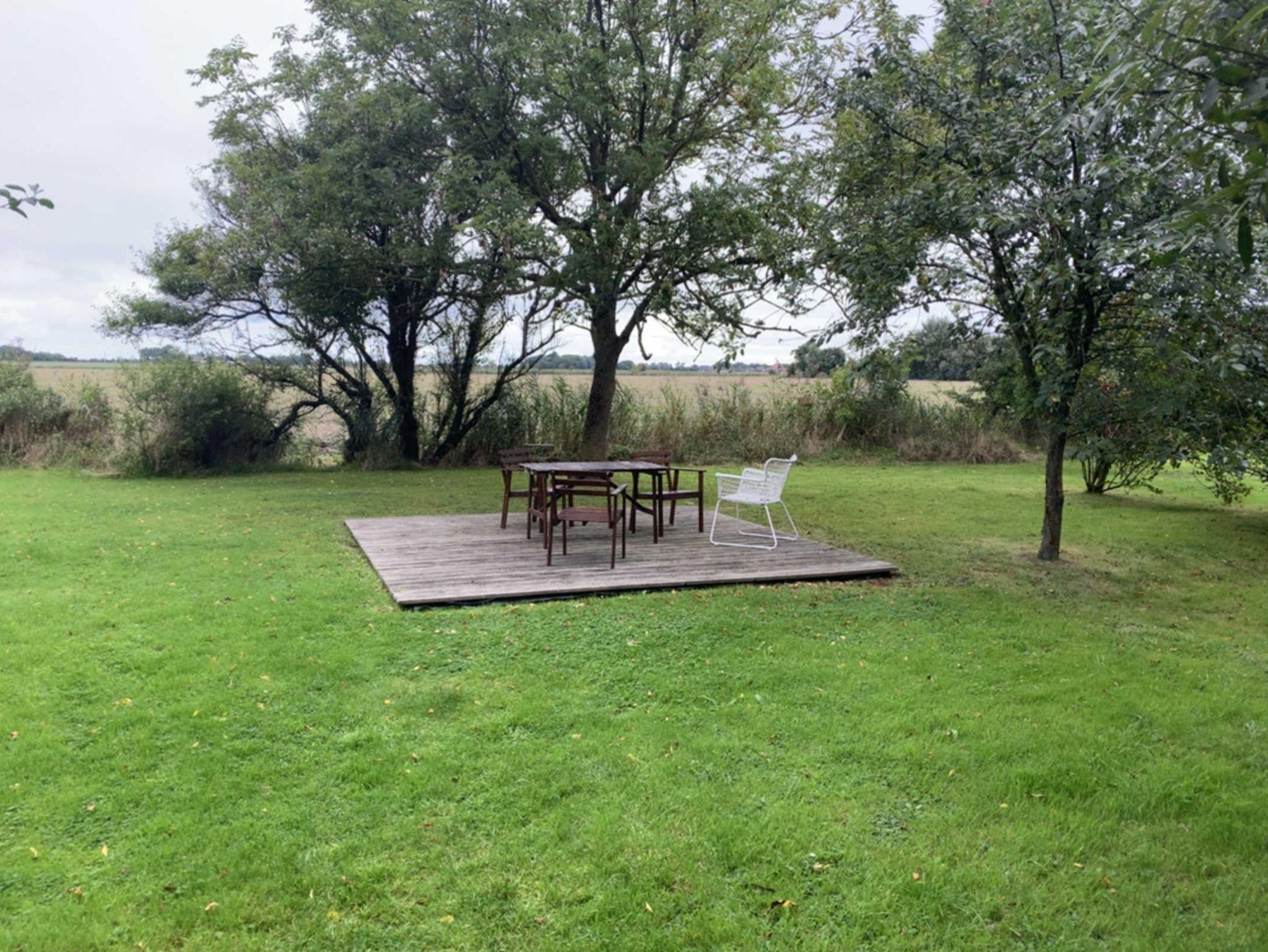 Zu dem Haus gehört auch ein großer Garten mit Sitz- und Spielmöglichkeiten und einem unvergleichlichem Blick auf Nordstrands Felder und Natur.