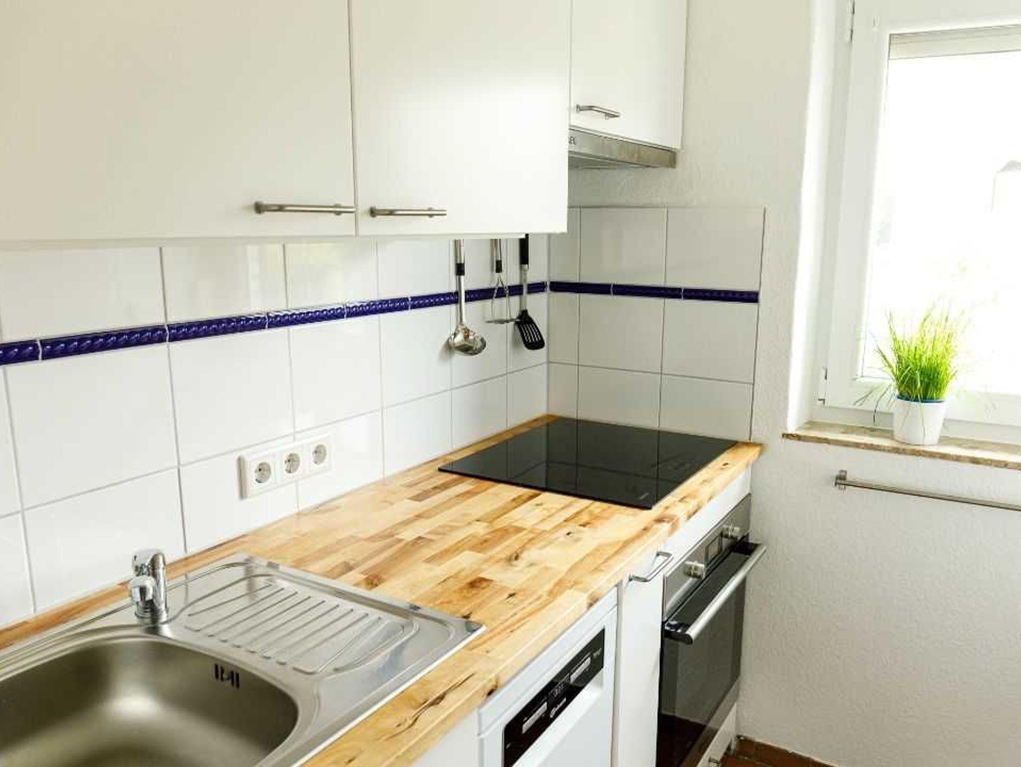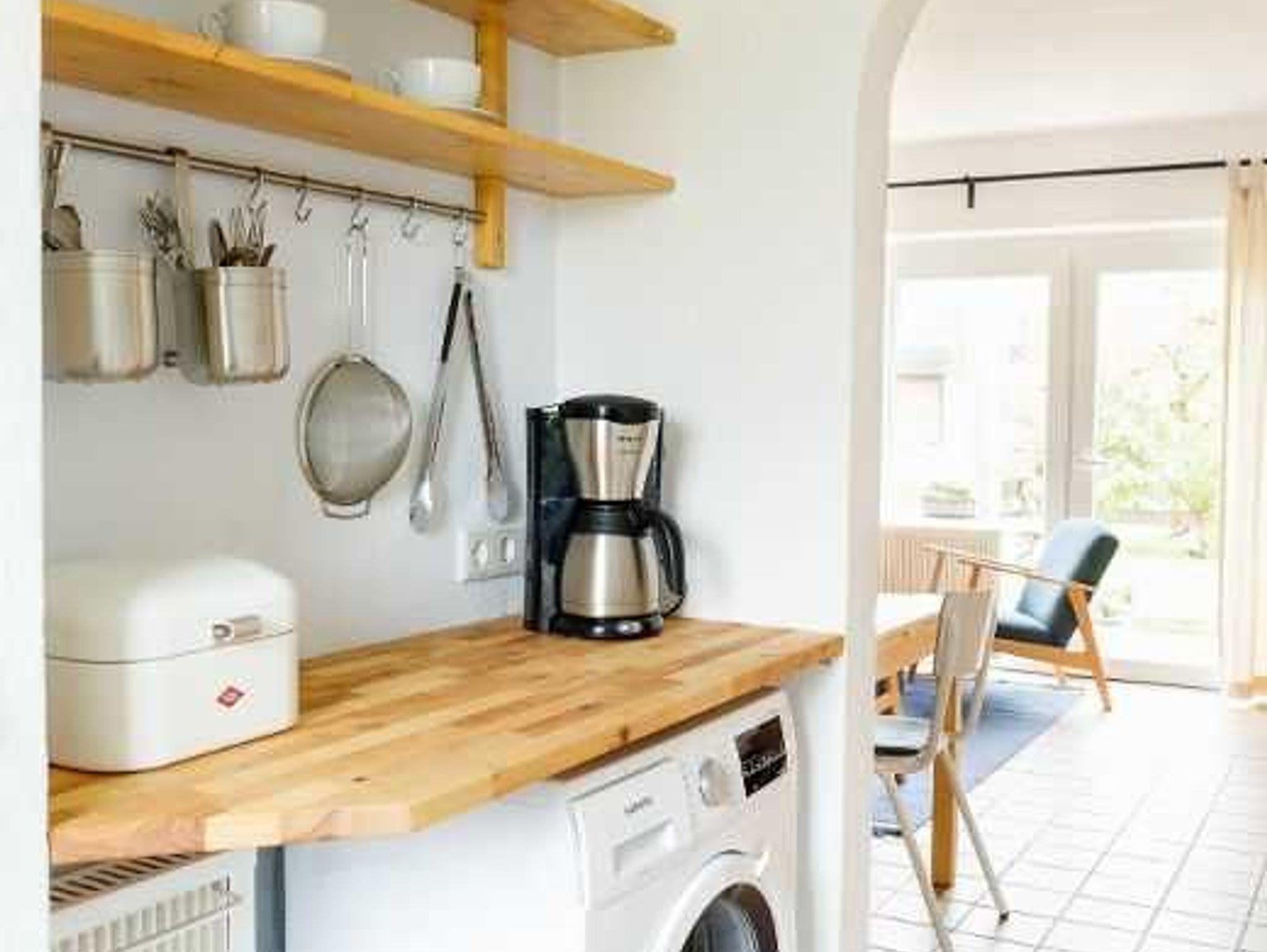 mit Geschirrspülmaschine sowie Waschmaschine eingerichtet. Ein zusätzliches WC ist vom Flur aus zu erreichen.