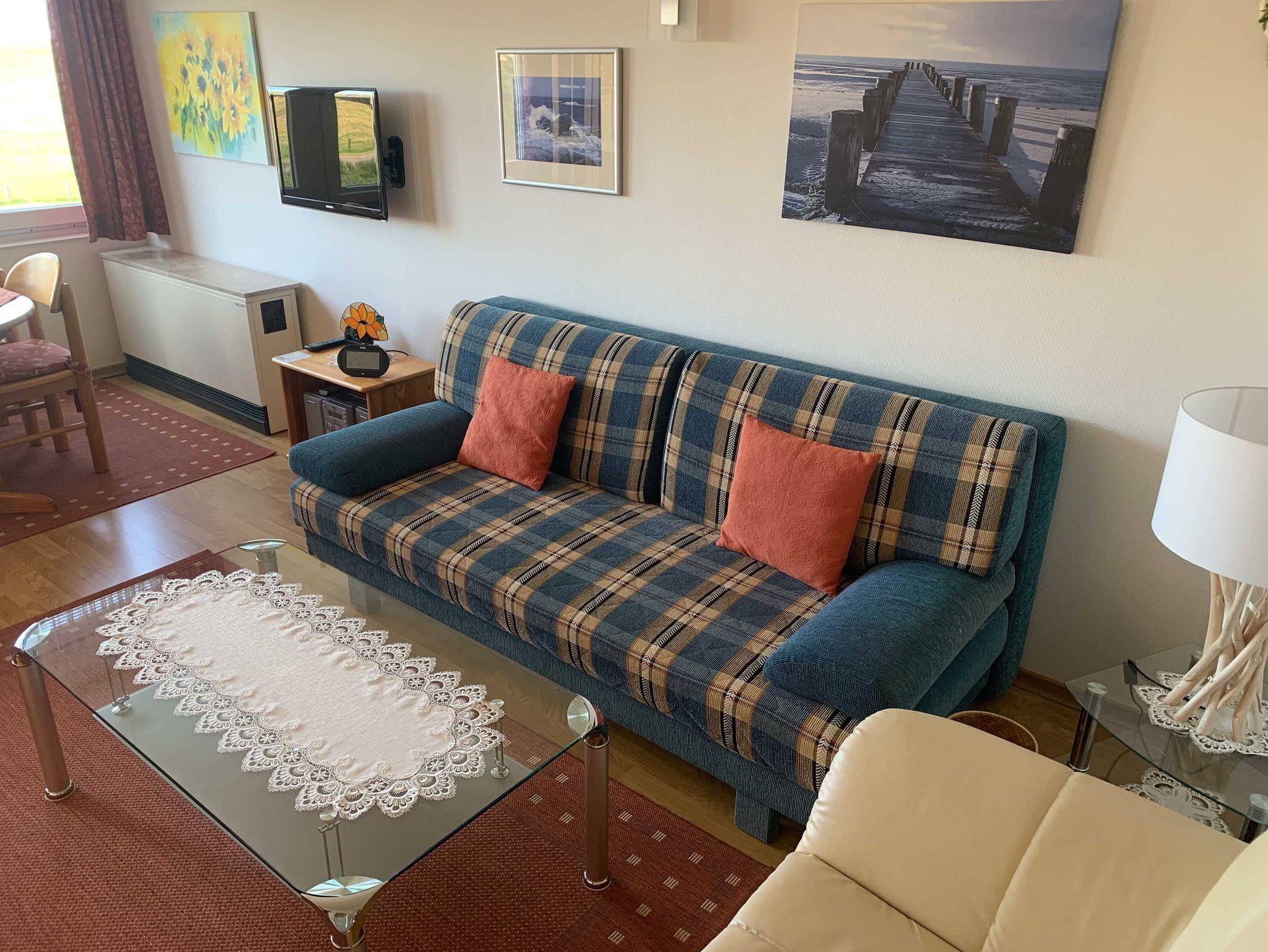 Das Appartement 33 ist für 2 Personen ausgestattet. Gelegen ist es im Haus Lübeck, direkt am Nordseedeich. Von der Wohnküche und vom Schlafzimmer hat man einen wunderschönen Blick auf den Nordstrander Klimadeich.