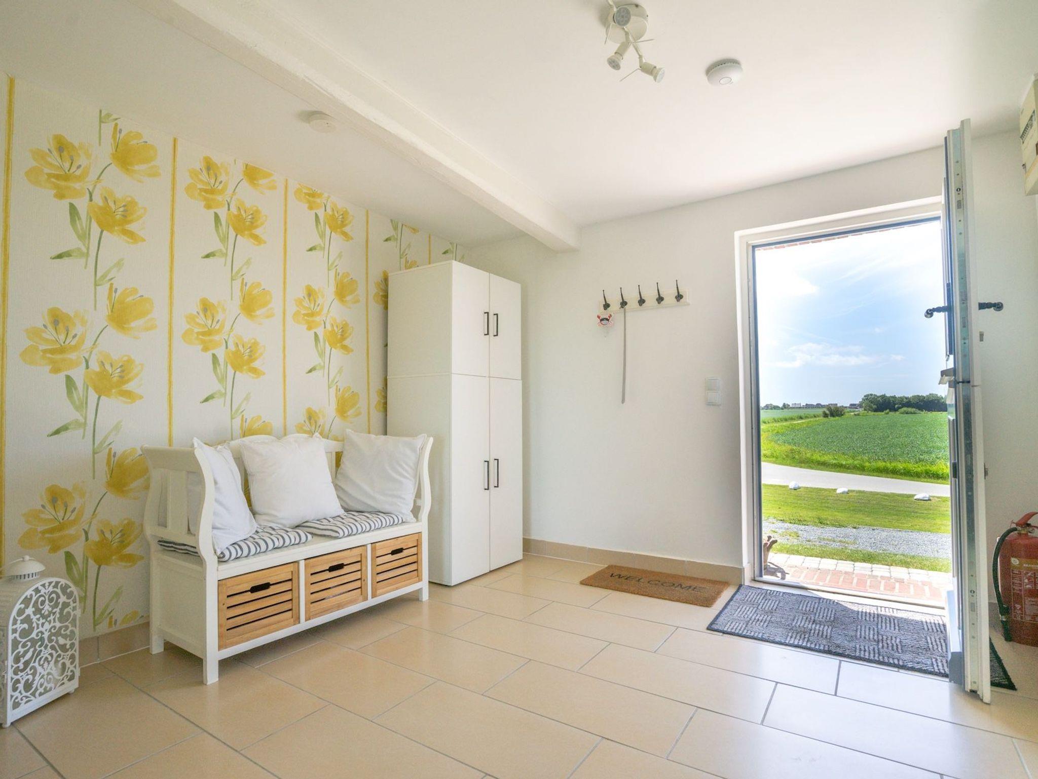 Diese liebevoll gestaltete Unterkunft vereint klare Linien mit warmen Akzenten. Großzügige Fenster lassen viel Licht in alle Räume und eröffnen herrliche Ausblicke auf die Marschenlandschaft. Ein separates Schlafzimmer mit Doppelbett sorgt für erholsamen Schlaf, während der Wohnbereich mit Schlafsofa flexibel nutzbar ist – ideal für Familien oder Freunde. Die Ausstattung, WLAN, die voll ausgestattete Küche und kleine Details wie der Wickeltisch machen Ihren Aufenthalt besonders komfortabel.