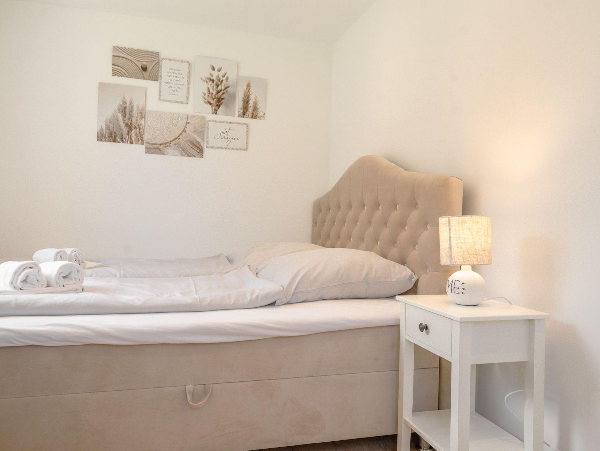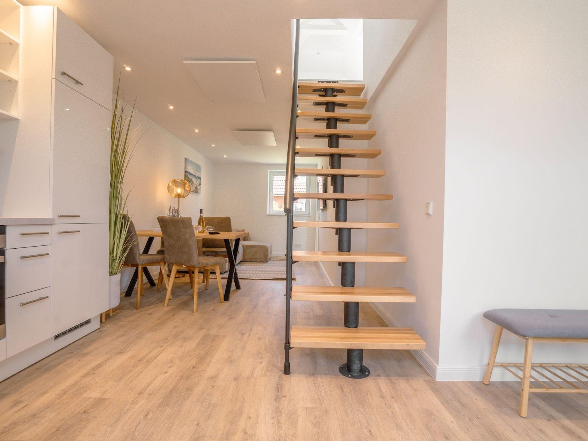 Die Küstenlodge Sternentraum bietet euch auf rund 65m² ein stilvolles, lichtdurchflutetes Zuhause auf Zeit ? perfekt für Familien oder zwei befreundete Paare. Im Erdgeschoss befindet sich ein gemütliches Schlafzimmer mit einem komfortablen Doppelbett und direktem Zugang zur Terrasse. Auf der offenen Galerieebene unter dem Dach erwartet euch ein zweites Doppelbett mit traumhaftem Ausblick ? ideal zum Sterne zählen vor dem Einschlafen. Im großzügigen Wohnbereich laden eine kuschelige Sofaecke mit ausziehbarem Doppelschlafsofa sowie ein moderner Smart-TV zum Verweilen ein. Hier finden bei Bedarf zwei weitere Gäste einen komfortablen Schlafplatz.