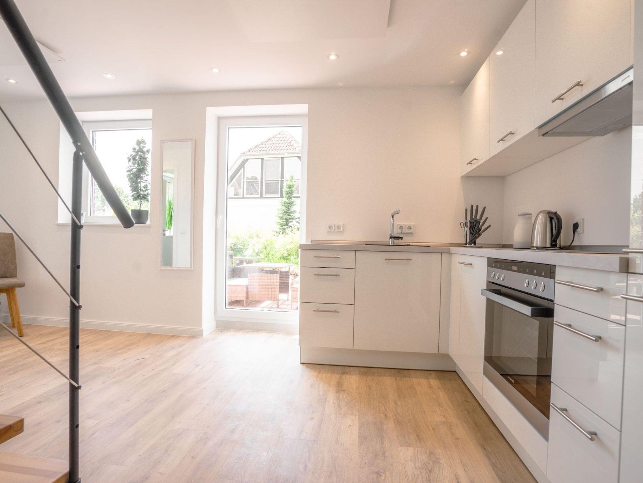 Voll ausgestattete Küche mit Spülmaschine, Backofen, Ceranfeld & Kaffeemaschine