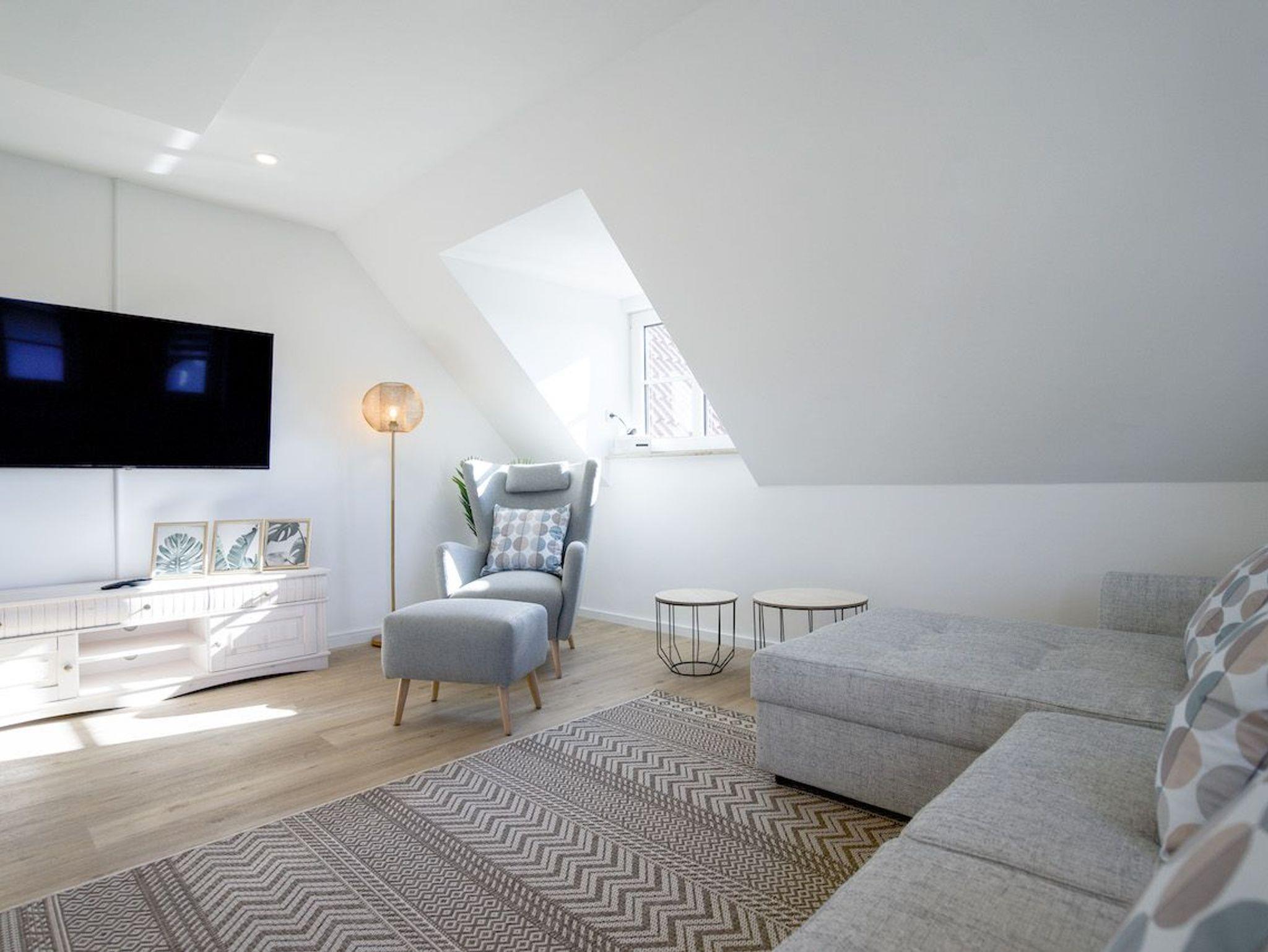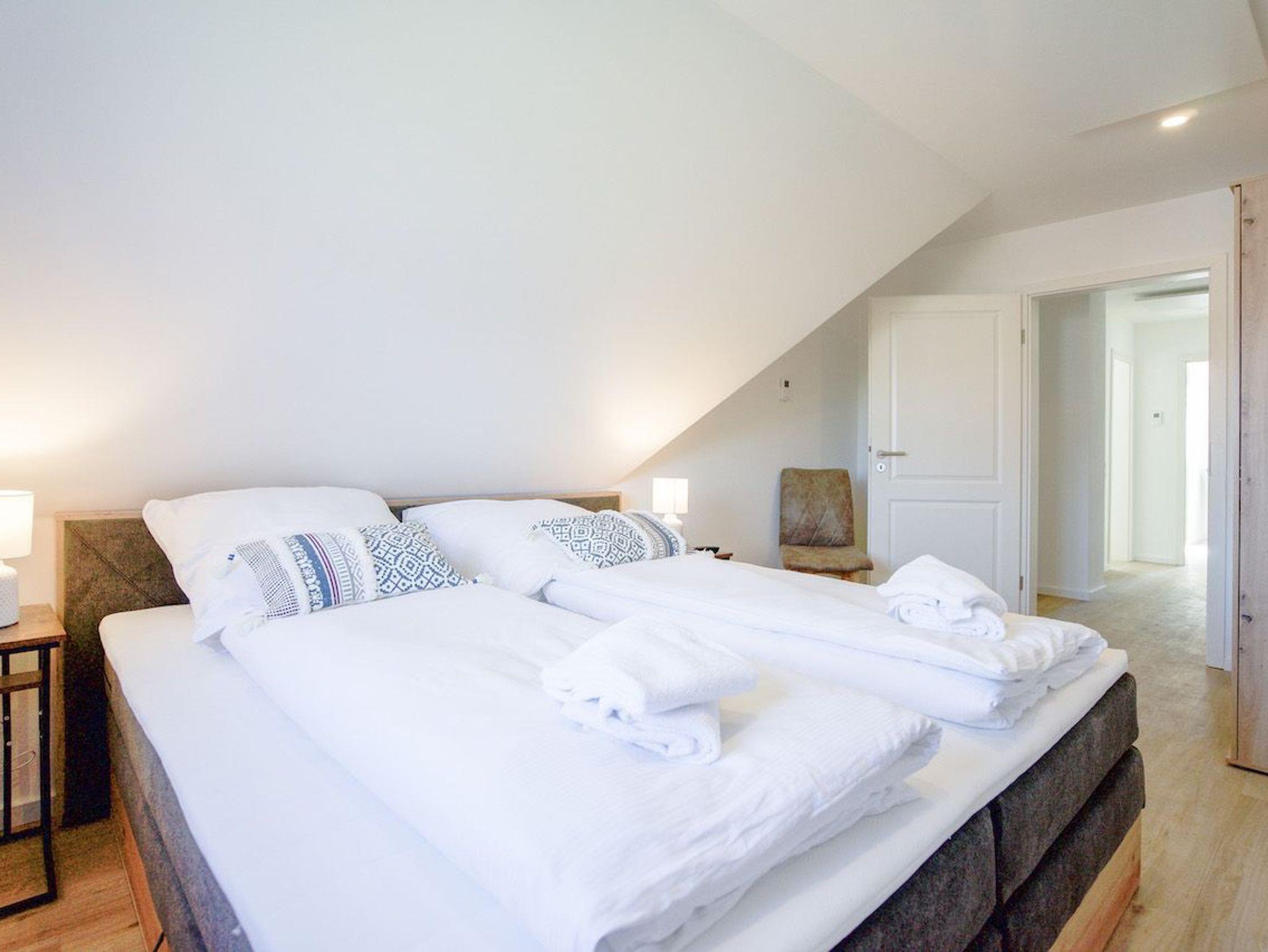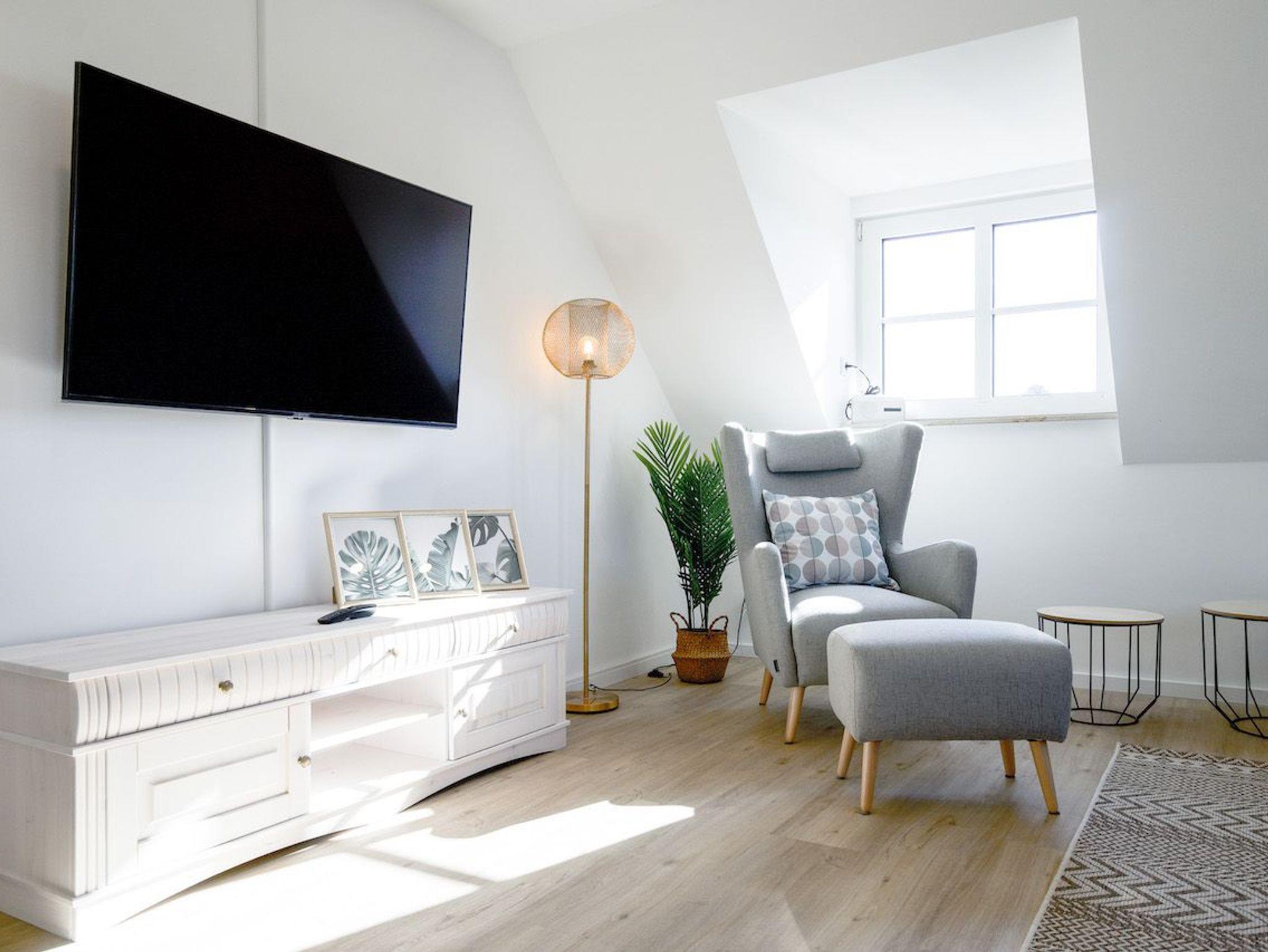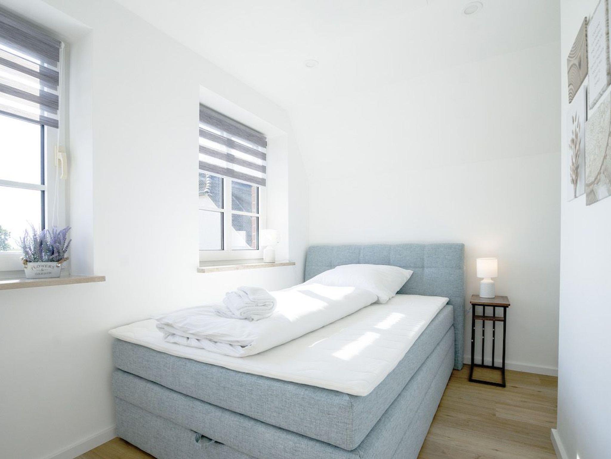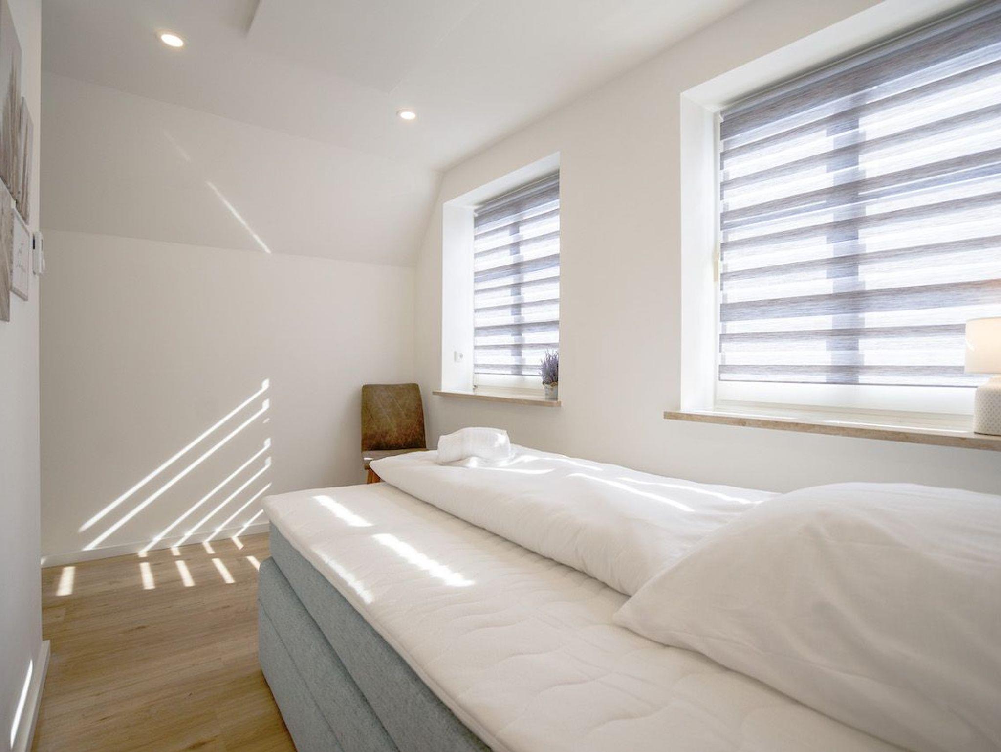 Das helle und geschmackvoll eingerichtete Appartement bietet Platz für bis zu sechs Personen. Die zwei Schlafzimmer (1 Doppelbett 180 x 200 und 1 franz. Doppelbett 160 x 200) sind jeweils mit einem Boxspringbett ausgestattet und verfügen über einen Smart-TV.