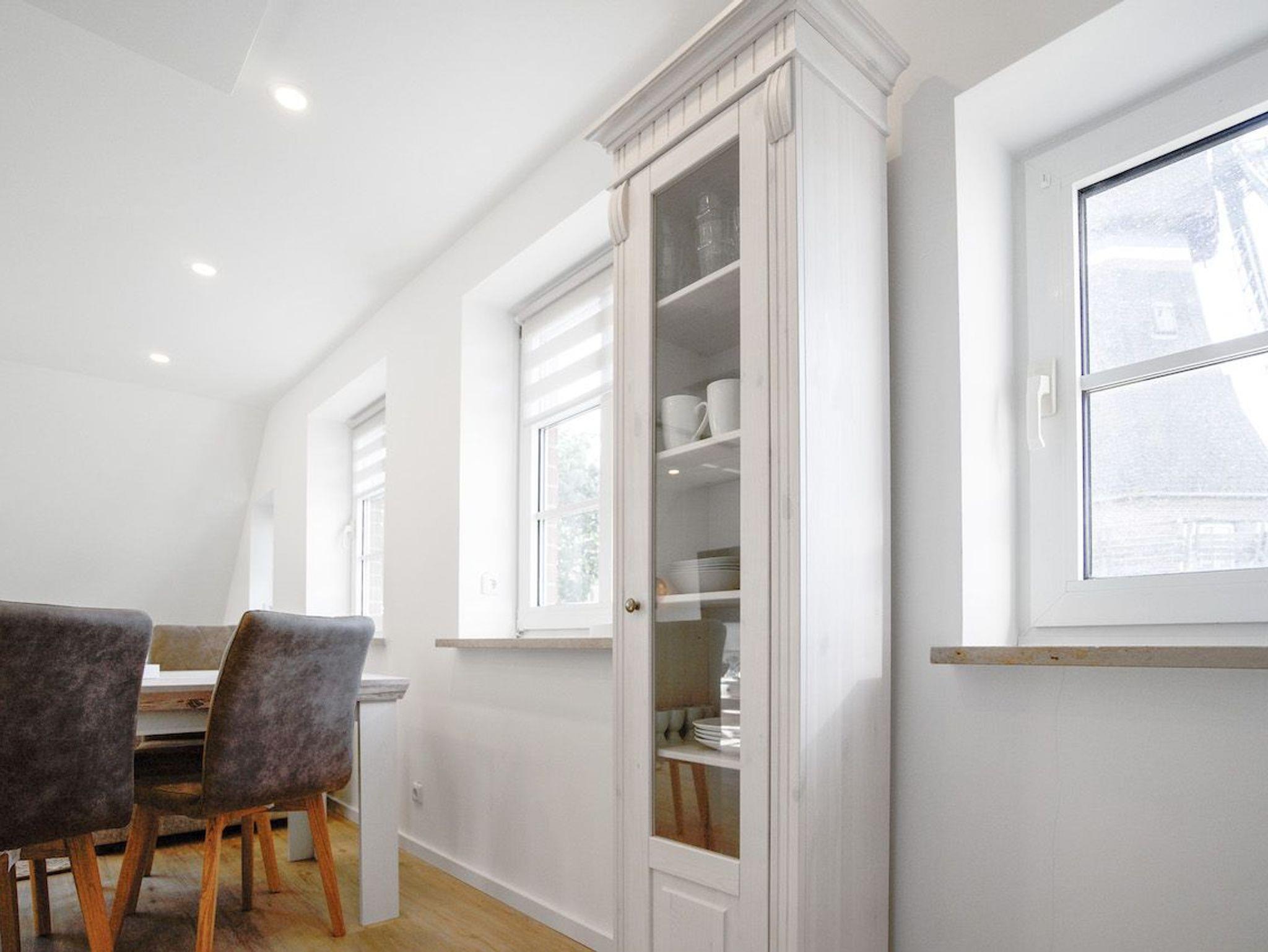 Eine schicke, moderne Ferienwohnung mit allen Räumen auf einer Ebene, Garten mit Blick auf die Holländer-Windmühle direkt nebenan, Duschbad und Platz für die ganze Familie oder zwei Pärchen, was kann man sich für einen schönen Nordsee-Urlaub mehr wünschen.