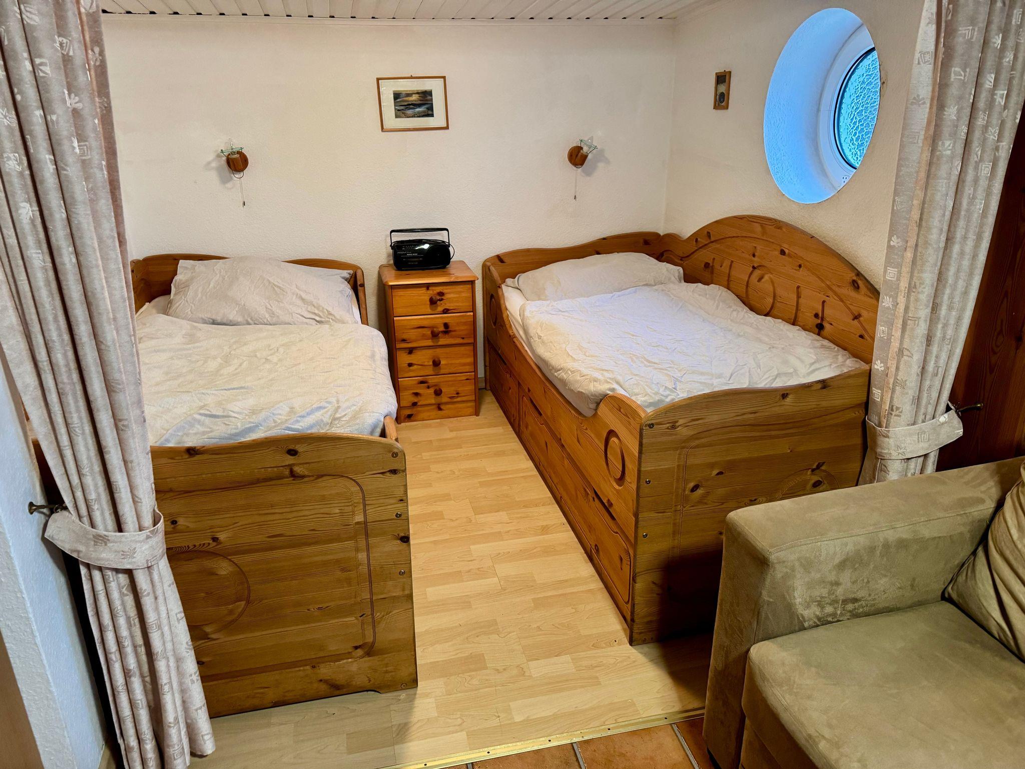 Die separate Wohnung Uli ist das perfekte Domizil für zwei Personen. Hier finden Sie einen gemütlichen Wohn- und Schlafraum mit zwei Einzelbetten, Couch, TV und Esstisch. Die kompakte Küche mit Herd und Kühlschrank bietet alles für die kleine Urlaubsküche. Das angrenzende Duschbad rundet die praktische Ausstattung ab.