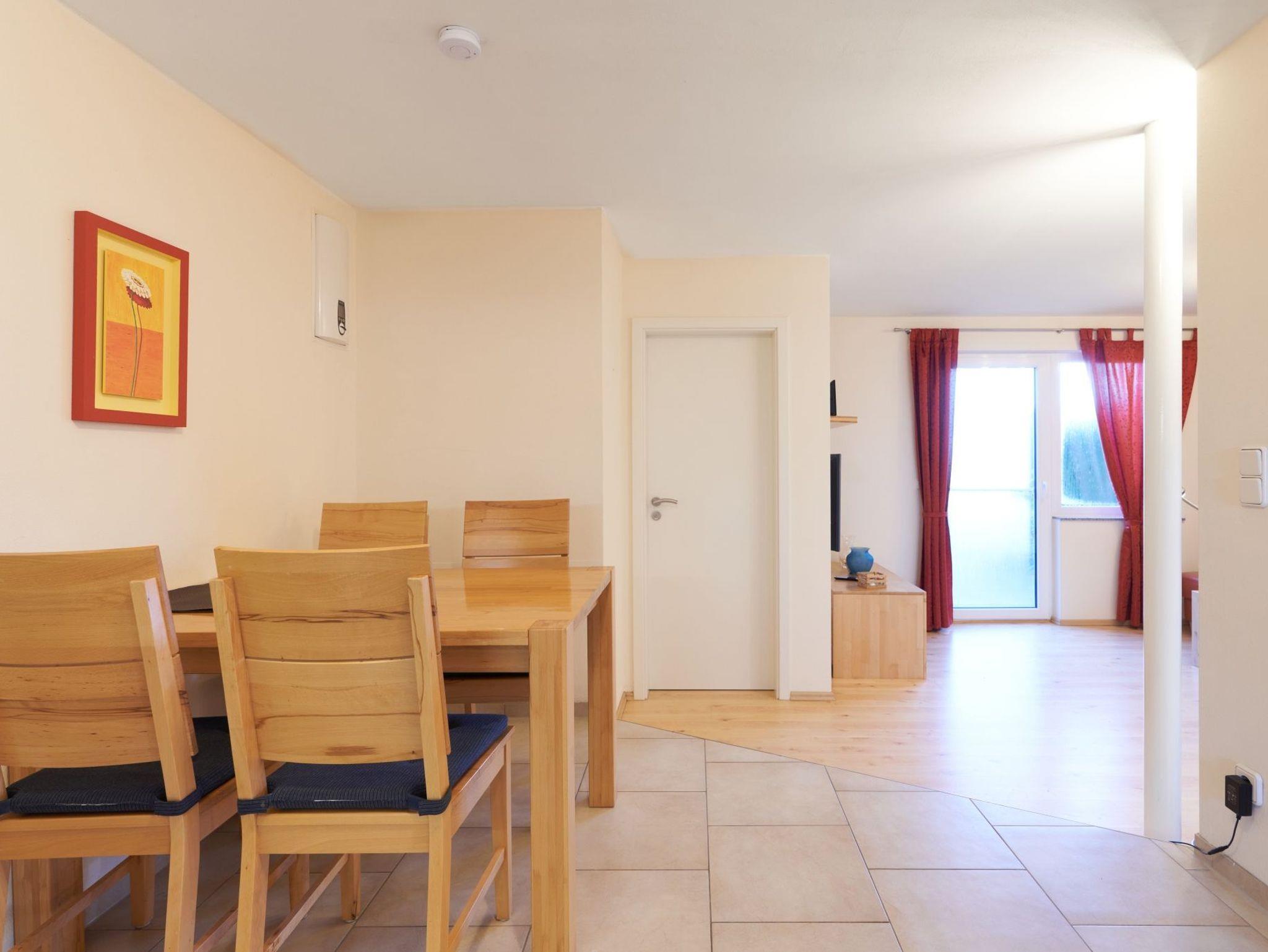 Im Wohnzimmer gibt es eine Stufe, die Unterkunft ist somit nicht komplett ebenerdig.