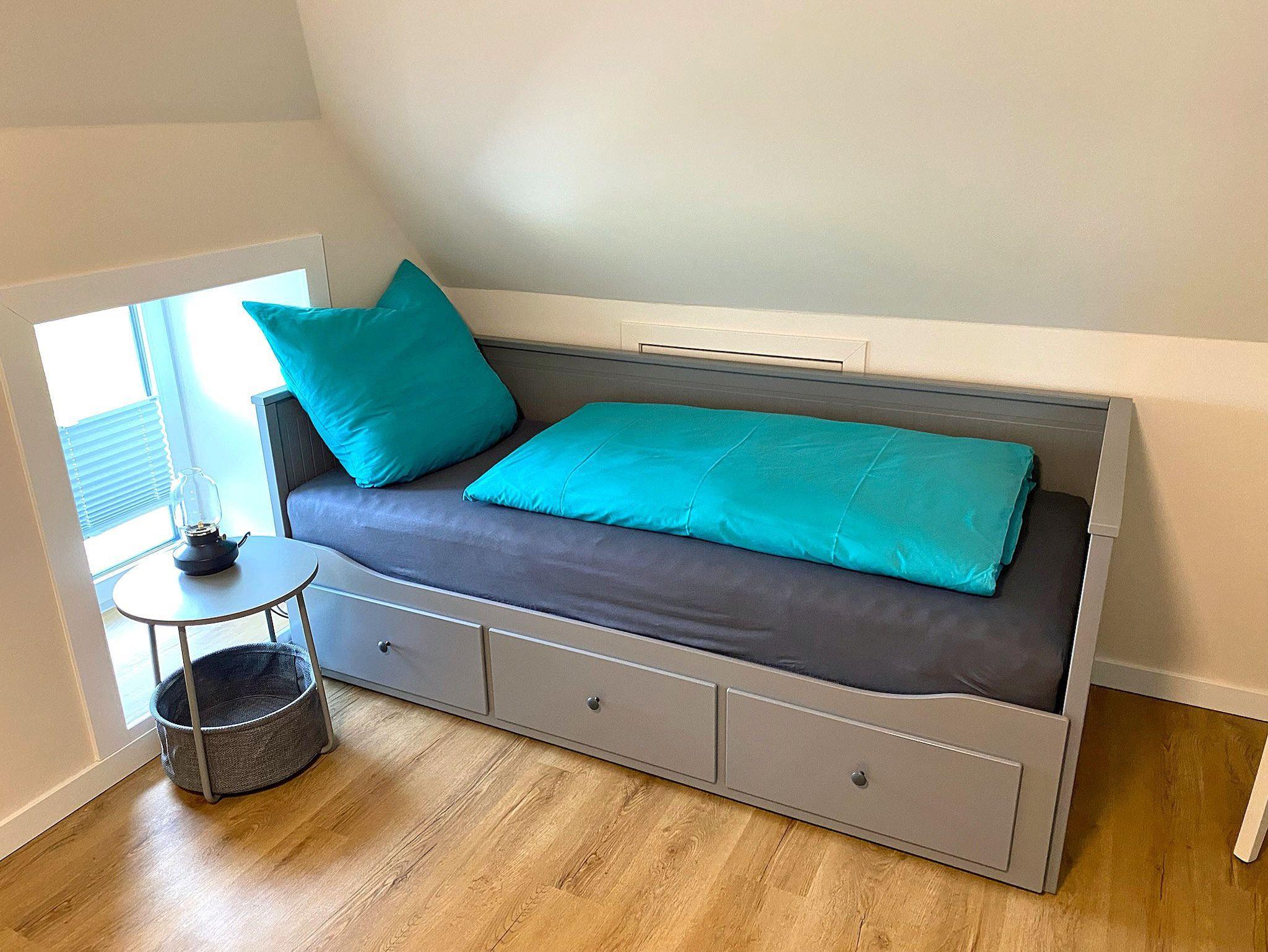 Für Jugendliche und/oder geübte Kletterer gibt es eine Schlafkoje direkt unter dem Dach mit 2 Futon-Betten.