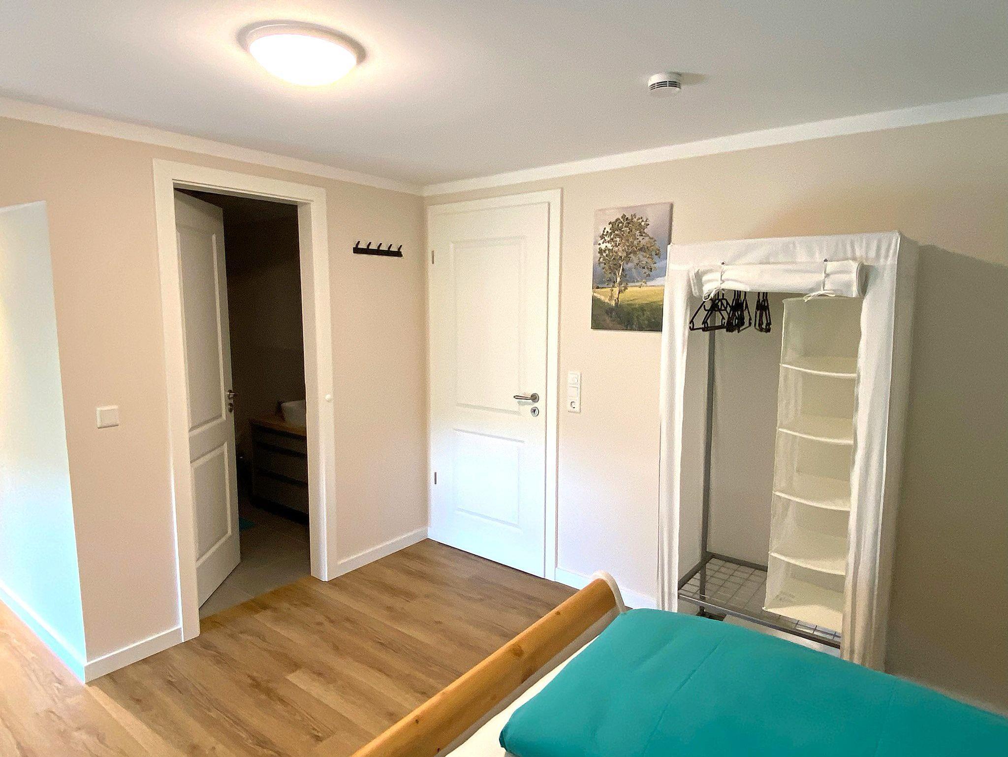 Die Wohnung verfügt über zwei Schlafzimmer, jeweils mit Doppelbett (180cm x 200cm und 160cm x 200cm). Eines der Schlafzimmer hat ein En-Suite-Badezimmer mit fast bodengleicher Dusche und eine gemütliche Leseecke.