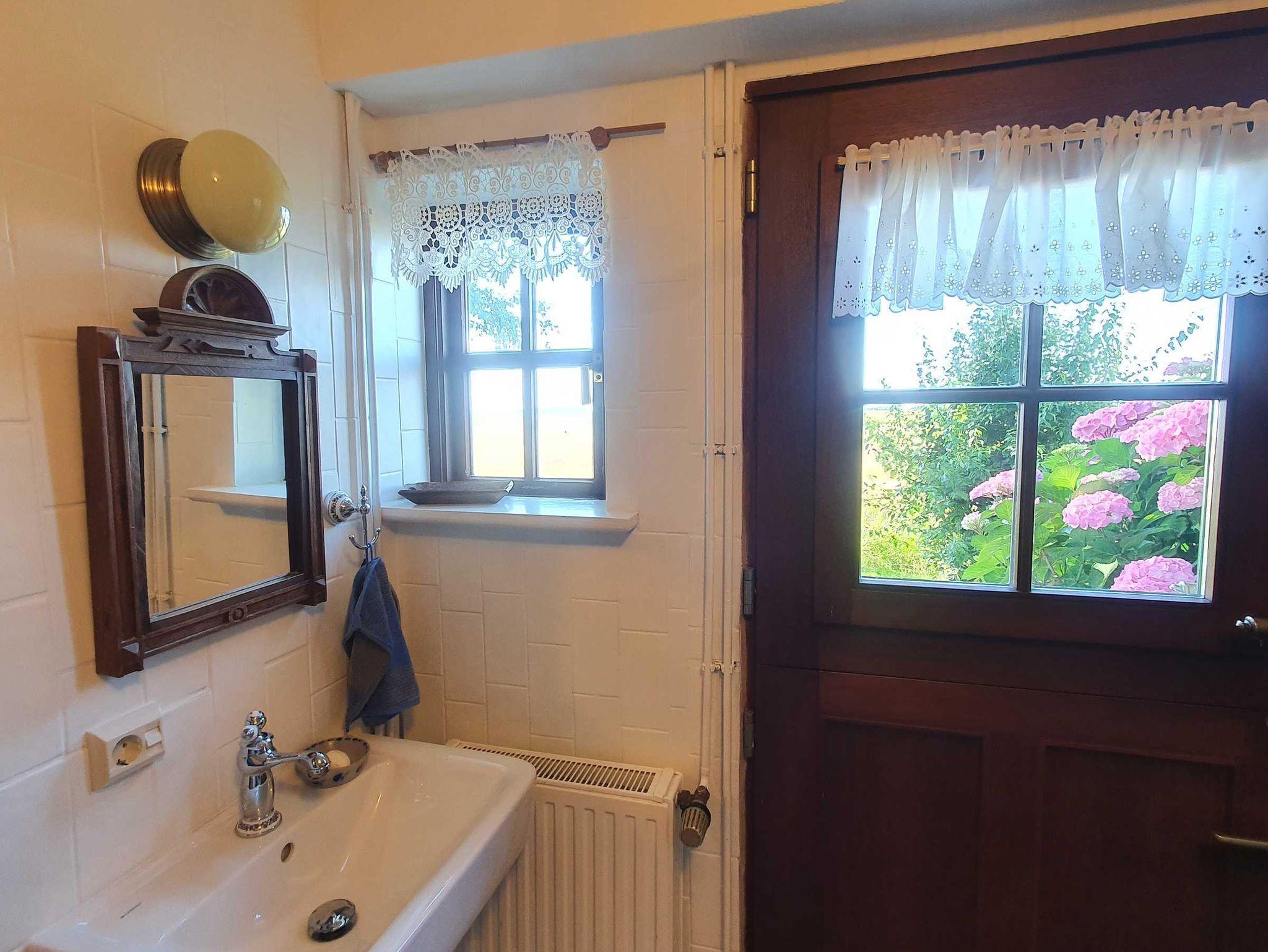 Von der Küche aus, die alles beinhaltet, was zum heutigen Komfort eines Ferienhauses gehört, auch, wenn ansonsten das Haus als Original samt Ausstattung durch seine authentische Einzigartigkeit und zahlreiche originale Elemente besticht, erreicht man den Hauswirtschaftsraum mit weiterem Waschbecken, Waschmaschine, Spülmaschine, Mikrowelle etc., das urige Bad mit WC und geräumiger Dusche sowie durch eine Klöntür den Garten, das ca. 500m² große Deichgrundstück mit liebevoll angelegten Rosengärten und zahlreichen Sitzmöglichkeiten um das Haus herum...