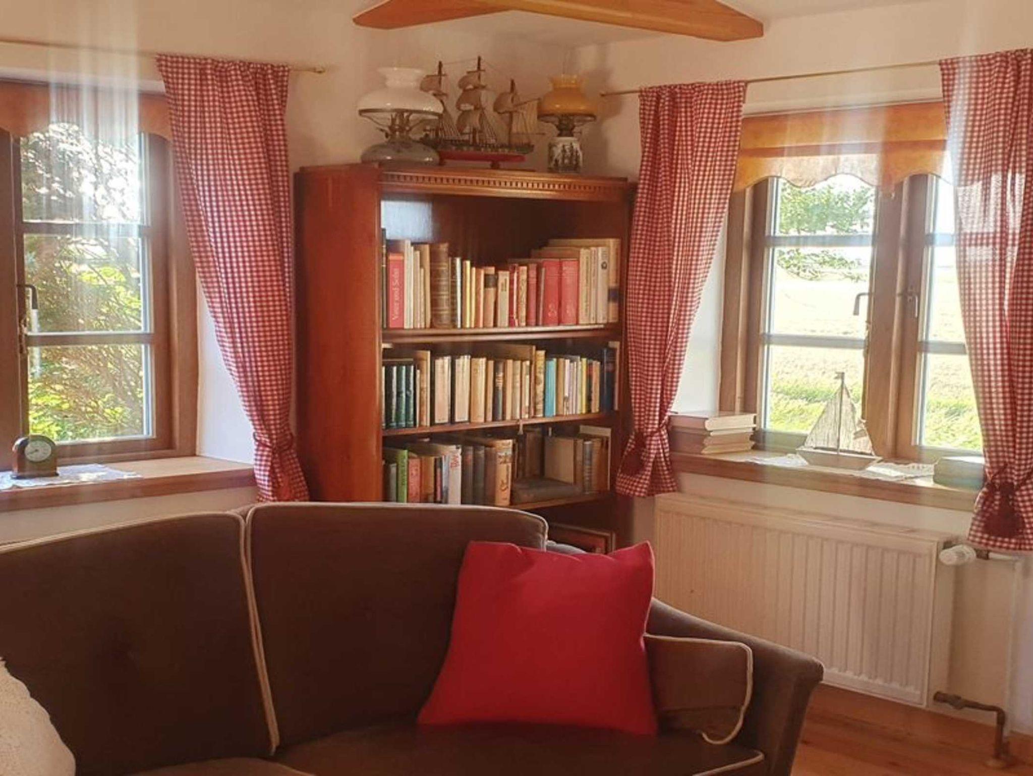 Das Besondere im EG ist der Original Alkoven mit somit einem weiteren Bett (180 x 90), Holzofen, großem Essbereich mit ausgesucht wertigem Geschirr sowie sehr gut und Detail-verliebt ausgestattete Küche mit Essecke, Küchenblock, Retro-Herd und nostalgischer Haube sowie unendlich weit schweifendem Blick über den Deich und die Felder bis dorthin, wo man das Meer schon ganz in der Nähe weiß.