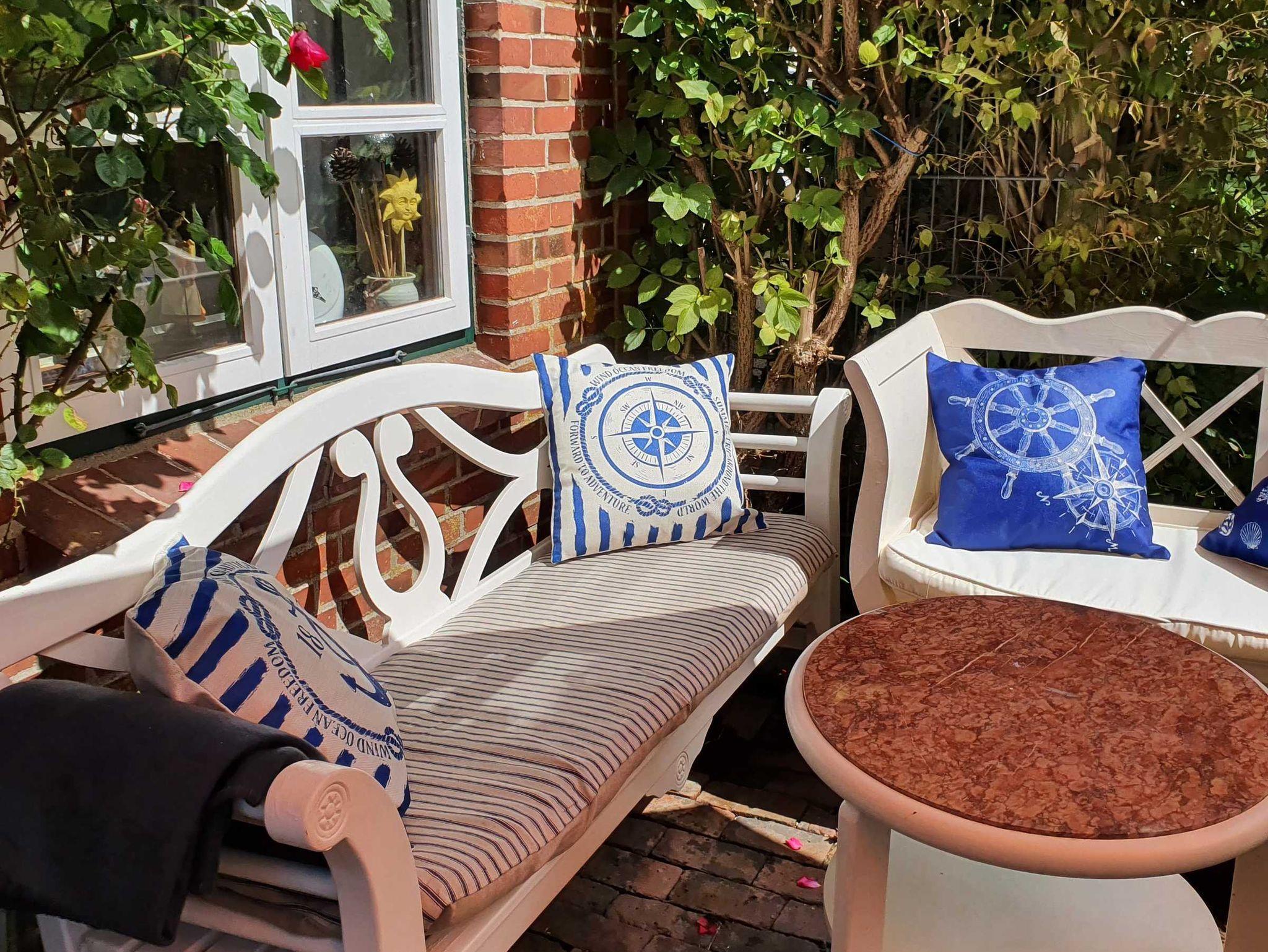 Der Strandkorb bzw. der Ankerplatz hinter dem Haus sorgen für einen traumhaften Blick auf den Sonnenuntergang, und der üppigst blühende Garten lädt dazu ein, ihn mit allen Sinnen zu genießen, besonders windgeschützte Ecken laden dazu ein.