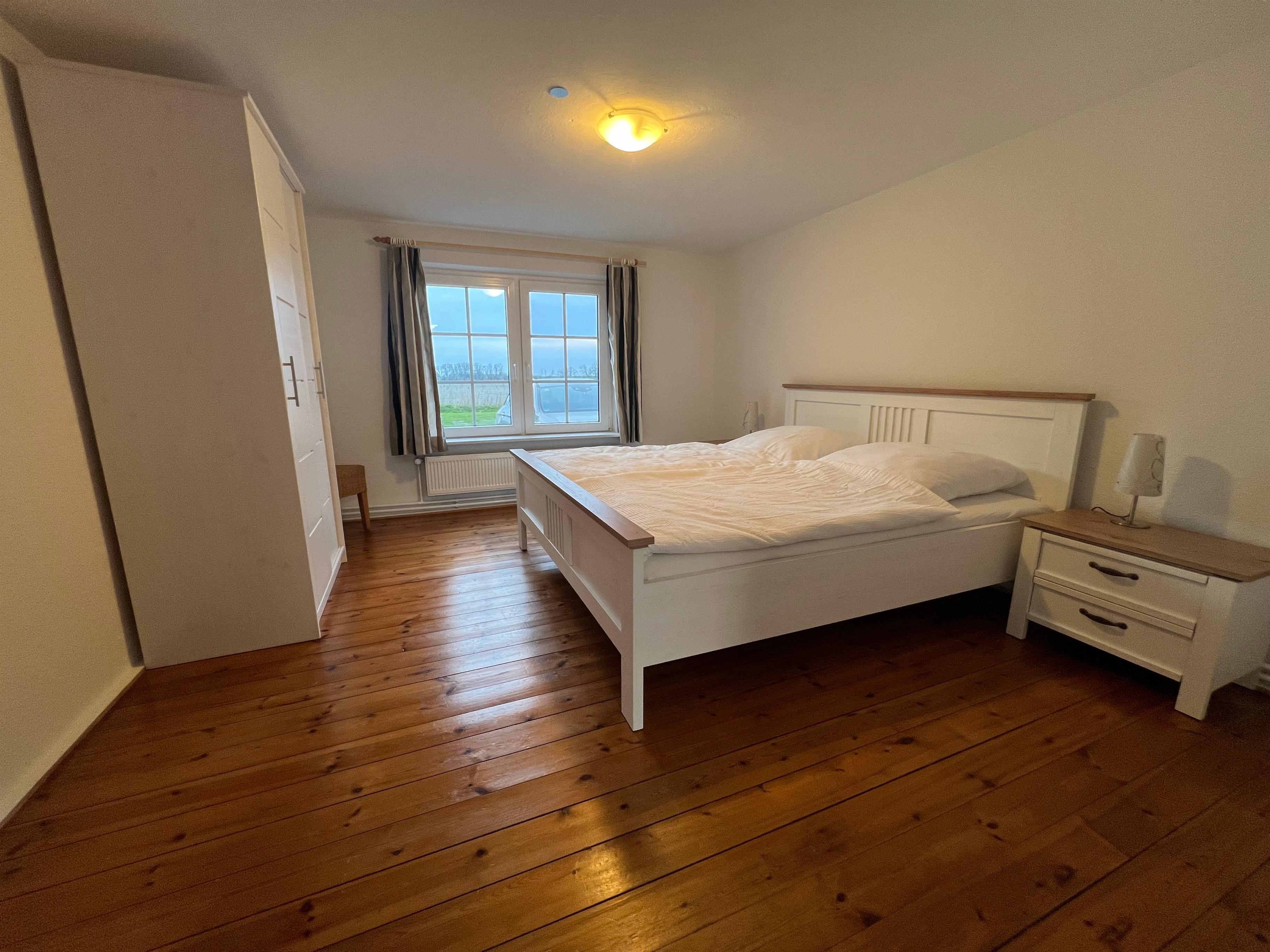 1 Schlafzimmer mit Doppelbett, ein geräumiges Wohnzimmer mit ausziehbarer Couch (zum Schlafen geeignet für