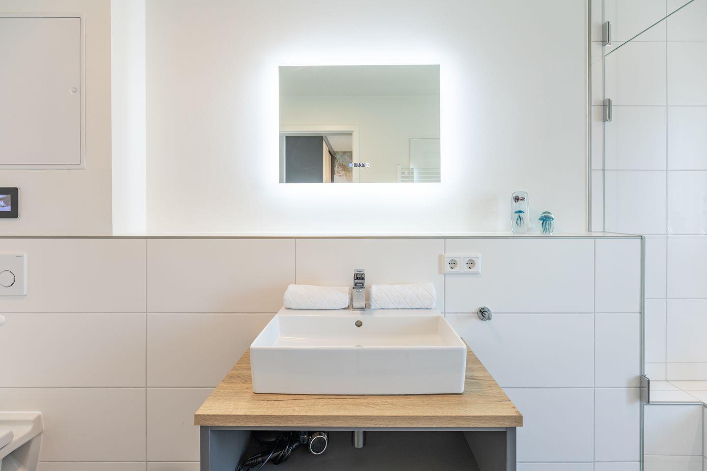 Das Ferienwohnung Wattsegler de Luxe bietet Ihnen mit einer eigenen Dampfbad-Sauna einen exklusiven privaten Wellnessbereich – perfekt für erholsame Stunden in absoluter Privatsphäre.