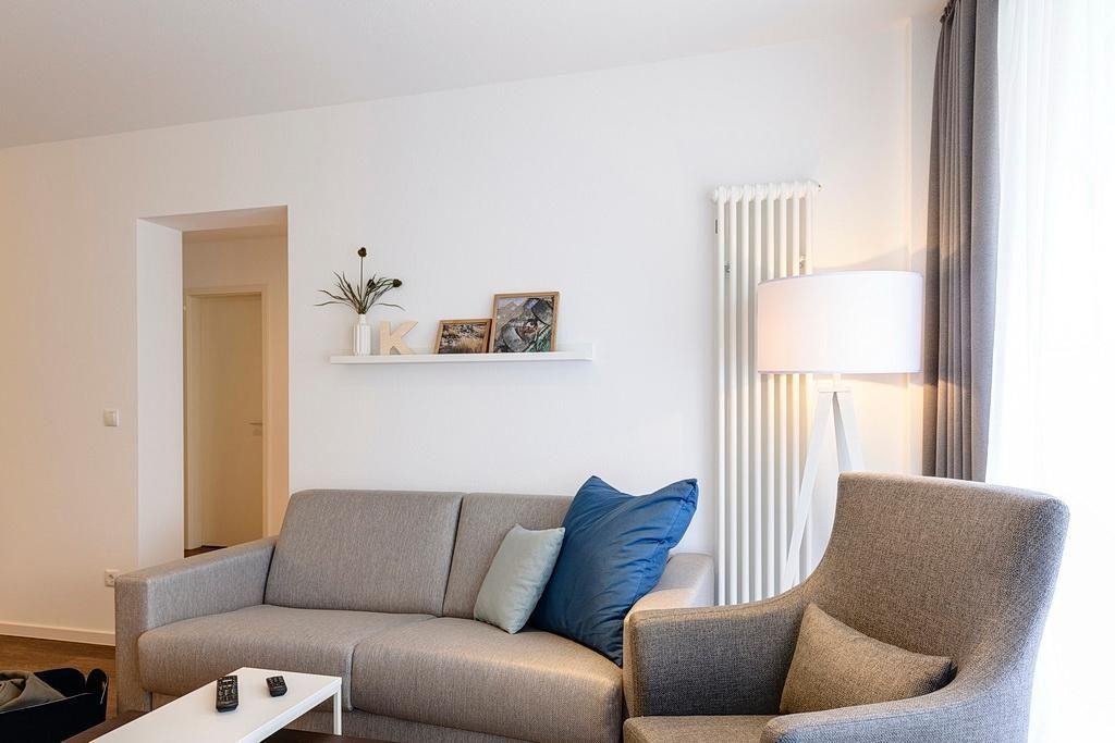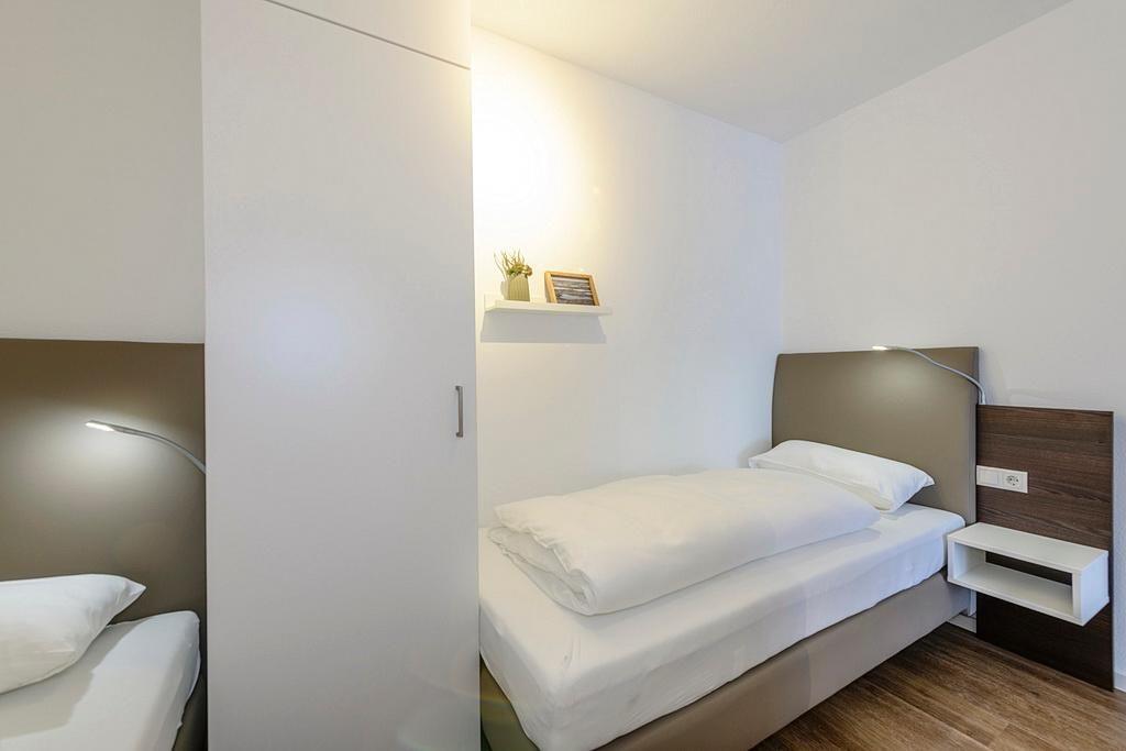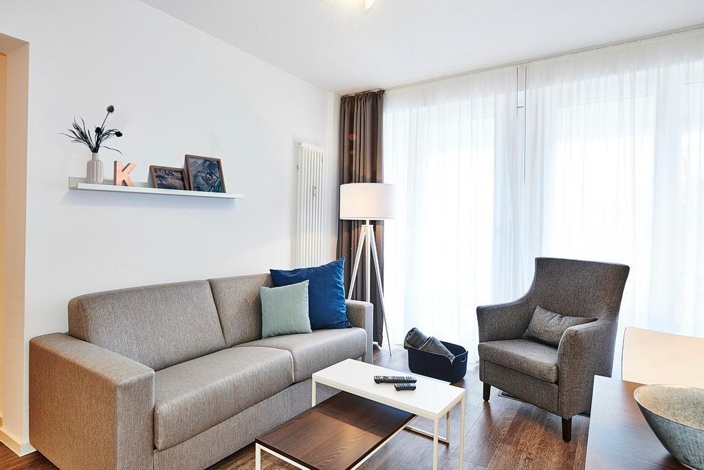 Das geschmackvoll eingerichtete Nichtraucher-Apartment verfügt über kostenfreies WLAN. Der Wohnbereich mit Schlafcouch bietet eine voll ausgestattete offene Küchenzeile mit Geschirrspüler, Gefrierfach, Kaffeemaschine, Toaster, Wasserkocher und Mikrowelle mit Backfunktion sowie einen großen Flatscreen-TV und ein Radio. Das Apartment verfügt über einen Esstisch für 5 Personen und einen behaglichen Sitzbereich. Zwei separate Schlafzimmer stehen euch zur Verfügung. Eines davon verfügt über ein Doppelbett und einen eigenen Flatscreen-TV, ein weiteres Alkoven-Schlafzimmer über zwei Einzelbetten. Ein Kinderbett kann gegen Entgelt aufgestellt werden. Im stilvollen Badezimmer befinden sich eine große begehbare Dusche sowie ein Waschtisch mit Föhn und Kosmetikspiegel. Nach einem erlebnisreichen Urlaubstag lässt es sich auf den beiden überdachten und mit Gartenmöbeln für 5 Personen ausgestatteten Balkonen wunderbar entspannen. Die Balkone sind vom Wohnbereich bzw. vom Hauptschlafzimmer zugänglich.