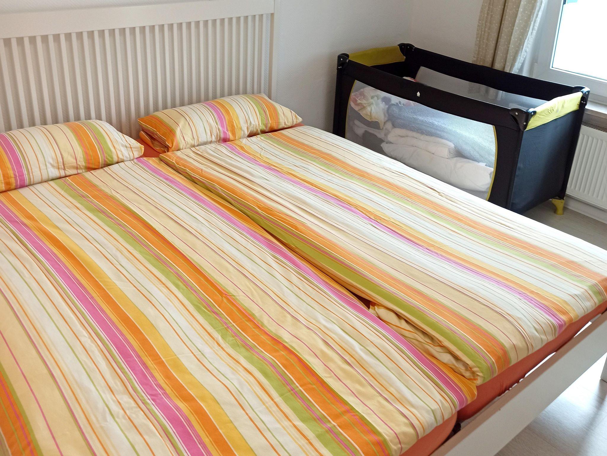 In der Wohnung erwartet Sie eine hochwertige Ausstattung, die Ihren Aufenthalt besonders komfortabel macht: Beide Schlafzimmer verfügen über neue Doppelbetten (1,80 x 2 m), im Hauptschlafzimmer mit doppellagiger Komfortmatratze im Boxspring-Stil. Im Kinderzimmer steht zusätzlich ein Kinderreisebett bereit – ideal auch für Familien mit Kleinkindern. Das Wohnzimmer lädt mit einem Flachbild-TV und einer Playstation 3 zu entspannten Abenden ein. Die Küche lässt keine Wünsche offen: Herd, Backofen, Mikrowelle, Kaffeemaschine, Toaster, Geschirrspüler sowie ausreichend Kochutensilien, Besteck und Kindergeschirr sind vorhanden. Ein Esstisch mit fünf Stühlen sowie ein Kinderhochstuhl stehen bereit. Im Badezimmer finden Sie neben der Dusche eine einladende Badewanne – perfekt zur Erholung nach einem aktiven Tag. Kindersichere Steckdosen sowie eine Fahrradabstellmöglichkeit runden das Angebot ab. WLAN, Informationen zu Einkaufsmöglichkeiten, Ärzten und Freizeitaktivitäten finden Sie übersichtlich in unserer Gästemappe. Den Schlüssel erhalten Sie direkt von uns – persönlich oder nach Absprache kontaktlos. Wir freuen uns auf Sie und Ihre Bewertung!