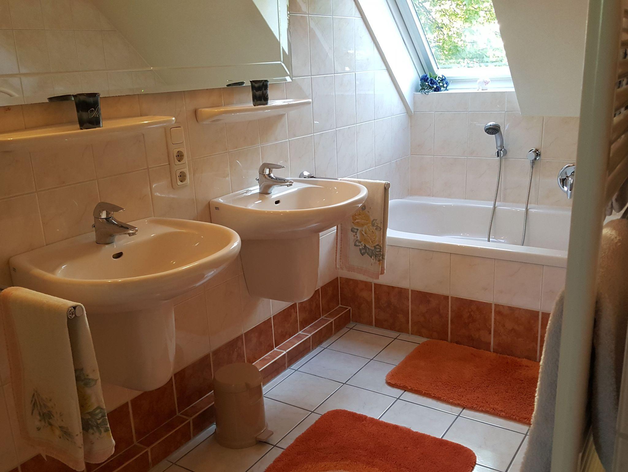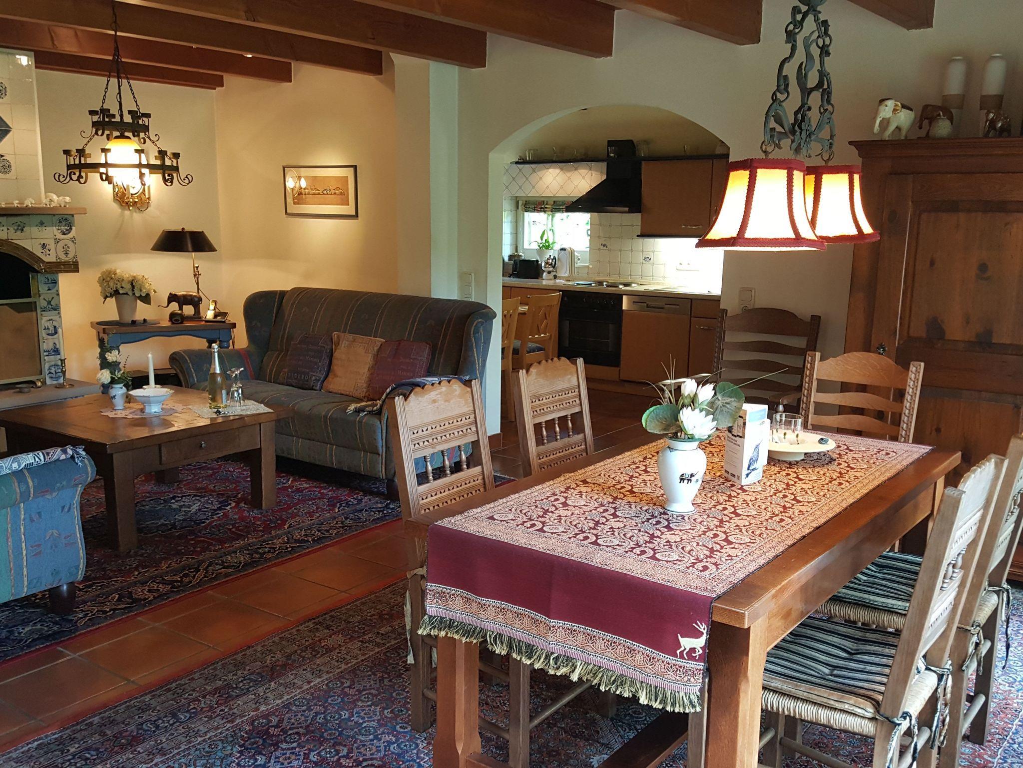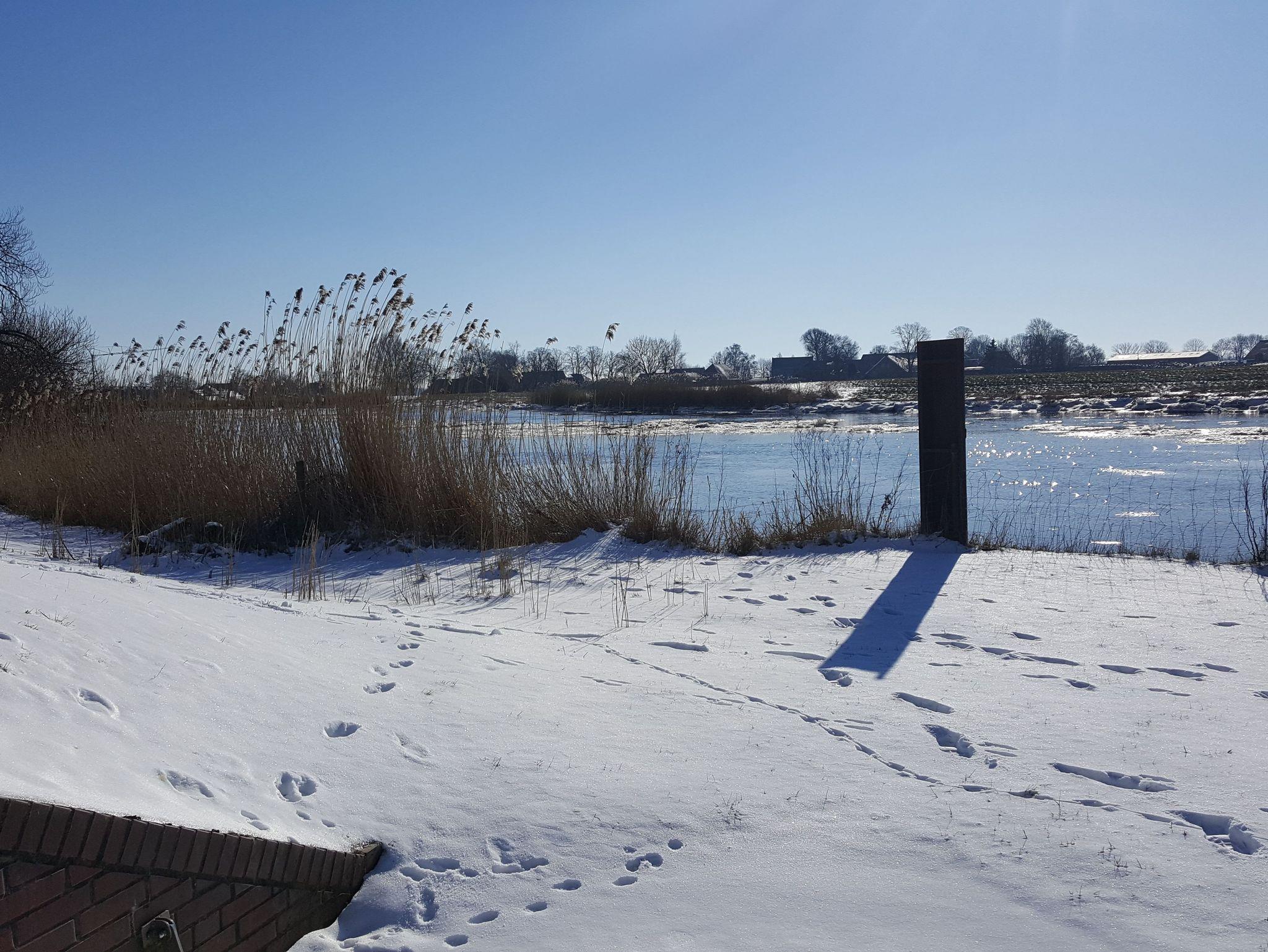 Ostfriesisches Fehnhaus direkt am Fluss Jümme, Ferienwohnung für 2 Personen mit exklusiver Einrichtung, Kamin, komplett ausgestatteter Wohnküche mit Geschirrspüler, Gefrierkombination, 1 Doppelzimmer und 1 Einzelzimmer.