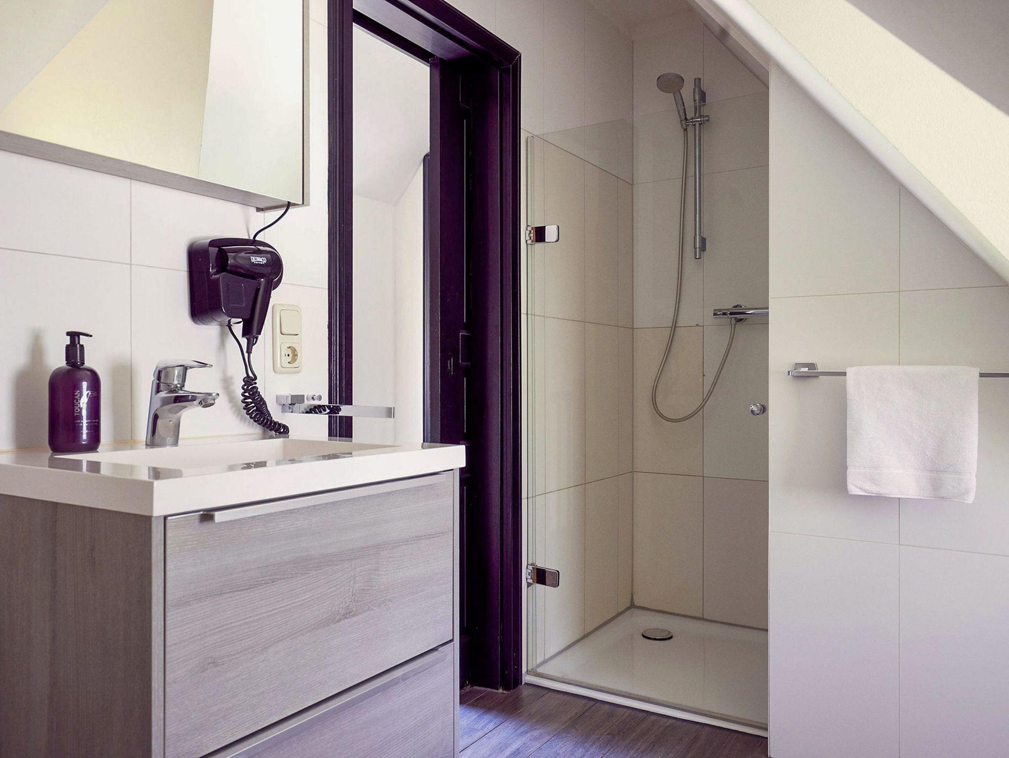 Im Obergeschoss befinden sich zwei Schlafräume sowie ein Bad mit Dusche und WC. Ein Schlafzimmer ist mit einem Doppelbett, das andere mit zwei Einzelbetten ausgestattet.