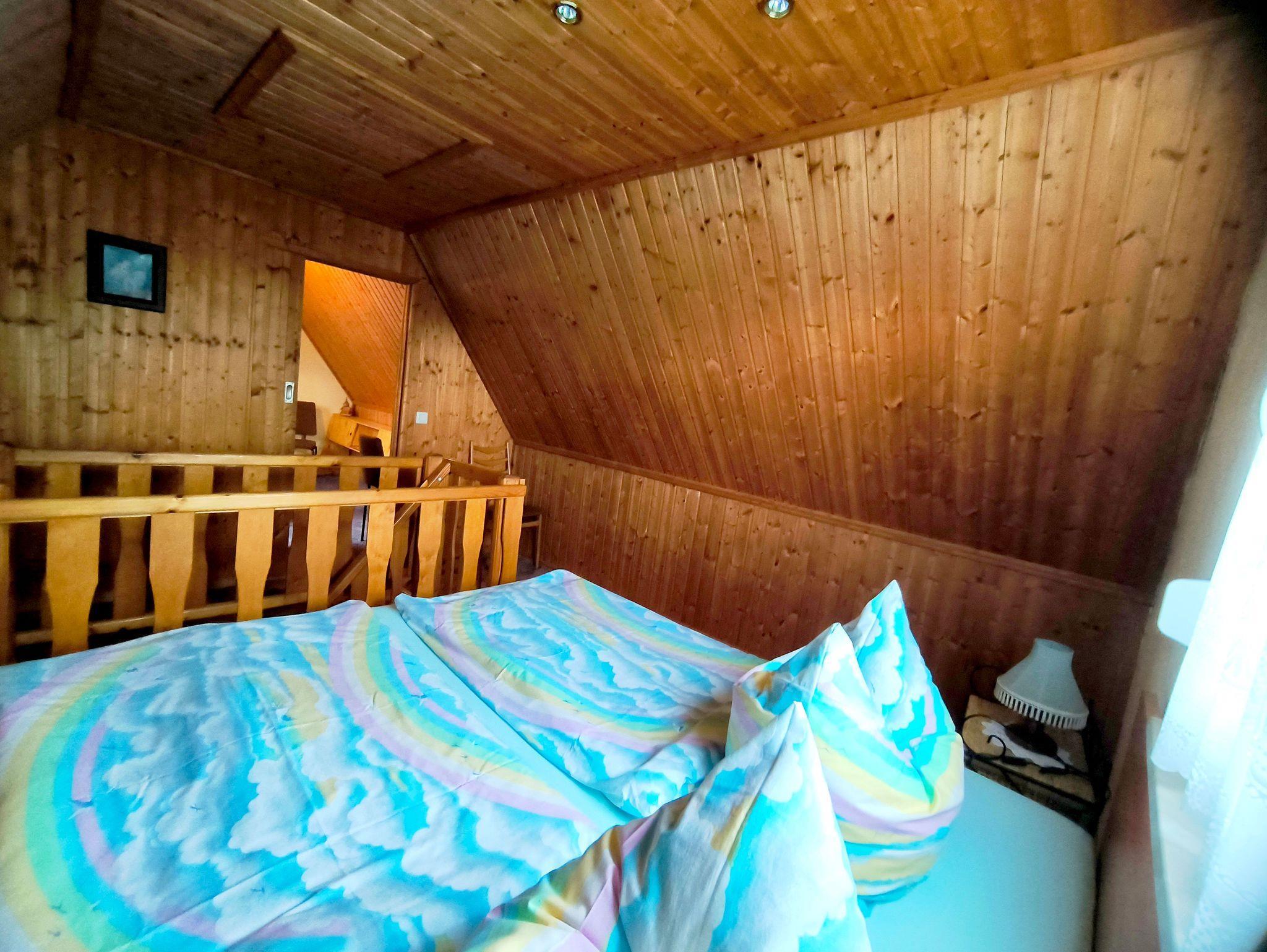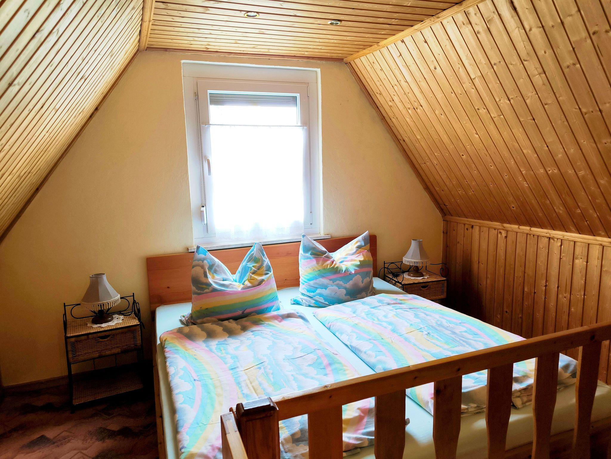 Im Obergeschoss erreichen Sie über eine Treppe zwei einladende Schlafzimmer. Das erste Schlafzimmer (Durchgangszimmer) ist mit einem Doppelbett ausgestattet. Das zweite Schlafzimmer verfügt ebenfalls über Doppelbett sowie einen Kleiderschrank und eine kleine Sitzecke.