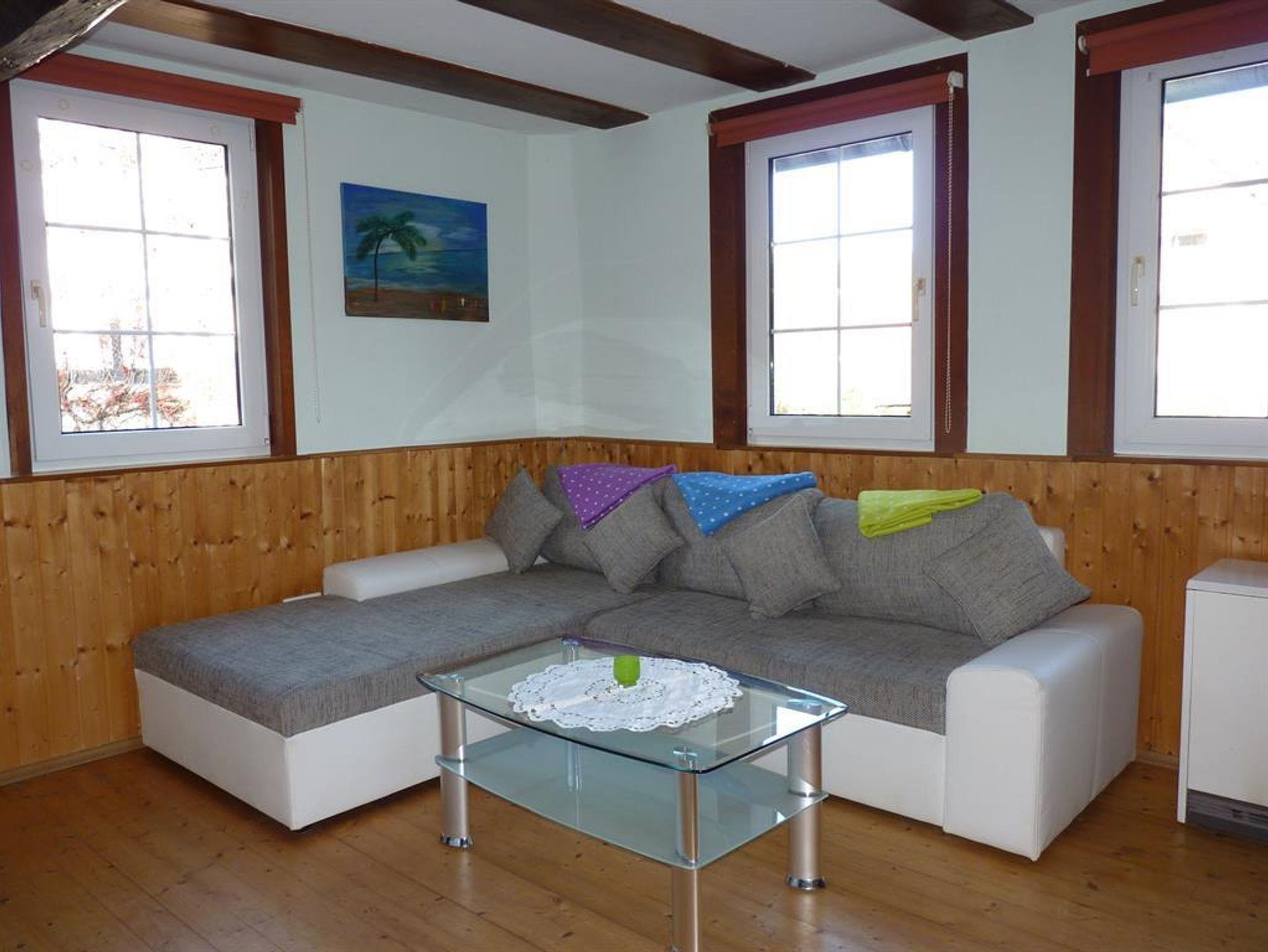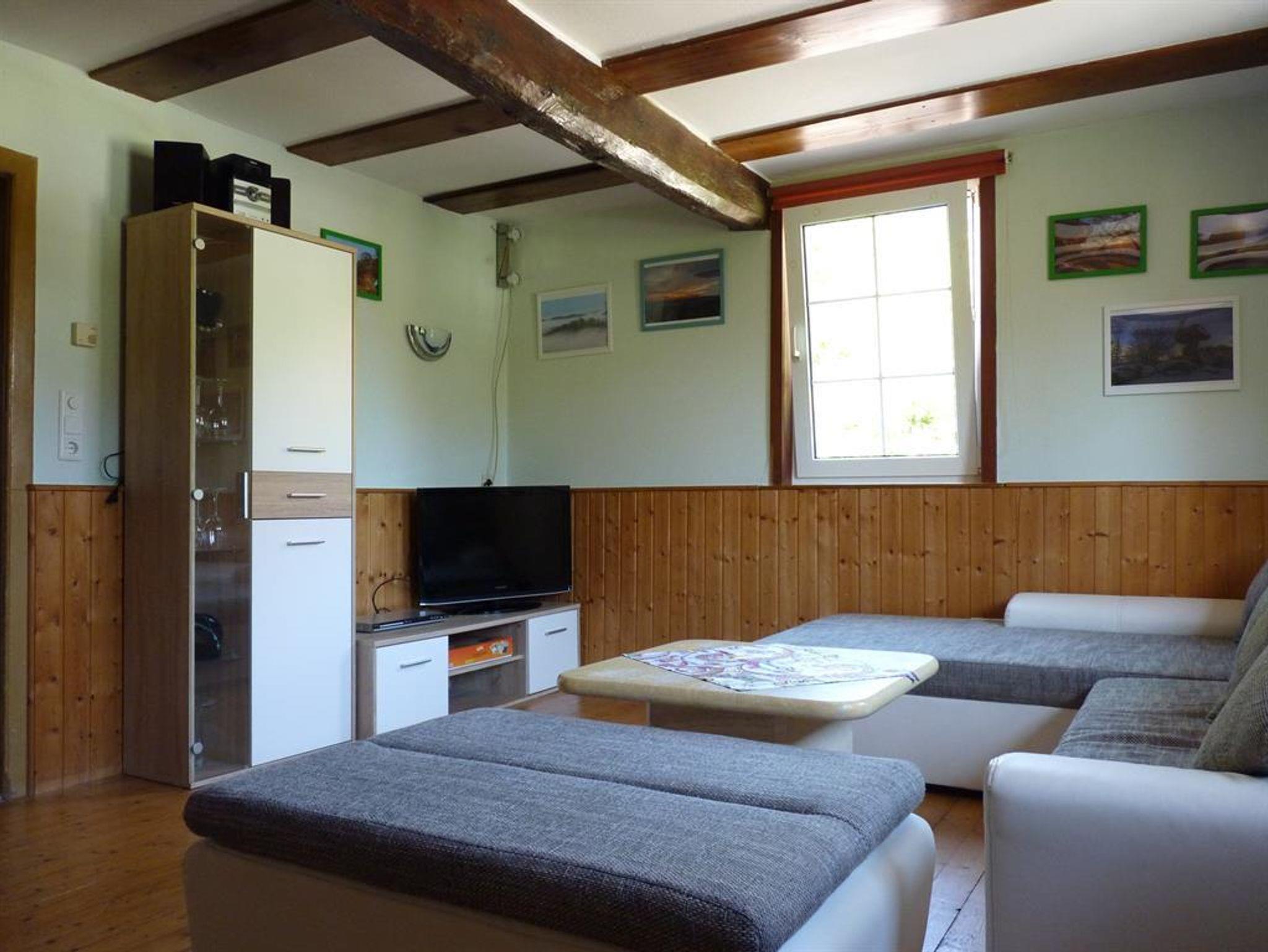 Das Ferienhaus Katharina vereint die urige Atmosphäre eines Fachwerkhauses mit der Bequemlichkeit einer zeitgemäßen Ausstattung. Der Wohnbereich im Erdgeschoss beinhaltet eine voll ausgestatteten Küche mit einer gemütlichen Essecke. In der Küche findet sich alles, was ein Selbstversorger brauchen könnte. Dazu gehört ein Kühlschrank, ein Gefrierschrank, ein Backofen mit Cerankochfeld, Spülmaschine, Kaffeemaschine, Toaster, Eierkocher und selbstverständlicher alles, was man an Koch- und Essgeschirr benötigen könnte. Daran schließt sich das Wohnzimmer mit einem großzügigen Sofa an. Hier können sie die Erlebnisse des Tages Revue passieren lassen oder die Medienvielfalt am großen Flachbildfernseher mit DVD-Spieler oder dem CD-Radio genießen. Im ersten Obergeschoss finden Sie zwei Schlafzimmer, jeweils mit einem großem Kleiderschrank. Das dritte Schlafzimmer liegt unterm Dach im zweiten Obergeschoss. Hier lässt sich die Nacht besonders behaglich verbringen. Das Badezimmer ist mit Badewanne, separater Duschkabine, Waschtisch und Toilette ebenfalls komplett ausgestattet. Zentral im Flur des Erdgeschosses steht ein funktionierender Holzofen. So kann man es sich an kühlen Herbstabenden mit einem Holzfeuer besonders gemütlich machen. Die Rasenfläche neben dem Ferienhaus bietet sich zum gemeinsamen Abendessen im Freien, zum Grillen oder einfach nur zum Sonne-Tanken an. Nach der Komplett-Renovierung bei unserer Übernahme im Jahre 2002 wurde das Ferienhaus 2012 teilrenoviert und Wohnzimmer, Essbereich und die Schlafzimmer komplett neu eingerichtet. Im Jahre 2014 wurden die Böden in Küche, Flur und zwei Schlafzimmern ersetzt und das Bad nochmals renoviert und ebenfalls neu eingerichtet.
