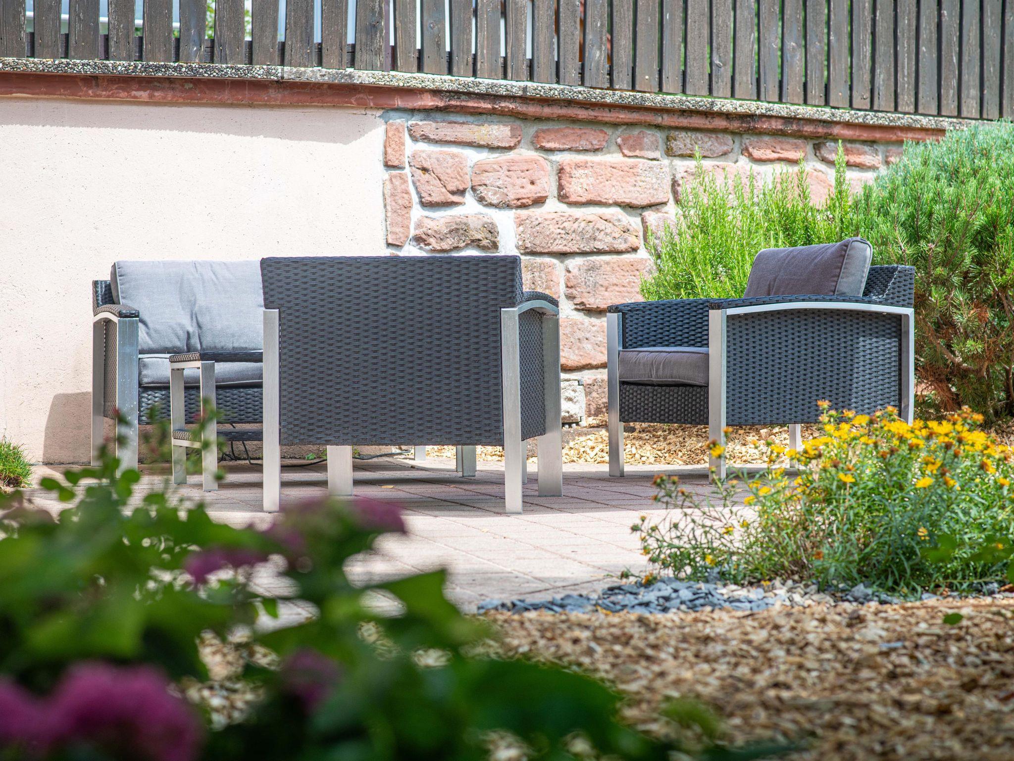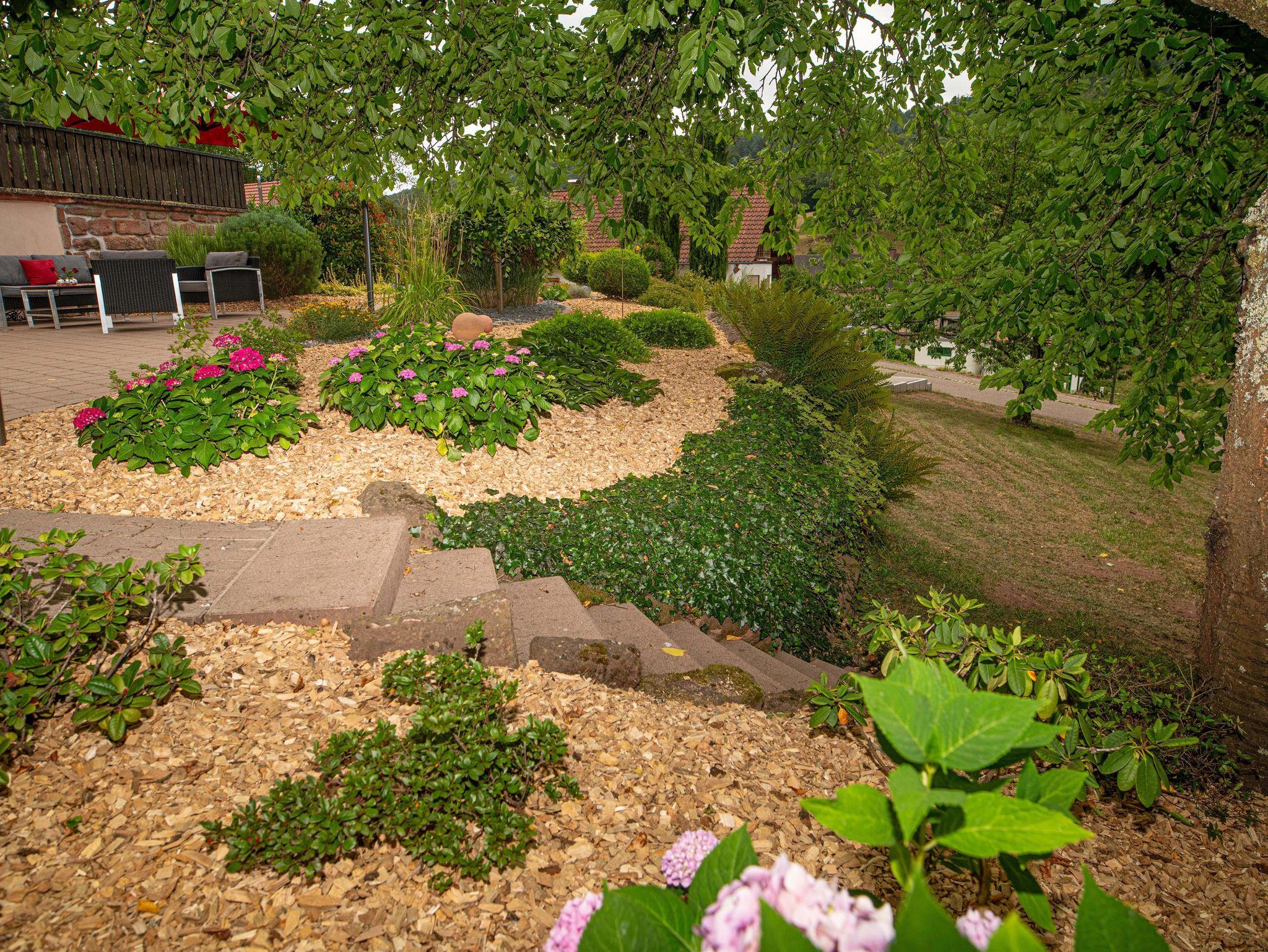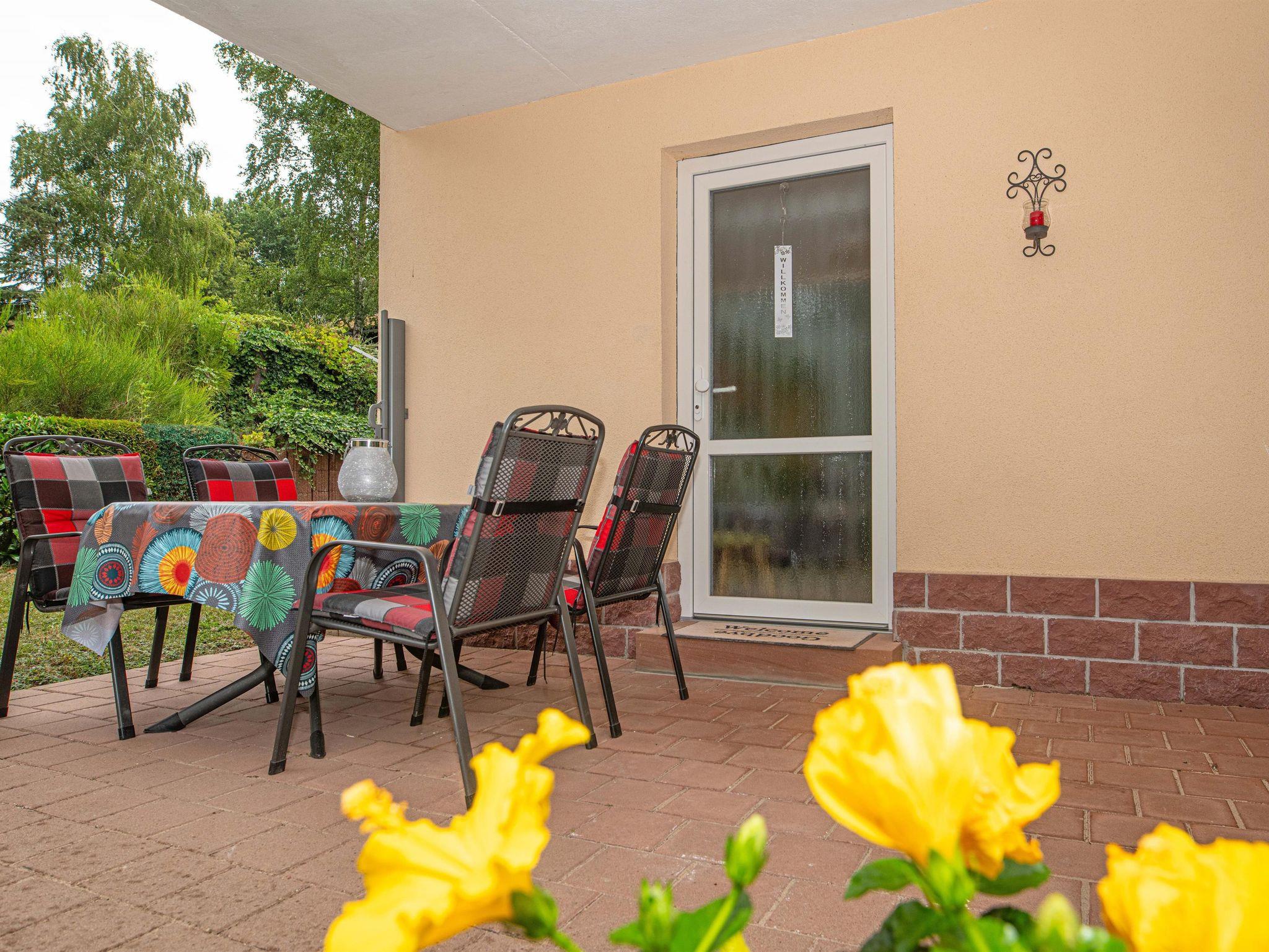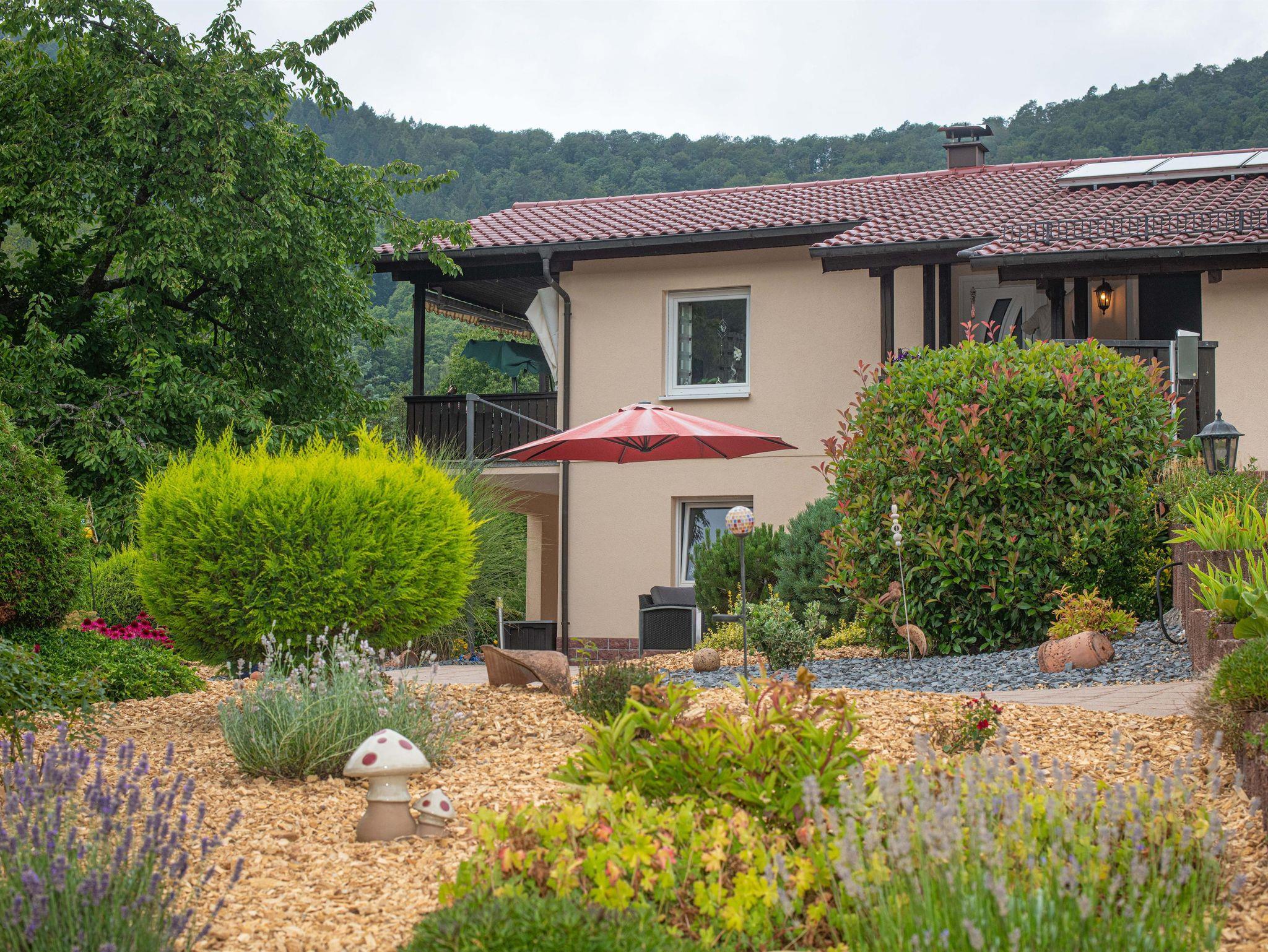 Die Ferienwohnung ist ebenerdig mit separatem Eingang und einem eigenen Parkplatz vor dem Haus. Der schöne Garten mit Freisitz, Sitzlounge und überdachter Terrasse lädt zum Verweilen im Garten ein. Grillen und Essen im Freien ist bei gutem Wetter möglich. Auf unseren Gartenliegen können Sie in Ruhe unterm Kirschbaum entspannen.