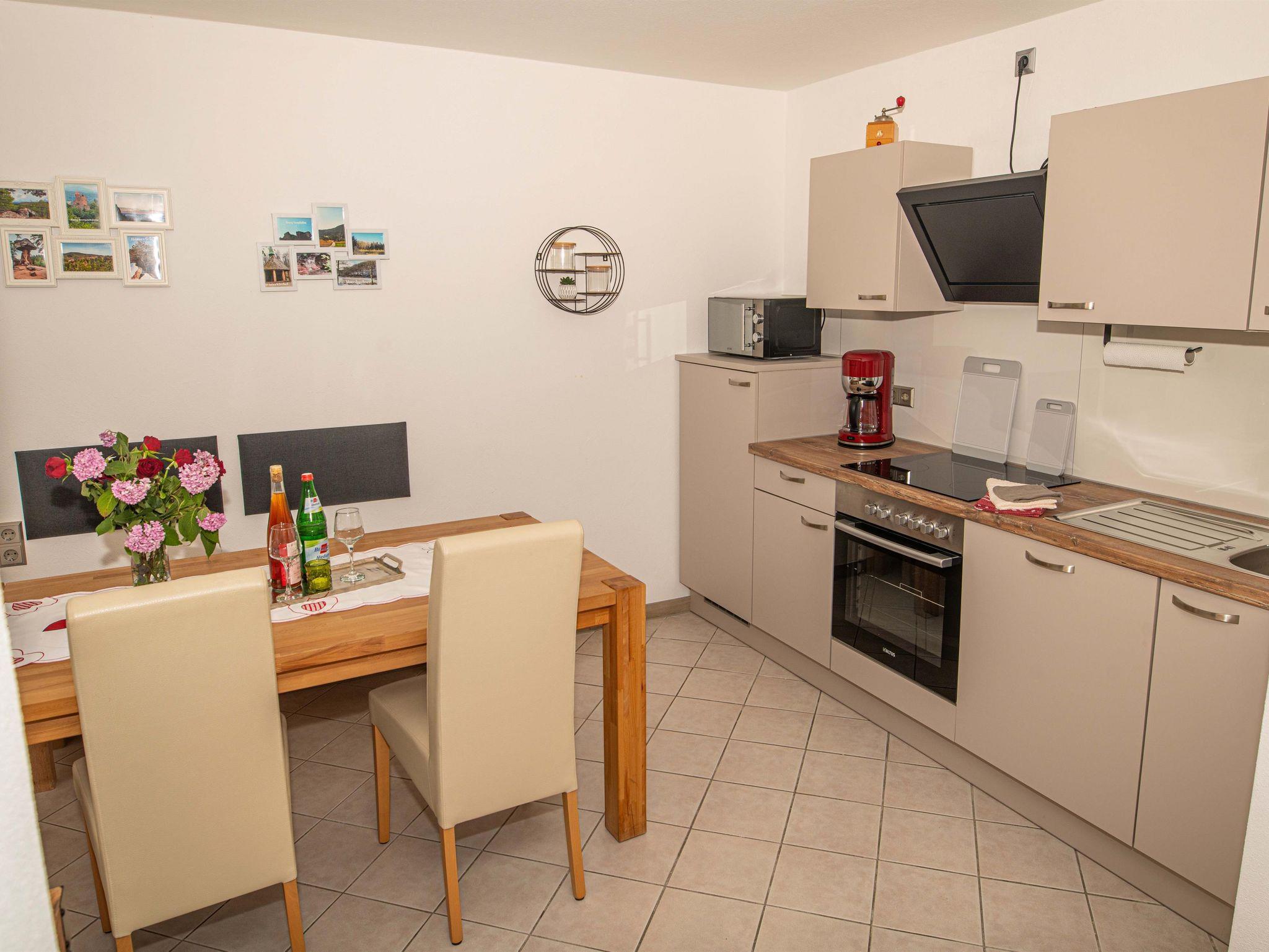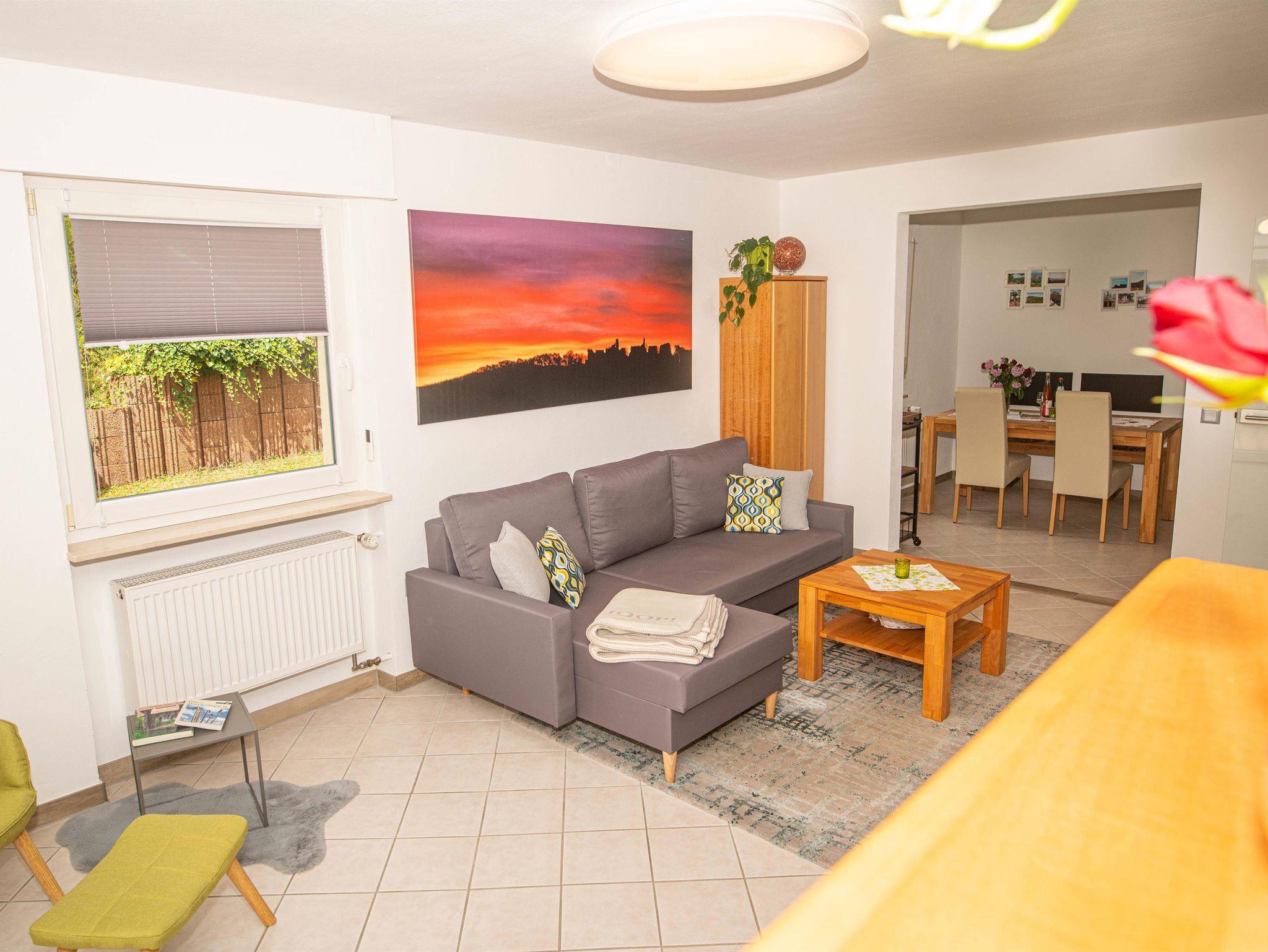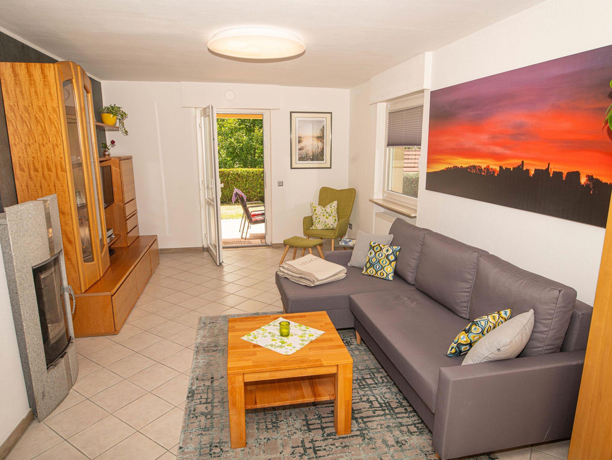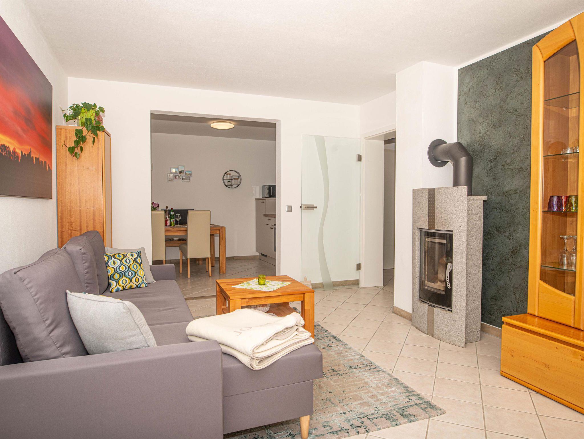 Das Wohnzimmer ist ausgestattet mit Schlafsofa für 2 Personen, Kaminofen, TV, W-Lan, Radio. Die komplette Wohnung ist eine Nichtraucherwohnung.