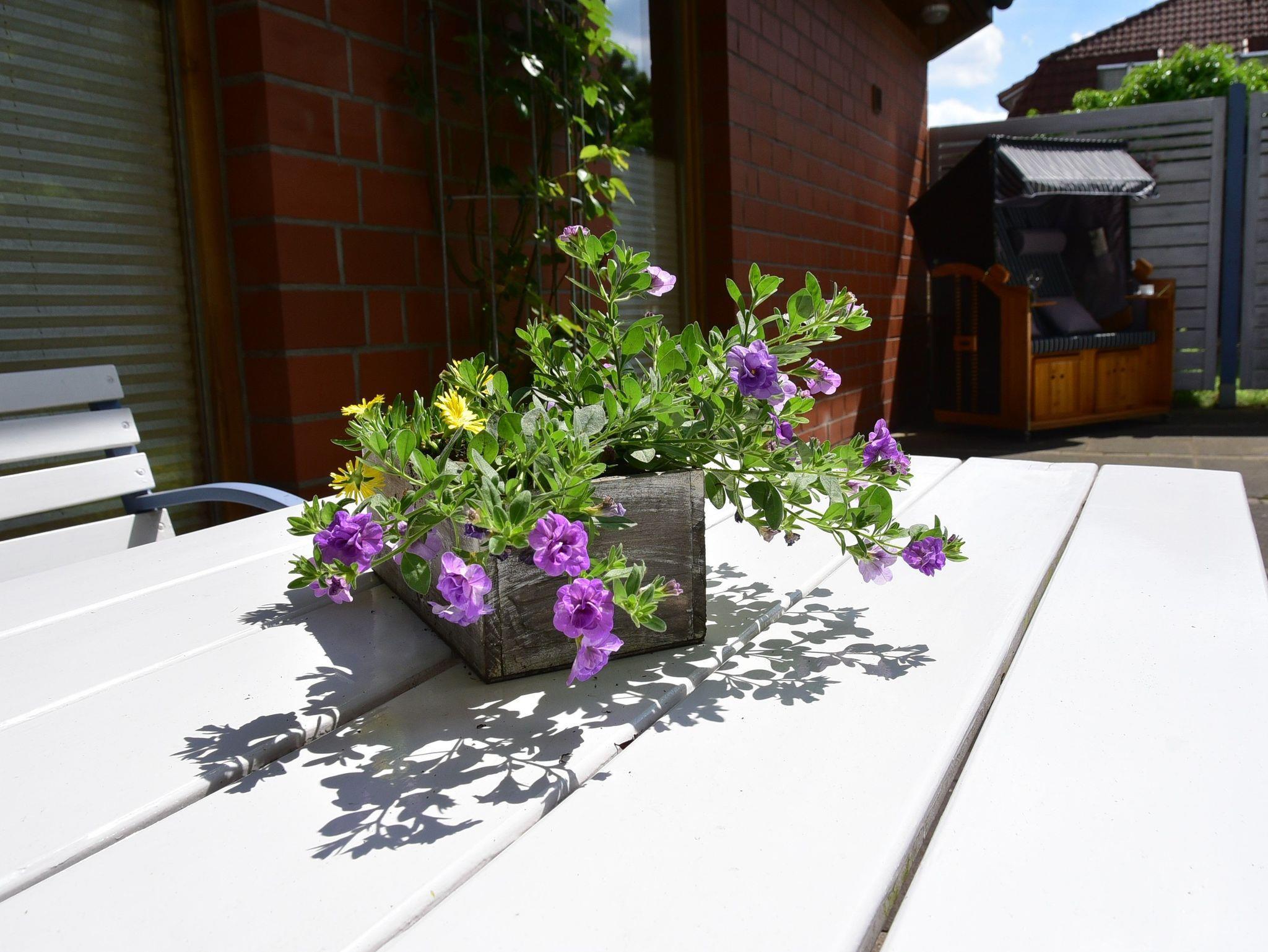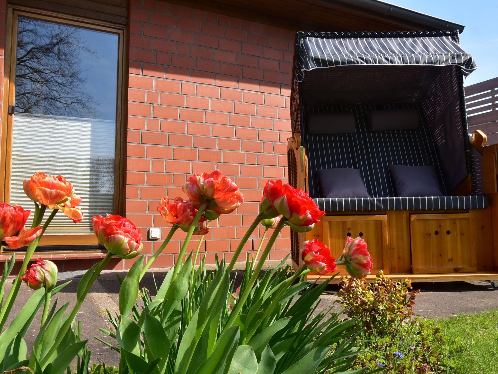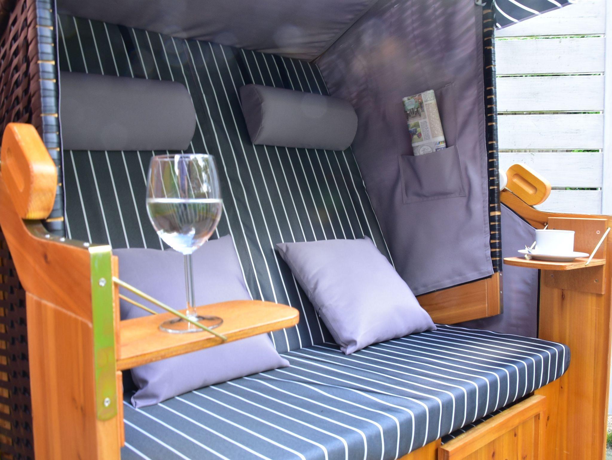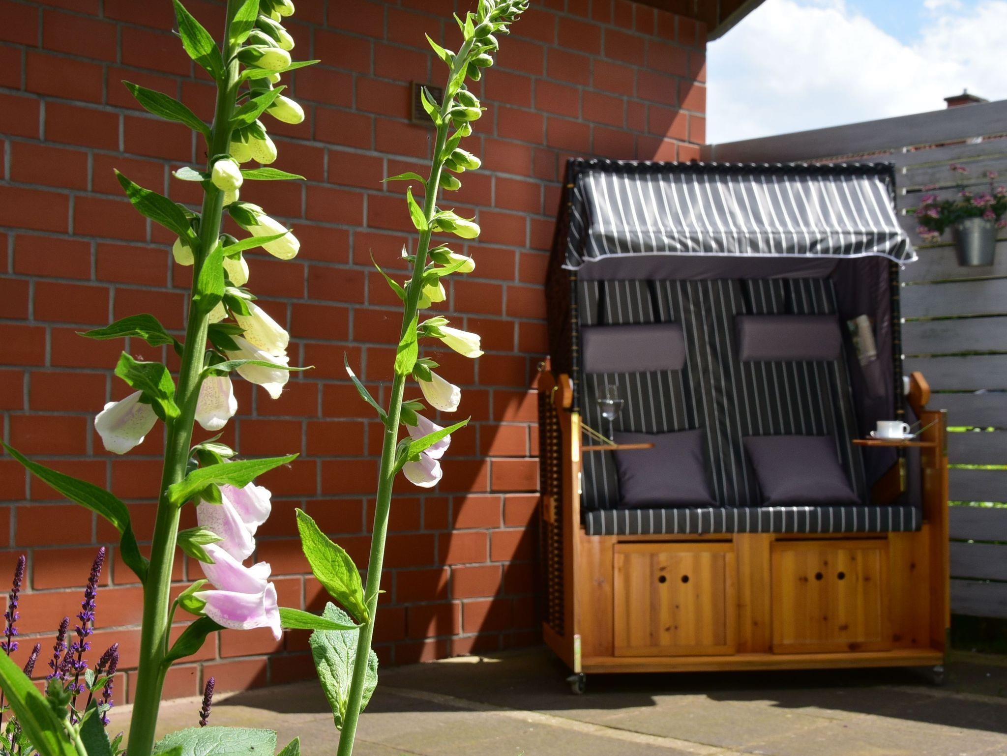 Die Fewo 80 qm, verfügt über eine möblierte Terrasse mit Strandkorb u. PKW-Stellplatz.