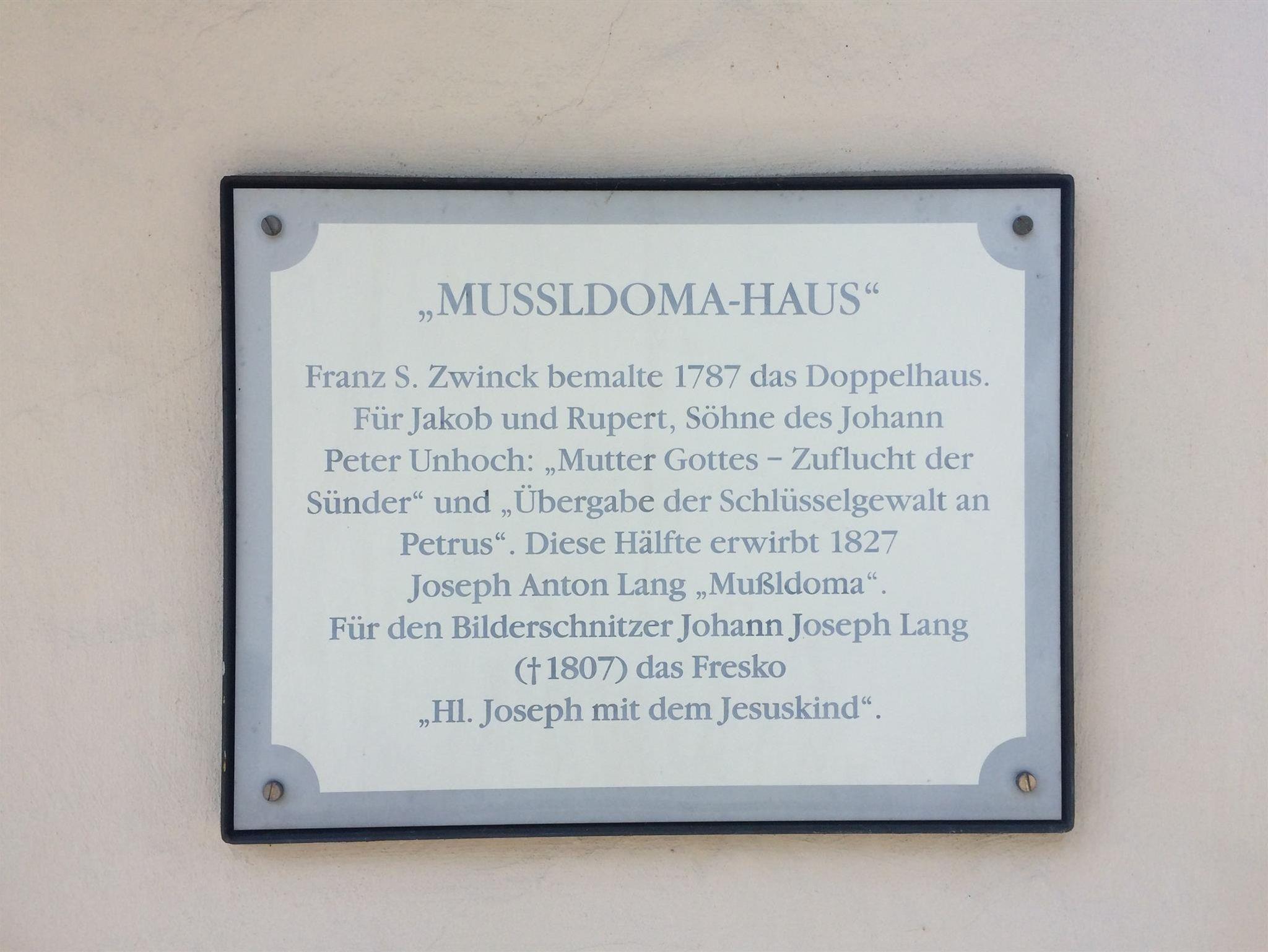 Im historischen Ortskern von Oberammergau, fast direkt neben der Pfarrkirche St.Peter und Paul zentral gelegen, steht im Lüftlmalereck seit 1690 das Mussldomahaus. Es gilt als das älteste Bauernhaus Oberammergaus und trägt auf der Hauptfassade Fresken des berühmten Malers Franz Seraph Zwink, genannt Der Lüftlmaler.