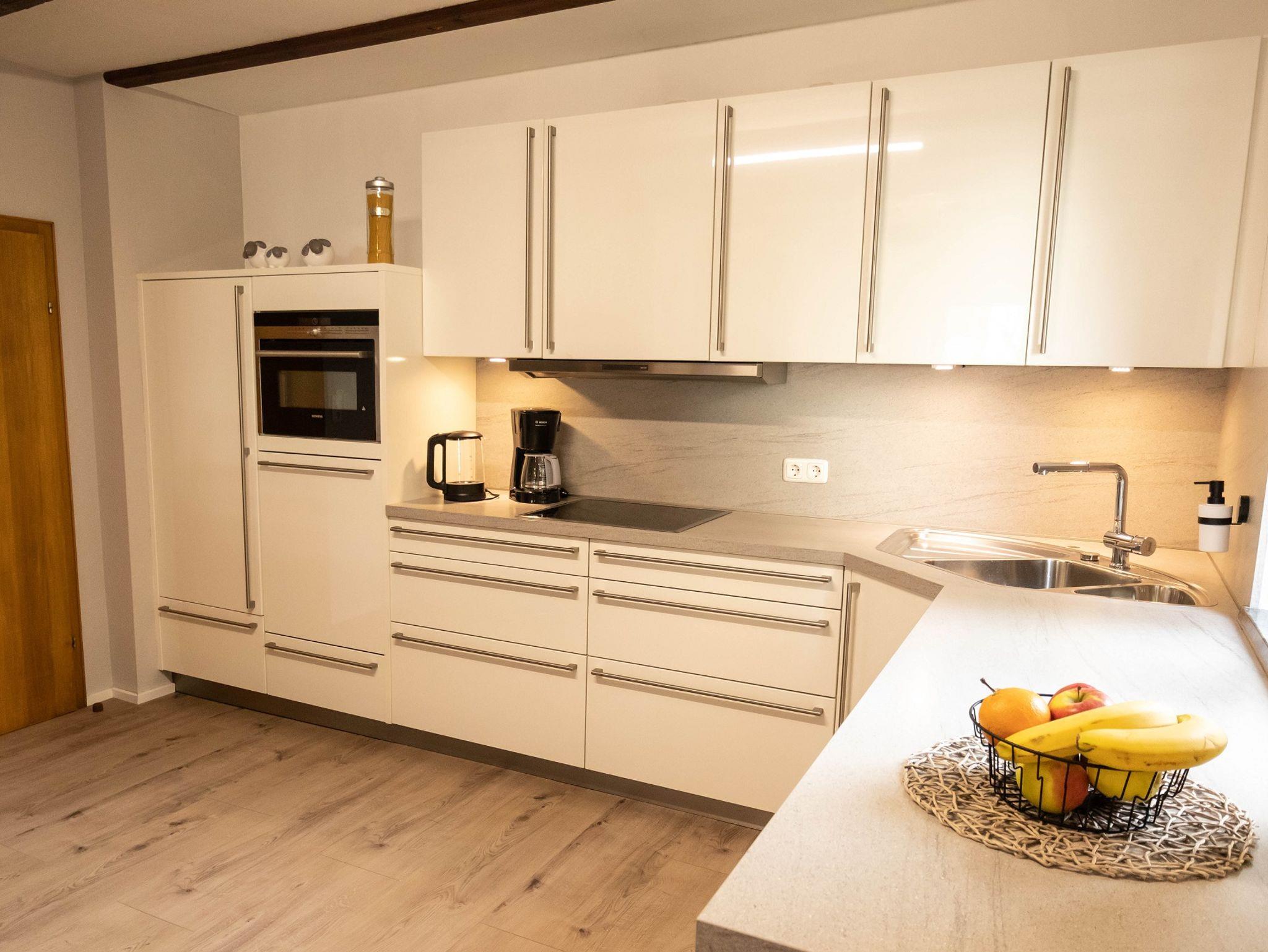 - vollausgestattete Küche und einer gemütlichen Barecke mit Kamin inkl. hochwertige elektronische Geräte wie Kochfeld, Backofen, Spülmaschine mit Gefrierfach, Spülmaschine, Wasserkocher, Toaster, Kaffeefiltermaschine, BIO Kaffeepulver aus der Region und verschiedene Teesorten, Zucker, Mehl, Mixer, Gewürze, Öl und Essig, Spülhandtücher.