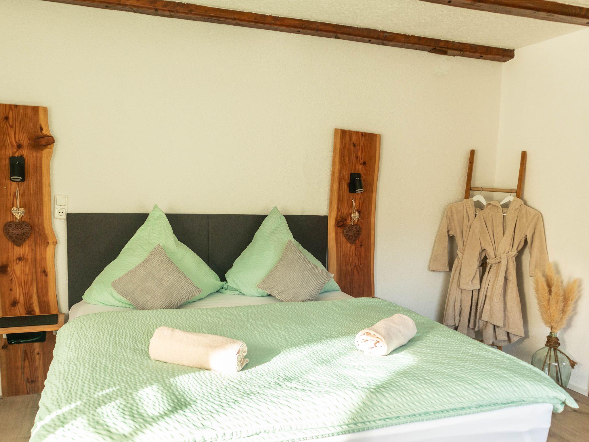 - Schlafzimmer mit Smart-TV inkl. Streamingfunktion und einem gemütlichen Kingsize-Bett, Ladekabel, Kleiderschrank, Handtücher & Bademäntel inklusive